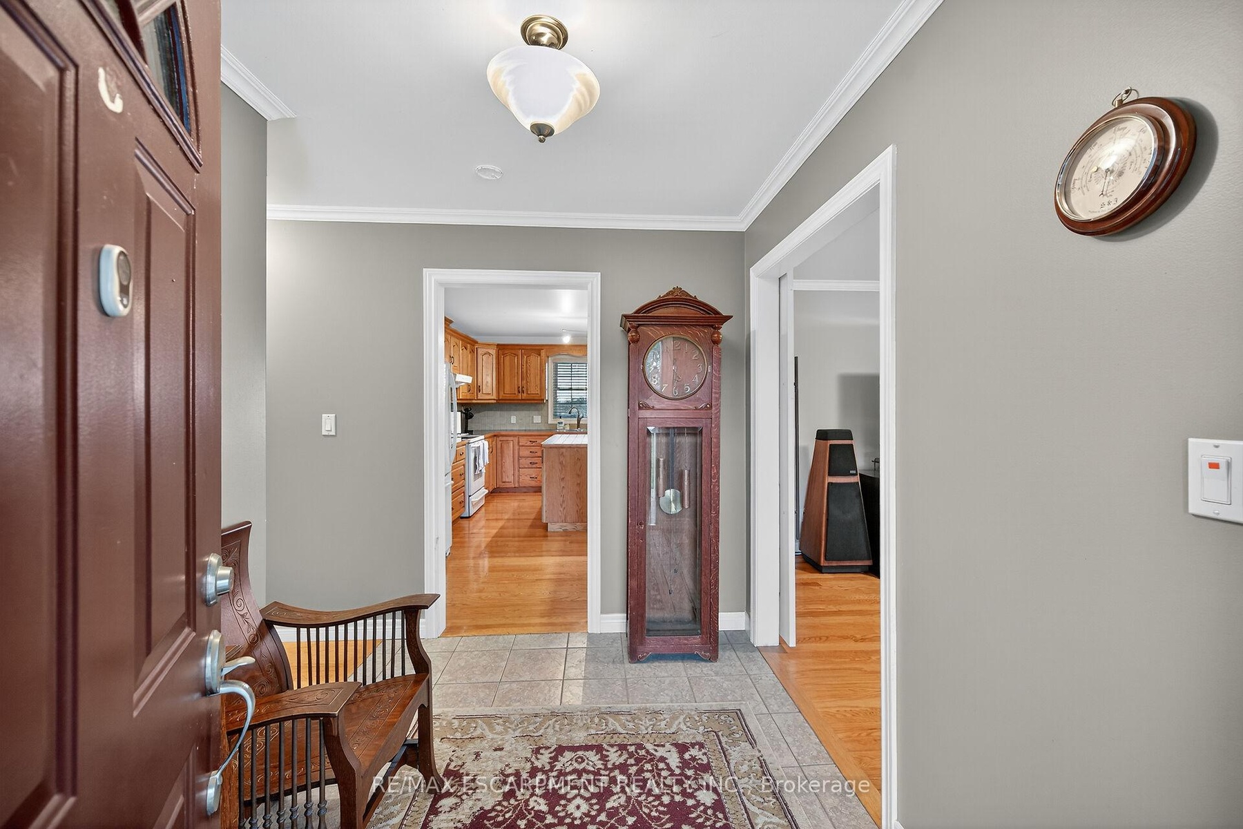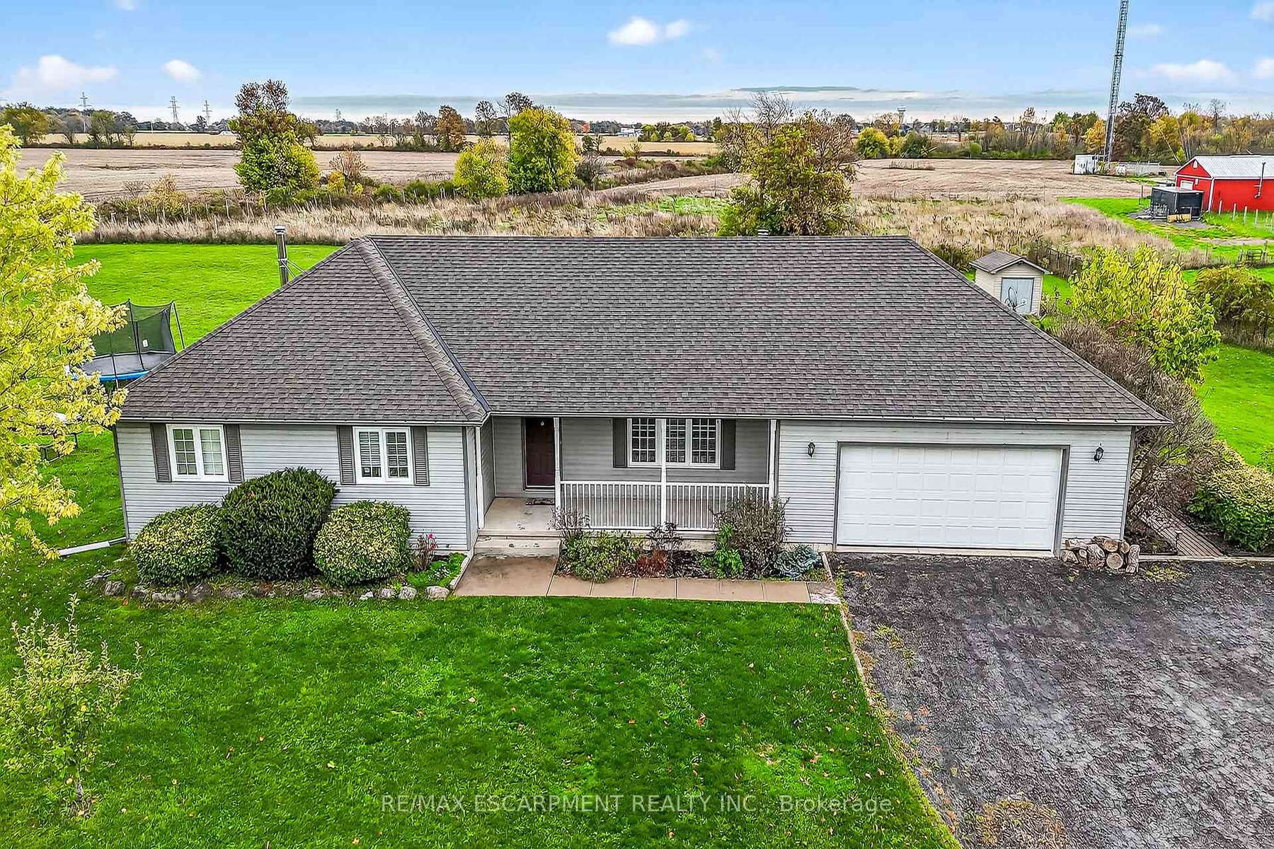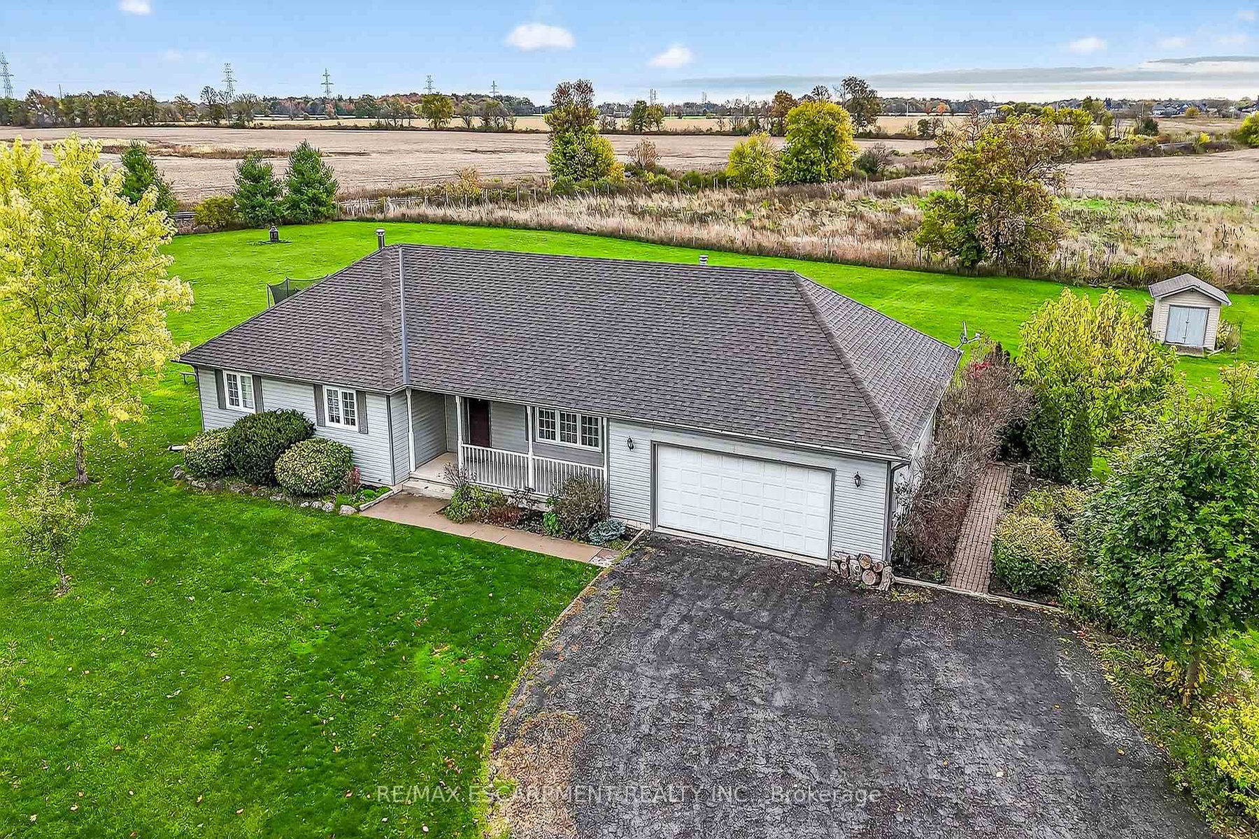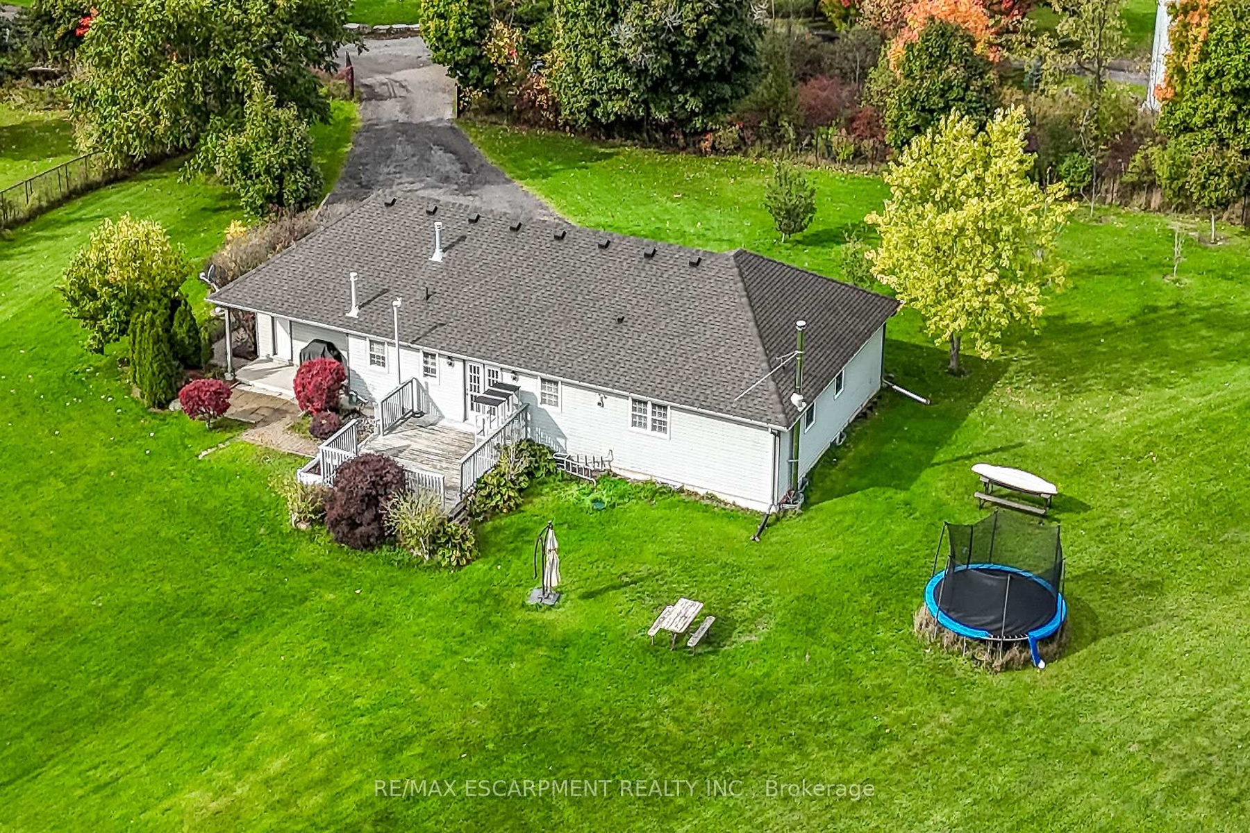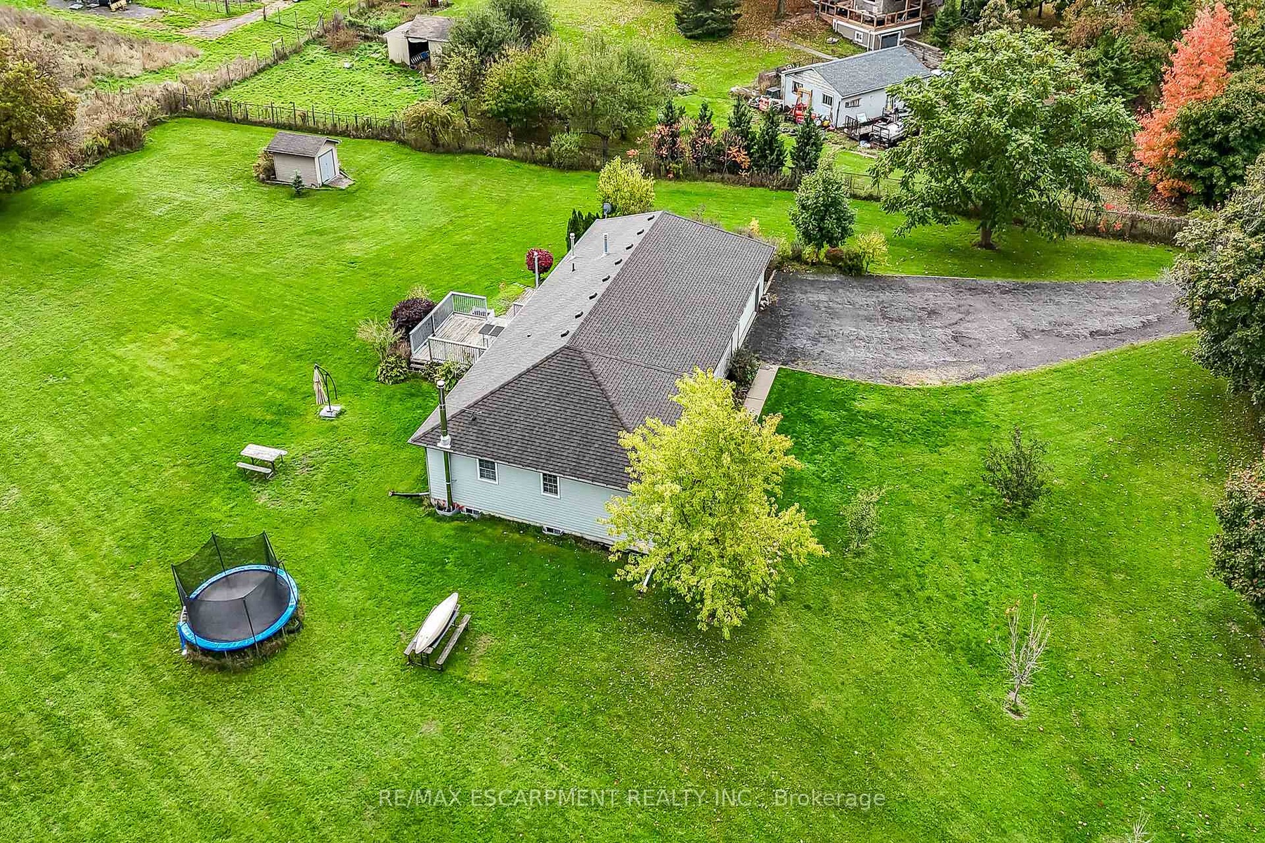 Well cared for fully finished 3 bedroom, 2.5 bath bungalow with two fireplaces (gas & wood stove) situated on fenced 2.24 acre property. Large driveway with ample parking for approximately 10 cars. House is set back a good distance from road & contains two separate entrances (from side of house & from inside garage) to lower level allowing for potential future in-law set up capability. Crown moulding & hardwood flooring is featured throughout the living room, hallway & all bedrooms. Eat-in kitchen showcases oak kitchen cabinets, ceramic backsplash, breakfast bar island, built-in oak desk plus built-in oak hutch/buffet combo, hardwood flooring & patio door to deck & rear yard. Corner gas fireplace with lovely oak surround in living room. Generous sized primary bedroom with walk-in closet & 4 piece ensuite with separate shower & jetted tub. Convenient main floor laundry room provides access to lower level & covered patio & side yard. Lower level offers additional living space with an oversized rec room with laminate flooring & a WETT certified wood stove, den with built-in shelving & a cozy game room plus utility & storage rooms. Newer furnace & central air (2019). Country living with close proximity to main road. Several nearby amenities. Only about a 20 minute drive to Upper Centennial Parkway in Stoney Creek via Highway 20.
