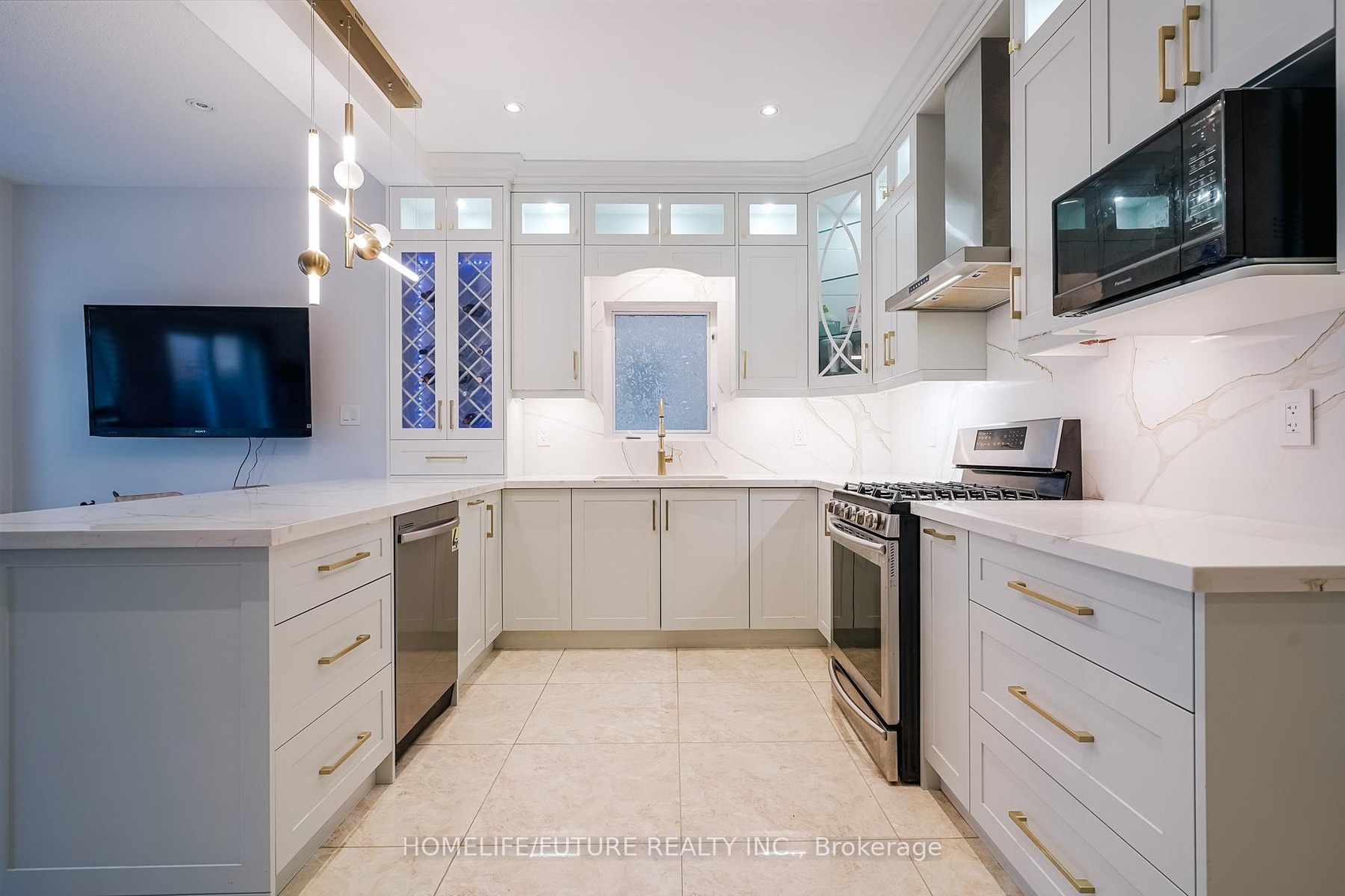 Welcome To This All-Brick Detached Home In The Highly Desirable Cedarwood Community! This Beautifully Maintained Home Features A Double-Door Front Entry, Hardwood Floors In The Combined Living And Dining Areas, And A Spacious Family Room Enjoy Cooking In The Nearly Renovated, Brand-New Modern Kitchen Complete With Stainless Steel Appliances. The Bright Breakfast Area Overlooks A Large, Fenced Backyard Featuring Interlock Paving And A Charming Gazebo, Ideal For Relaxing Or Hosting Gatherings. Upstairs, The Original 4-Bedroom Layout Has Been Thoughtfully Converted Into 3 Generously Sized Bedrooms, Including A Renovated Main Bathroom And A Large Primary Bedroom With An Oversized Closet - Offering Plenty Of Space And Comfort For Families Of All Sizes.Front Yard Interlocking With Parking For 2 Cars, Updated Bathroomsconvenient Location Just Steps From Top-Rated Schools, Shopping Plazas, Costco, Home Depot, No Frills, Banks, And Moreeasy Access To Highway 407 And Public Transit For A Stress-Free Commute Don'T Miss Your Opportunity To Own This Move-In Ready Home In One Of The Most Sought-After Neighborhoods!