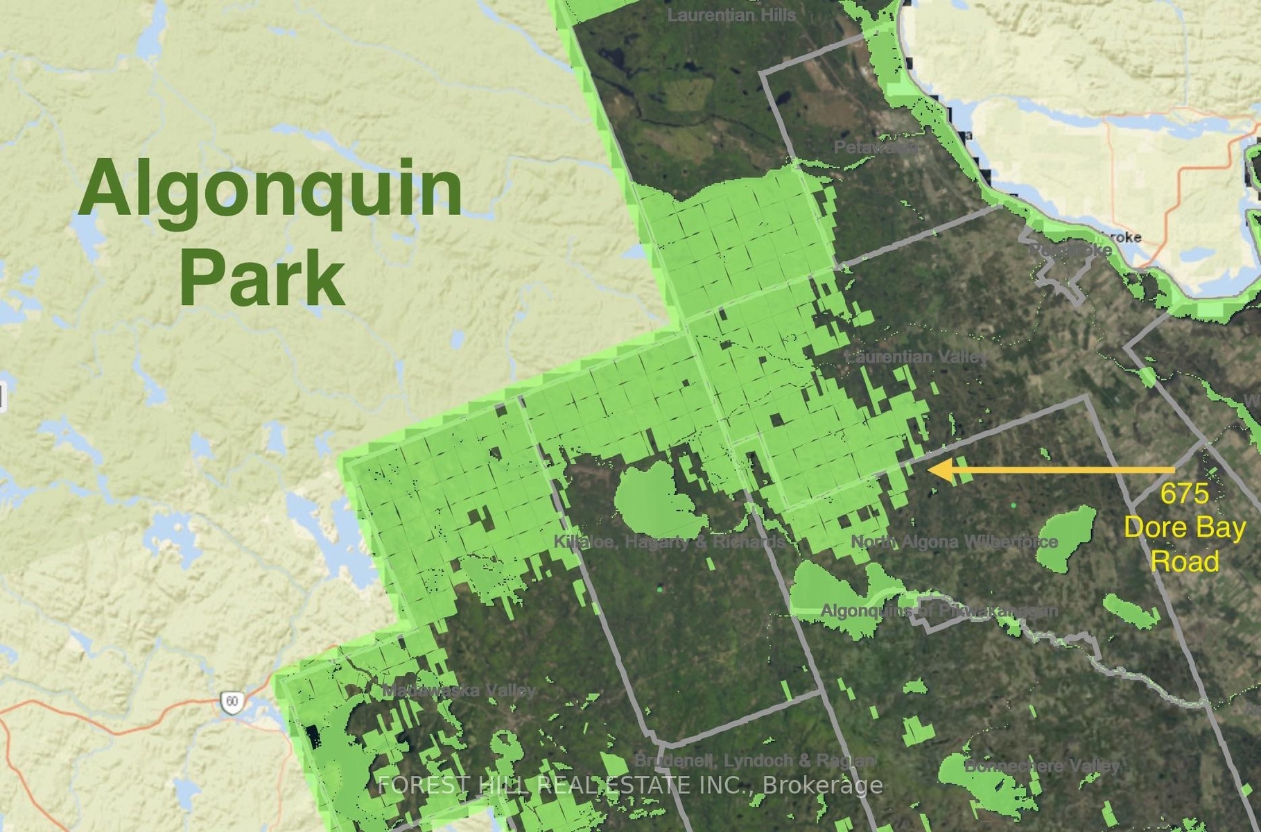Welcome to your own nature sanctuary in the heart of the Ottawa Valley: a beautiful lake with a 40 foot depth and over 100 acres of tranquility, with forest trails and a creek that runs through the property. This extraordinary property has a deeded 66-foot right-of-way, surrounded by towering pines and 25,000 acres of adjoining Crown land. The result is absolute peace and privacy, a place where you hear nothing but the wind and water. A small, pristine lake reflects the afternoon light and gives the perfect setting for hunting, canoeing, fishing, or simply unplugging. The land features gently rolling terrain, open clearings, and mature woodland; ideal for a private cabin, off-grid retreat, or future estate home.Located near Wilberforce and minutes from Algonquin Park's south-eastern boundary, this parcel blends untouched wilderness with easy access to nearby towns and services. Whether you're seeking a private nature preserve, hunting or recreation base, or long-term investment, this property offers rare scale and natural beauty in a truly peaceful setting. A once-in-a-lifetime opportunity to own a waterfront retreat. ACCESS: via path that you will need an SUV for and is from Dore Bay Road