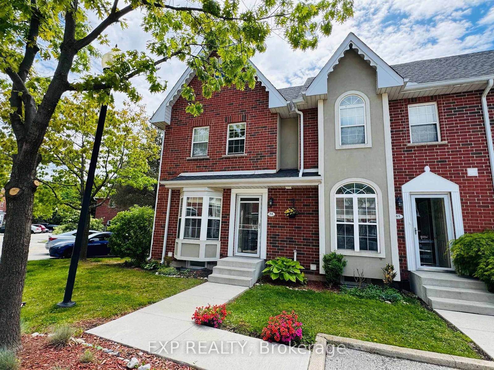 Bright End-Unit Townhouse in the Desirable Shore Acres Creek Community. These units rarely become available - especially end units - so don't hesitate on this opportunity. This sun-filled 2-bedroom, 1.5-bathroom home features an open-concept main floor, ideal for entertaining friends and family, with a walk-out to a private deck. The home also boasts fresh paint and brand-new carpeting on the stairs to the second floor. The primary suite offers vaulted ceilings for a truly majestic feel, along with a generously sized second bedroom. The finished basement provides extra space for a home gym, playroom, home entertainment room or office. Surrounded by walking trails and recreational amenities, and set within one of the quietest areas of North Burlington, this home is perfect for singles or couples seeking a simple lifestyle close to nature. Additional features include a newer furnace/AC and water heater (2023) for peace of mind, both under a rental plan for easy maintenance and predictable monthly costs. Move-in ready and freshly painted, this bright, open space lets you envision how you'll make it your own. Whether you're a first-time buyer, investor, or someone with a creative eye, this home offers a smart entry point into a fantastic location.