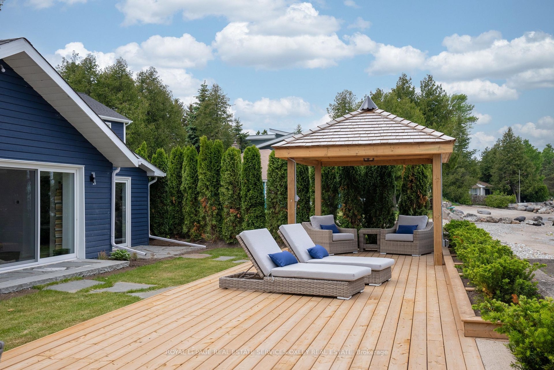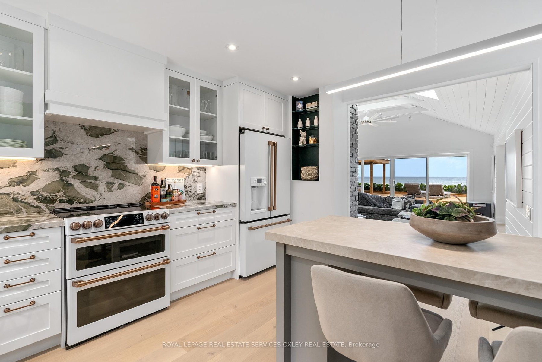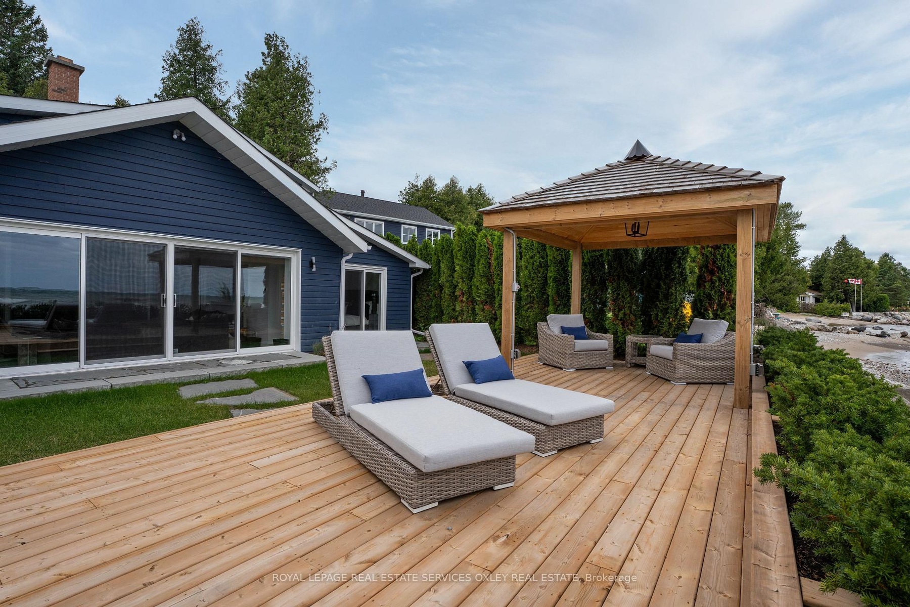 Welcome to the ultimate beach retreat in Thornbury! Quietly tucked away yet a short walk or bike ride to main street shops & restaurants, 137 Bayview Ave redefines waterfront living. From the street, it's understated almost demure until you step inside & are completely captivated by the forever water views and incredible finishes. Set on a spectacular 65' x 200' lot with unobstructed Georgian Bay views, this fully renovated home delivers a rare blend of sophistication & ease. Every detail has been curated to the highest standard from wide-plank white oak floors, bespoke custom cabinetry, heated tile floors throughout, & designer finishes that flow seamlessly across every space.The great rm, with soaring cathedral ceilings, skylights, & a striking wood-burning fireplace, opens to the expansive dining area designed for entertaining 12+ guests. Both rooms are framed by a wall of windows capturing the ever-changing blue waters of the Bay, with Christian Island glimmering on the horizon.The chef's kitchen is a study in form & function, featuring abundant custom storage, premium GE Cafe appliances, & a clean, contemporary aesthetic w/ stunning stone counters. The primary suite offers tranquil water views & a spa-like 5-piece ensuite for complete relaxation.Outdoors, the property is a dream for both gatherings & quiet mornings. The newly built waterfront deck, outdoor kitchen (with BBQ, fridge & island), & covered gazebo create the perfect space for four-season enjoyment from skiing to golf to tennis to swimming and hiking - this location provides every outlet for an active life. When the moment suits for quiet - simply watch sailboats drift by or take in the sunrise & sunset from this private oasis. With a huge lot, there is potential to add a lg. 2 or 3 cargarage & guest suite above. This property is perfect for full-time living or weekend escapes. Elegant, inviting, & completely turnkey-137 Bayview Ave is that rare offering where every day feels like a vacation.