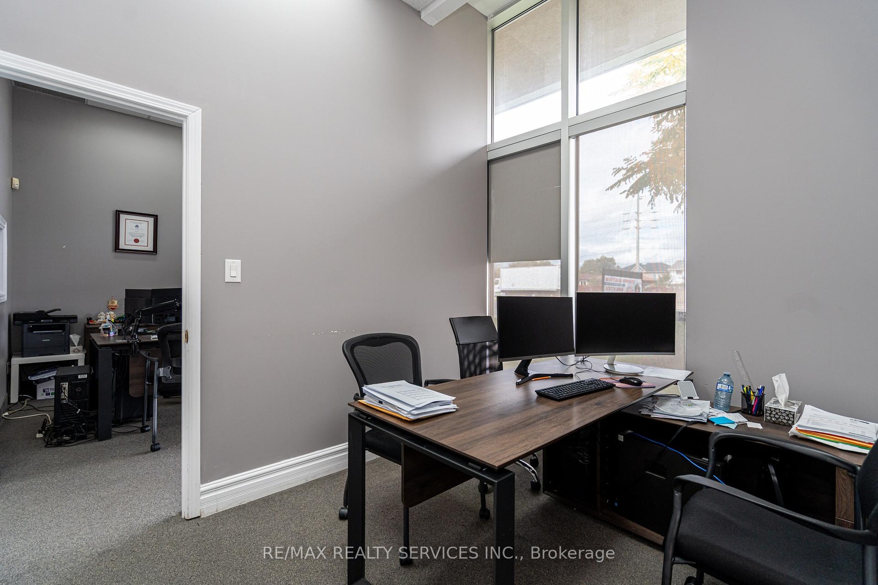 Attention All Professionals Looking To Start Your Own Business, Your Search Ends Here. Rare opportunity to own a GROUND FLOOR commercial unit with 2 entrances (front & back) in a prime location FACING AIRPORT ROAD. This unit features high ceilings with a welcoming reception & waiting area, 6 Offices, washroom, a separate kitchenette, excellent exposure, and easy access for customers and deliveries. Centrally located steps to public transit, just minutes to Toronto Pearson Airport and major highways like 407, 401, 427 & 409. Current zoning permits a wide range of uses making this a fantastic opportunity with endless possibilities. Extremely Clean & Well Kept. Great opportunity for investors or owner-users in a high-demand commercial corridor. Must See... 1275 sq ft gross including common areas. For accuracy Buyer or Their Agent To verify Total Area/Retail Area, Taxes, Maintenance Fees And Permitted uses. Plenty of parking. BONUS: Seller willing to lease back 3 offices.