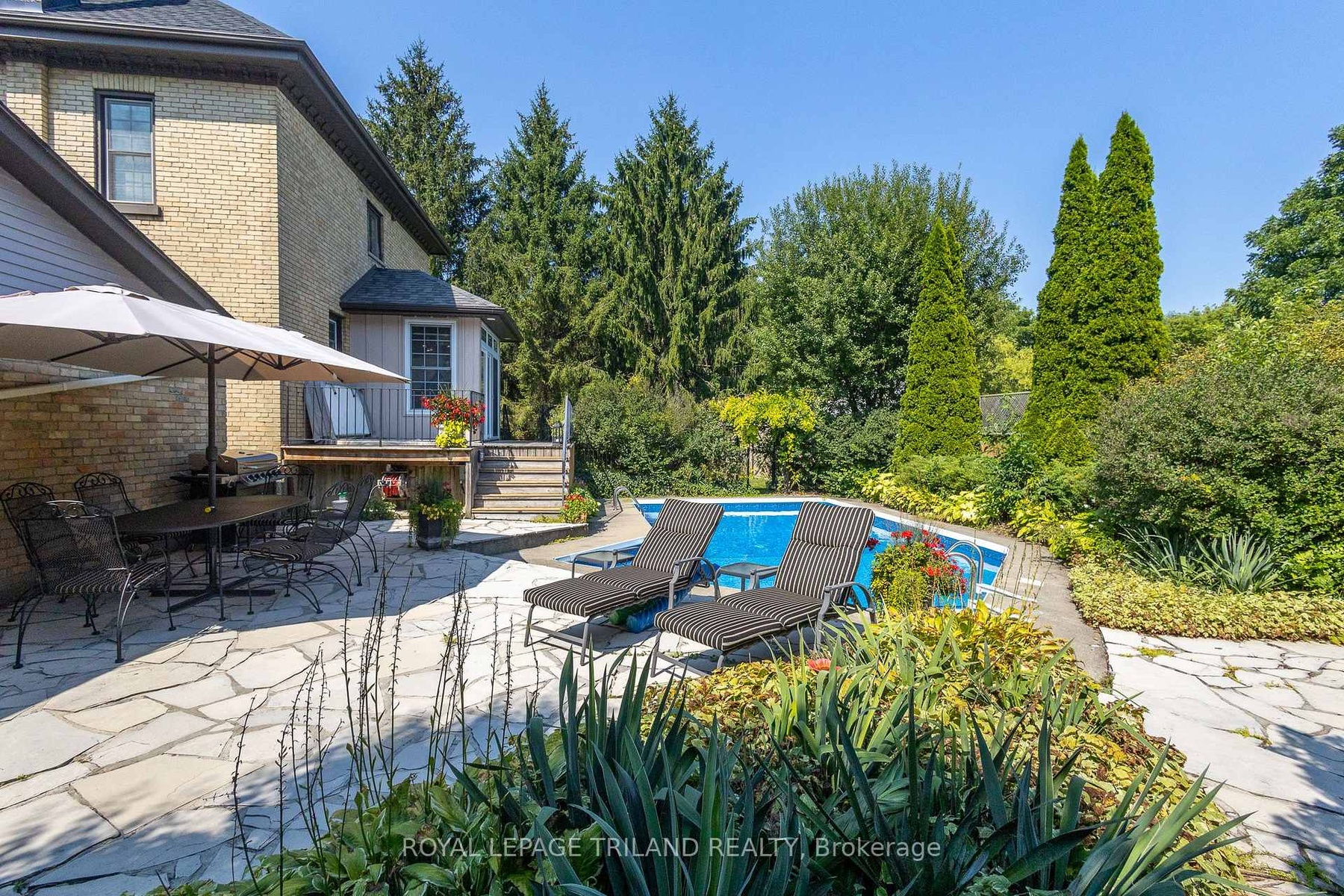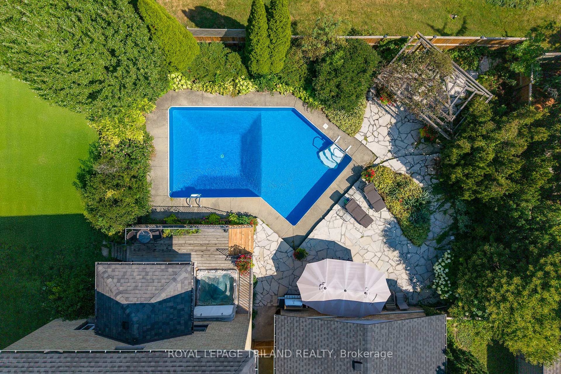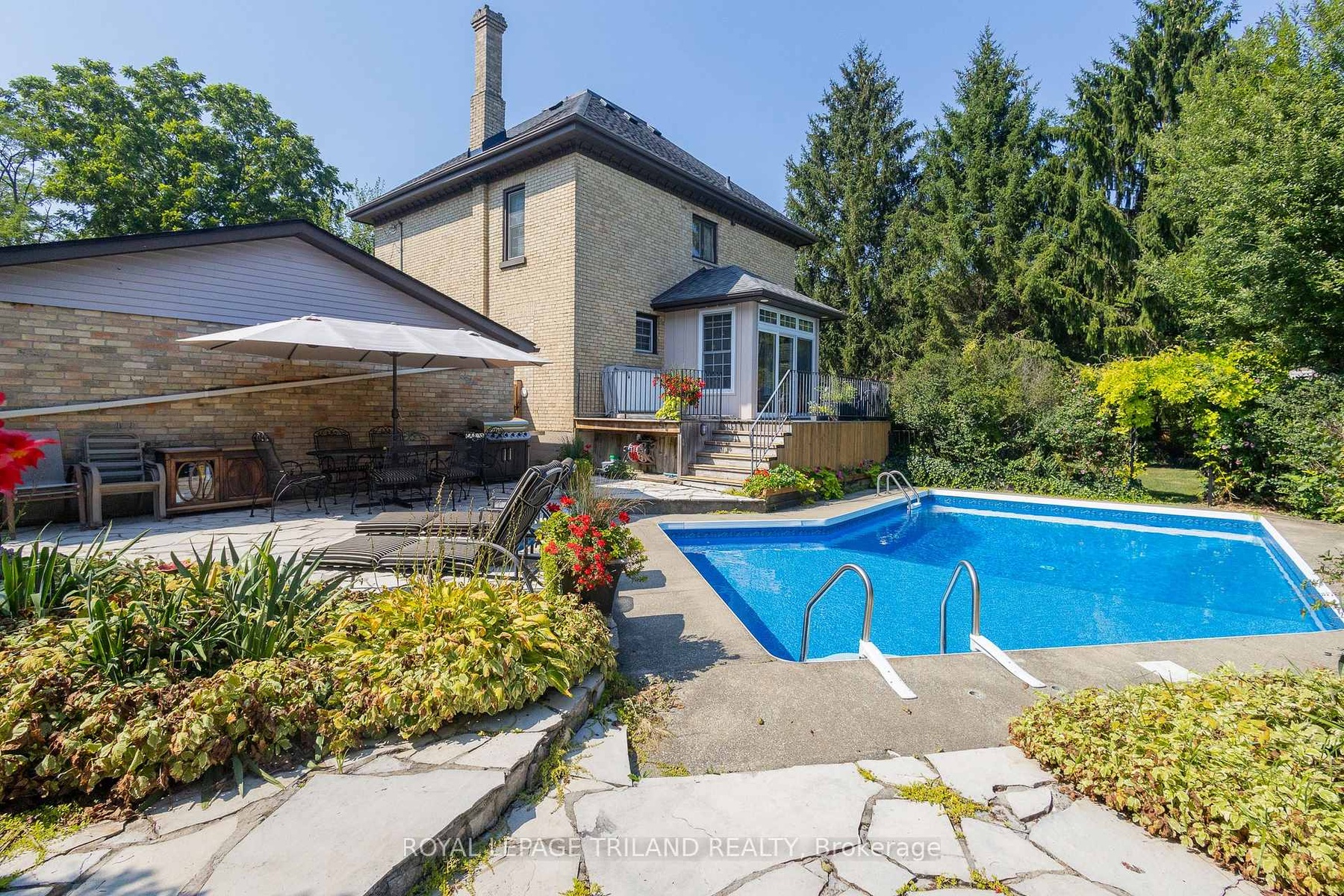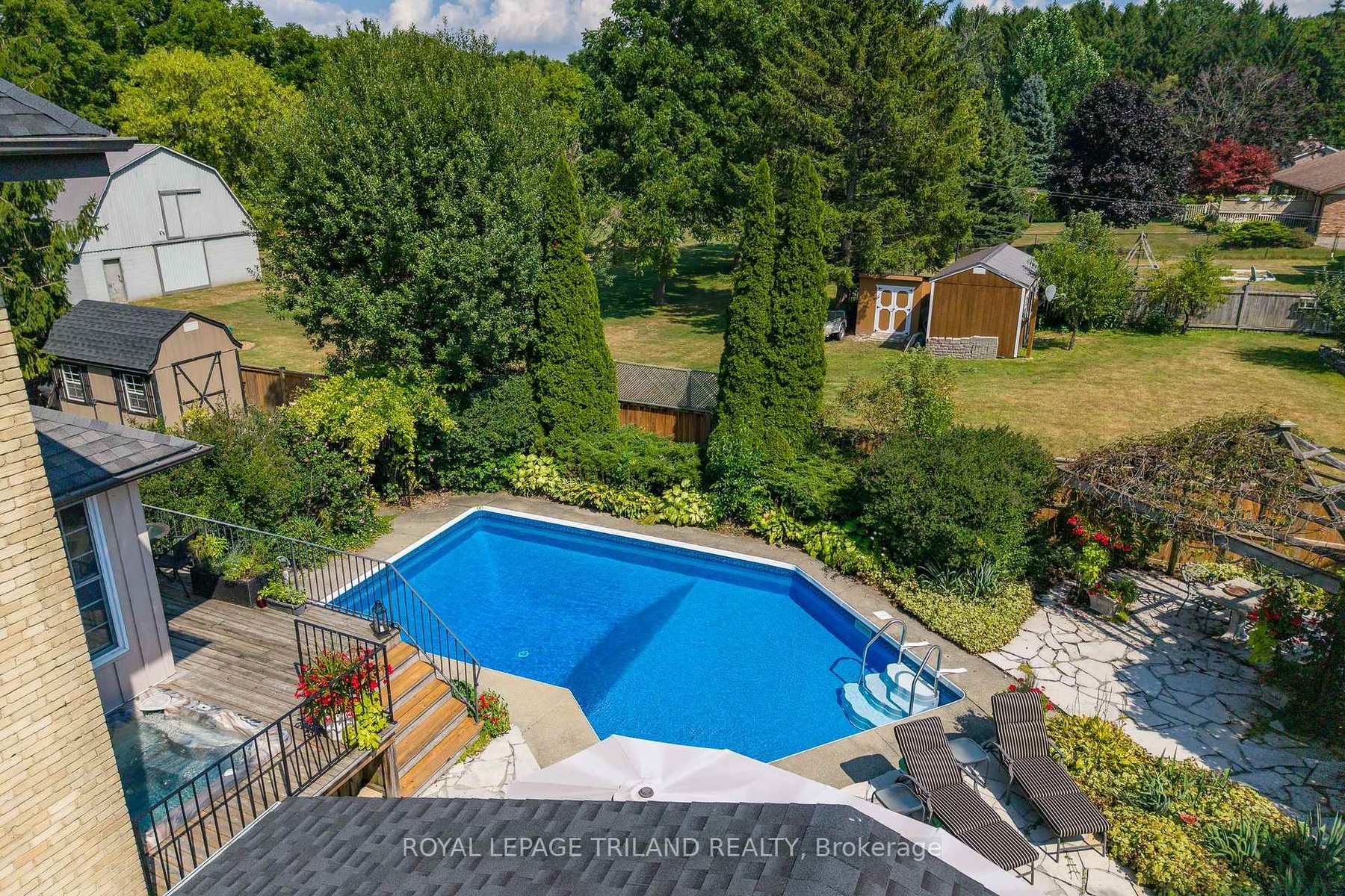 WELCOME TO YOUR OWN PERSONAL RESORT IN SMALL TOWN ONTARIO! This Parkhill gem has been meticulously maintained for over 40 years by the same owners & is absolutely loaded with premium amenities providing a package that is unbeatable in this price range! Nestled into the most desirable portion of Parkhill's quiet neighborhoods on a DOUBLE WIDTH lot with a fully fenced yard that includes a massive lawn space (ideal for a good sized ice rink, active kids, grandkids, or dogs, etc.) bordered by mature trees & also the spa-like pool setting with pergola and hot tub deck surrounded by flagstone. It's like 2 backyards in one! This premium location & with its oversized lot is surrounded by other large parcels fostering a rural feel but still being just steps away from all of Parkhill's convenient amenities. In addition to the exceptional landscaping & breathtaking setting, this stately & stunning century home doesn't miss a beat, from the 2022 kitchen & main level laundry/bathroom to the four corner bedrooms with the full bath upstairs. The list of upgrades is extensive: roof was brand new summer 2025, new pool liner, hot tub, & fence in 2023, & the 10-ft ceilings on the main level are in immaculate condition surrounded by updated thermal pane windows & hardwood flooring & it's all forced air gas heated & central air conditioned. This iconic property also offers a lot of storage space, with a full basement accessible by a separate entrance, a nice large storage shed, & a fair amount of space in the enclosed storage room at the back of the carport, which provides two covered sparking spaces in addition to the ample parking in the driveway. This carport could be easily walled-in to create a 2 car garage. Whether it's for entertaining a growing family or retiring in a quiet small town close to one of Canada's best beaches in Grand Bend just a few minutes up the road, if you can afford this level of luxury, you cannot afford to pass this up. This is a must see!