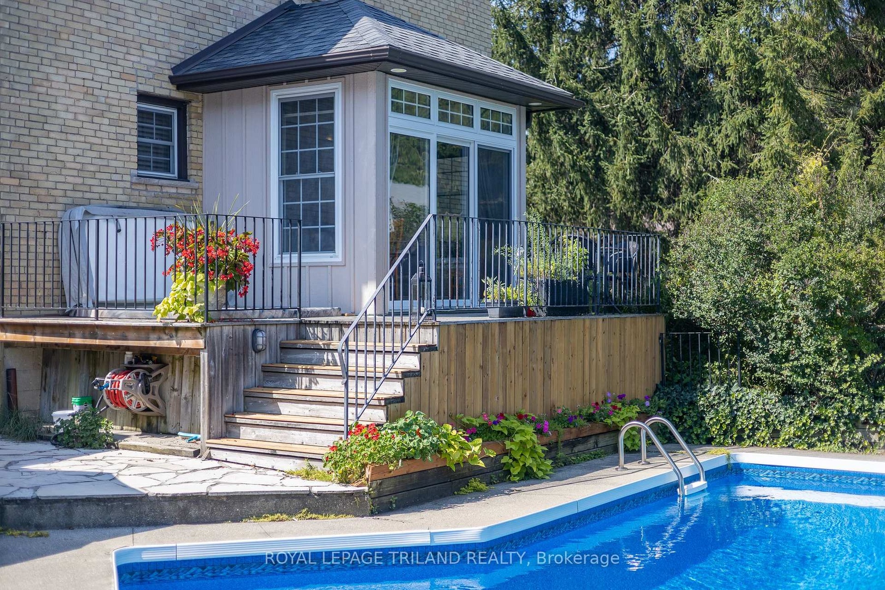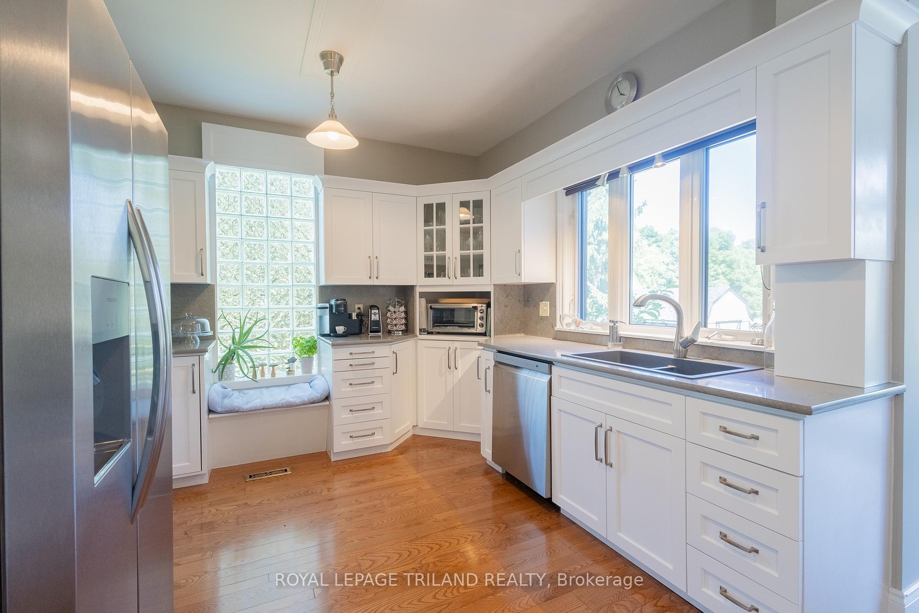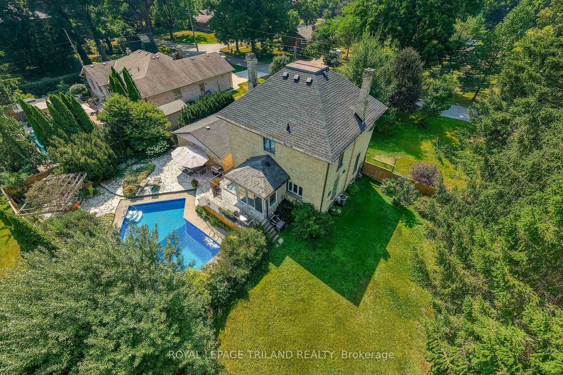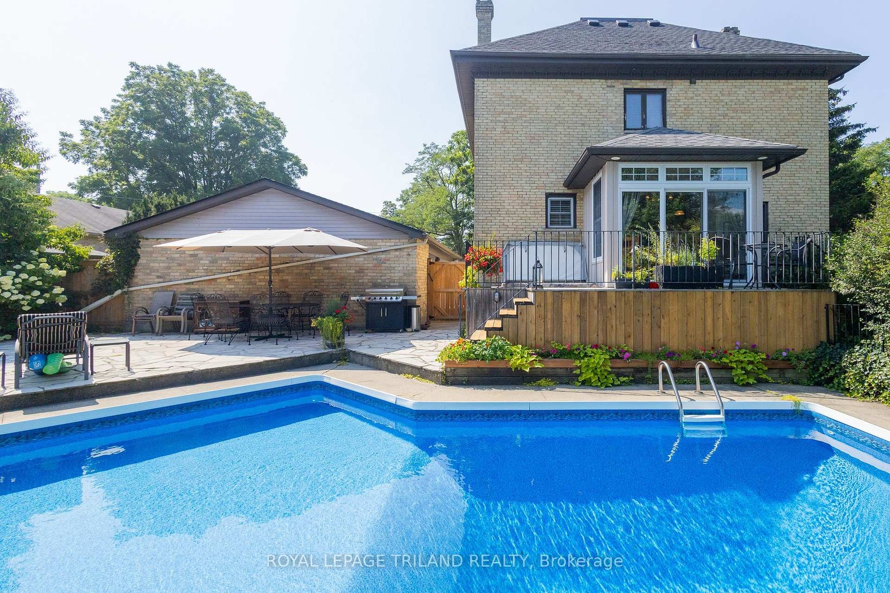 WELCOME TO YOUR OWN PERSONAL RESORT IN SMALL TOWN ONTARIO! This Parkhill gem has been meticulously maintained for over 40 years by the same owners & is absolutely loaded with premium amenities providing a package that is unbeatable in this price range! Nestled into the most desirable portion of Parkhill's quiet neighborhoods on a DOUBLE WIDTH lot with a fully fenced yard that includes a massive lawn space (ideal for a good sized ice rink, active kids, grandkids, or dogs, etc.) bordered by mature trees & also the spa-like pool setting with pergola and hot tub deck surrounded by flagstone. It's like 2 backyards in one! This premium location & with its oversized lot is surrounded by other large parcels fostering a rural feel but still being just steps away from all of Parkhill's convenient amenities. In addition to the exceptional landscaping & breathtaking setting, this stately & stunning century home doesn't miss a beat, from the 2022 kitchen & main level laundry/bathroom to the four corner bedrooms with the full bath upstairs. The list of upgrades is extensive: roof was brand new summer 2025, new pool liner, hot tub, & fence in 2023, & the 10-ft ceilings on the main level are in immaculate condition surrounded by updated thermal pane windows & hardwood flooring & it's all forced air gas heated & central air conditioned. This iconic property also offers a lot of storage space, with a full basement accessible by a separate entrance, a nice large storage shed, & a fair amount of space in the enclosed storage room at the back of the carport, which provides two covered sparking spaces in addition to the ample parking in the driveway. This carport could be easily walled-in to create a 2 car garage. Whether it's for entertaining a growing family or retiring in a quiet small town close to one of Canada's best beaches in Grand Bend just a few minutes up the road, if you can afford this level of luxury, you cannot afford to pass this up. This is a must see!