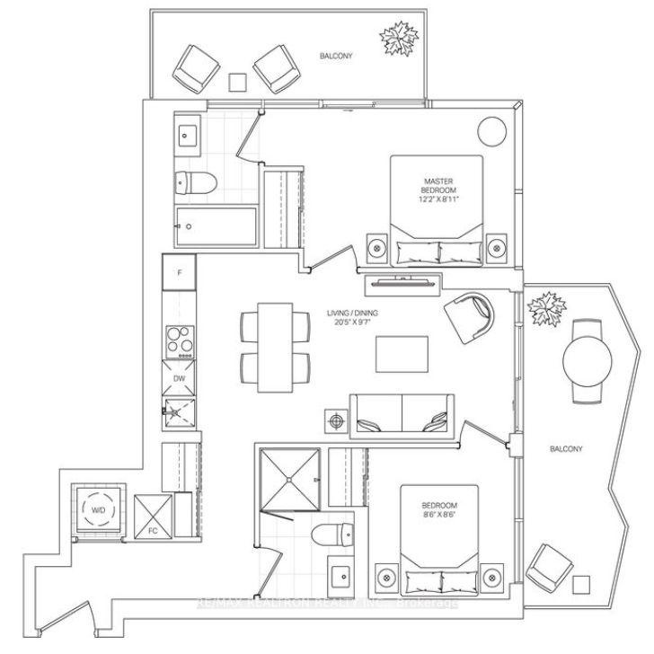 This stunning 2-bedroom, 2-bathroom corner suite is located on the exclusive 8th floor, featuring rare 10-foot ceilings and expansive floor-to-ceiling windows that provide unobstructed city views. Residents enjoy direct access to the amenities floor, making it easy to reach the gym, yoga studio, pool, and lounges just steps from your door.This thoughtfully designed 2-bedroom, 2-bathroom corner suite showcases 10-foot ceilings exclusive to the 8th floor and expansive floor-to-ceiling windows with unobstructed views. The open-concept living and dining area flows seamlessly to a private balcony, ideal for relaxing or entertaining. The primary bedroom features a walk-out to the balcony and private ensuite, while the second bedroom provides flexibility for guests or a home office. A modern kitchen with stainless steel appliances, wide-plank flooring throughout, in-suite laundry, and builder-installed rolling blinds complete this stylish and functional layout. Plus, enjoy easy access to the amenities floor just steps from your suite.Living in this suite means having direct access to Untitled Toronto's outstanding lifestyle amenities, all conveniently located on the same floor. Residents can enjoy state-of-the-art fitness and yoga studios, unwind in the indoor/outdoor pool and spa, or connect with others in the co-working and social lounges. For recreation, take advantage of the basketball court, while rooftop terraces with BBQs and pizza ovens provide the perfect setting for dining and entertaining. Tranquility awaits in the meditation garden, and families benefit from a dedicated kids' playroom. A 24-hour concierge adds the finishing touch to this elevated lifestyle experience.