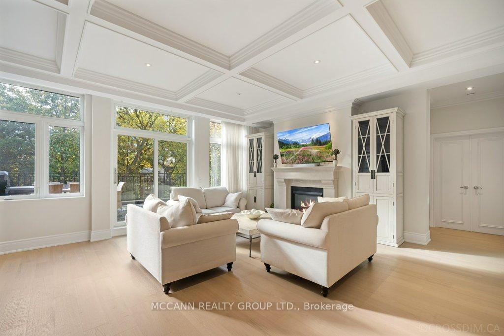 One-of-a-Kind Mid-Town Gem in a Converted 3-Storey ChurchRare opportunity to own a stunning suite with a 400 sq ft south-facing open-air terrace surrounded by trees and gardens, perfect for entertaining or serene outdoor living. Features 10 ft coffered ceilings, brand new sliding doors, and complete privacy with windows on three sides filling every room with natural light and serene treetop views. Fully renovated with an enormous Italian designer chef's kitchen, abundant cupboard and counter space, cast stone and gas fireplace, and Restoration Hardware inspired furnishings indoors and out. Open concept living and dining area seamlessly connects to the terrace. Bright and airy primary bedroom offers double doors to the terrace, walk in closet, pot lights, and a luxurious 5 piece ensuite with his and hers sinks. Freshly painted with new engineered white oak wide-plank flooring throughout installed in 2025. Only two suites in the corridor, offering privacy and the feeling of having the floor to yourself. Move-in ready and fully turn-key with everything needed to entertain. Includes two underground parking spaces. Exceptional location just minutes from Yonge Street's boutique shopping district, fine dining, TTC, Sherwood Park, Sunnybrook Hospital, Highway 401 and more. Boutique building living at its finest.