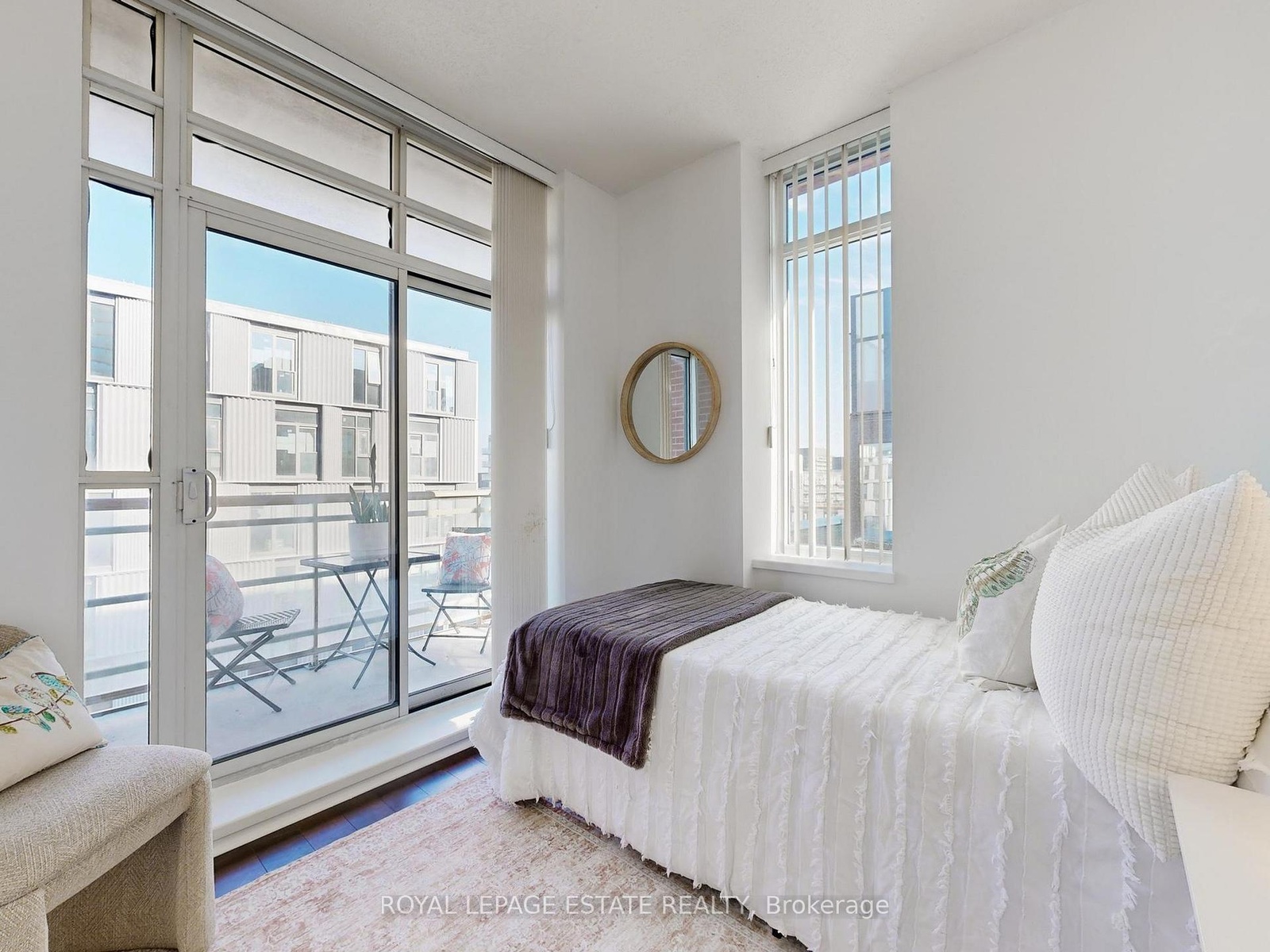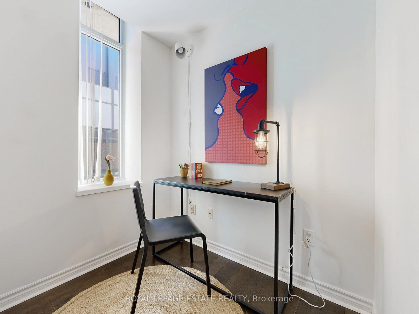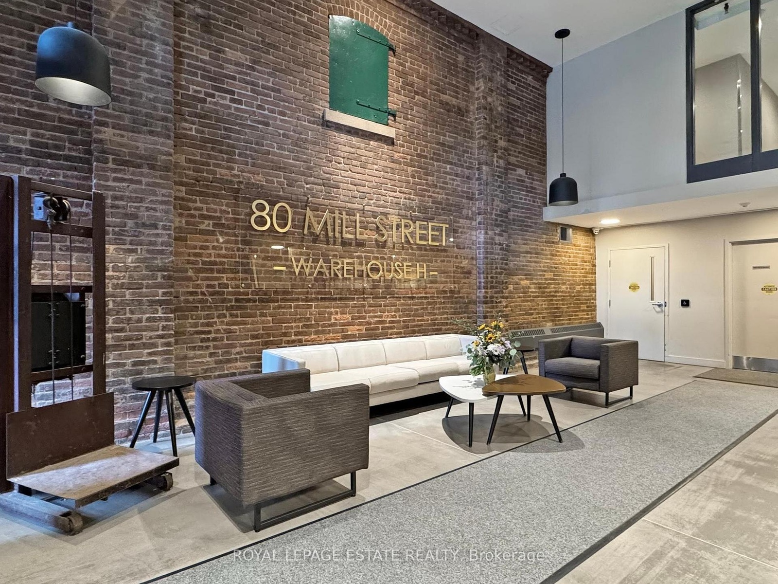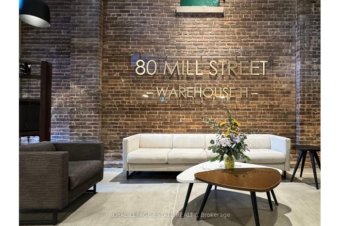 FABULOUS SUB PENTHOUSE CORNER SUITE in the heart of The Distillery - boasting over 1000 square feet total of stylish living space! Expansive, split-plan layout with amazing flow and function, hardwood floors throughout and tons of natural light.. even the den has a window and can be a sun-filled office, nursery or a cozy guestroom. Fantastic, updated family-size kitchen - large center island with bar, full sized appliances, granite countertops, and tons of prep space for the home chef. Separate dining room too when you want to entertain. BONUS: The primary bedroom has a large walk-in closet that was originally designed by the builder as a primary ENSUITE BATHROOM. This offers an incredibly rare opportunity to convert back to original builder layout, pending the normal application process, for a second full bathroom . Second bedroom has direct access to the balcony and double exposure. Balcony offers sunrise AND sunset exposure; perfect for morning coffee or an evening cocktail. This loft-style building has a Boutique Hotel vibe; Exposed brick walls, original historical features, full gym, party & meeting rooms & rooftop deck for easy living. Pet-Loving policy will make your furry family members feel very welcome. PARKING & LOCKER both owned. St Lawrence Market, YMCA, Cherry Beach, Corktown Common and new Biidaasige Park with miles of lakeside trails are all an easy stroll. And best of all, you will be in the historic, cobblestoned heart of The Distillery District - just in time for the famous Christmas Market! ALL UTILITIES INCLUDED in Maintenance (except internet). Extremely well managed building. You simply won't find better value in The Distillery. This is elegant & easy urban living at its best!