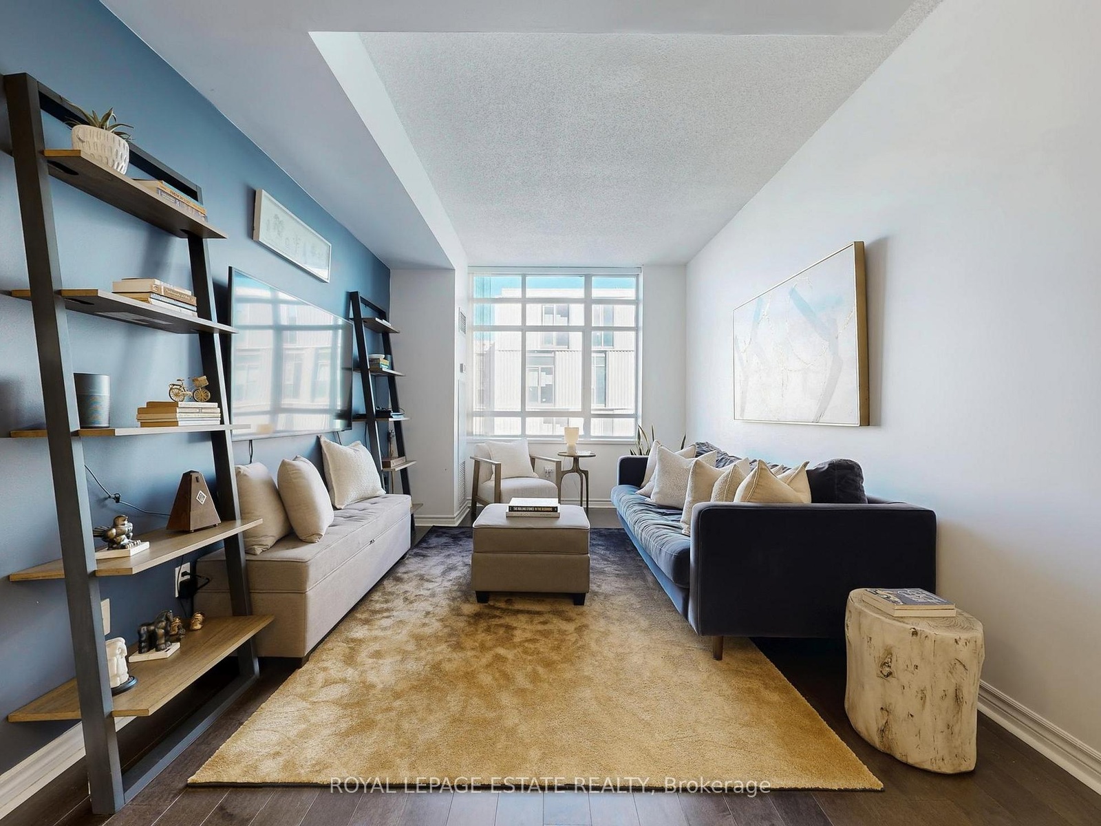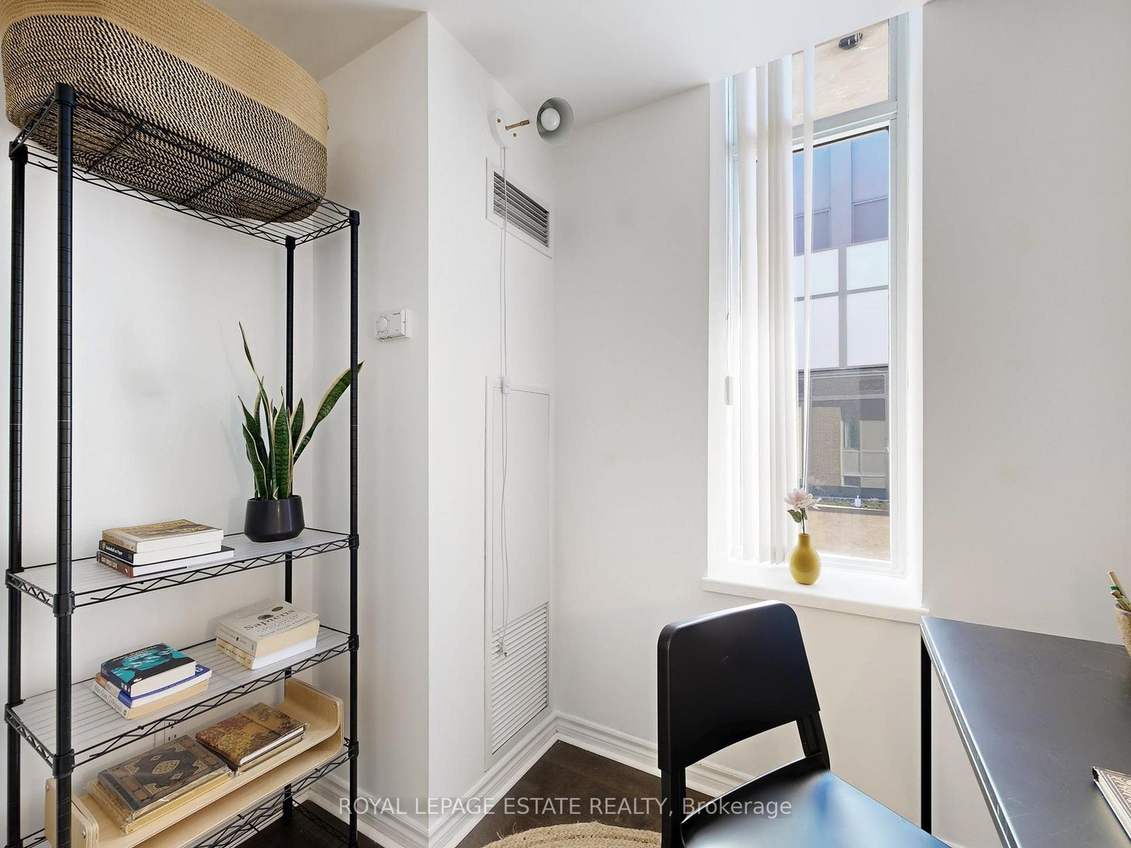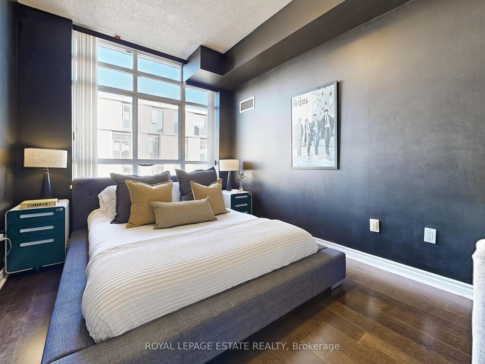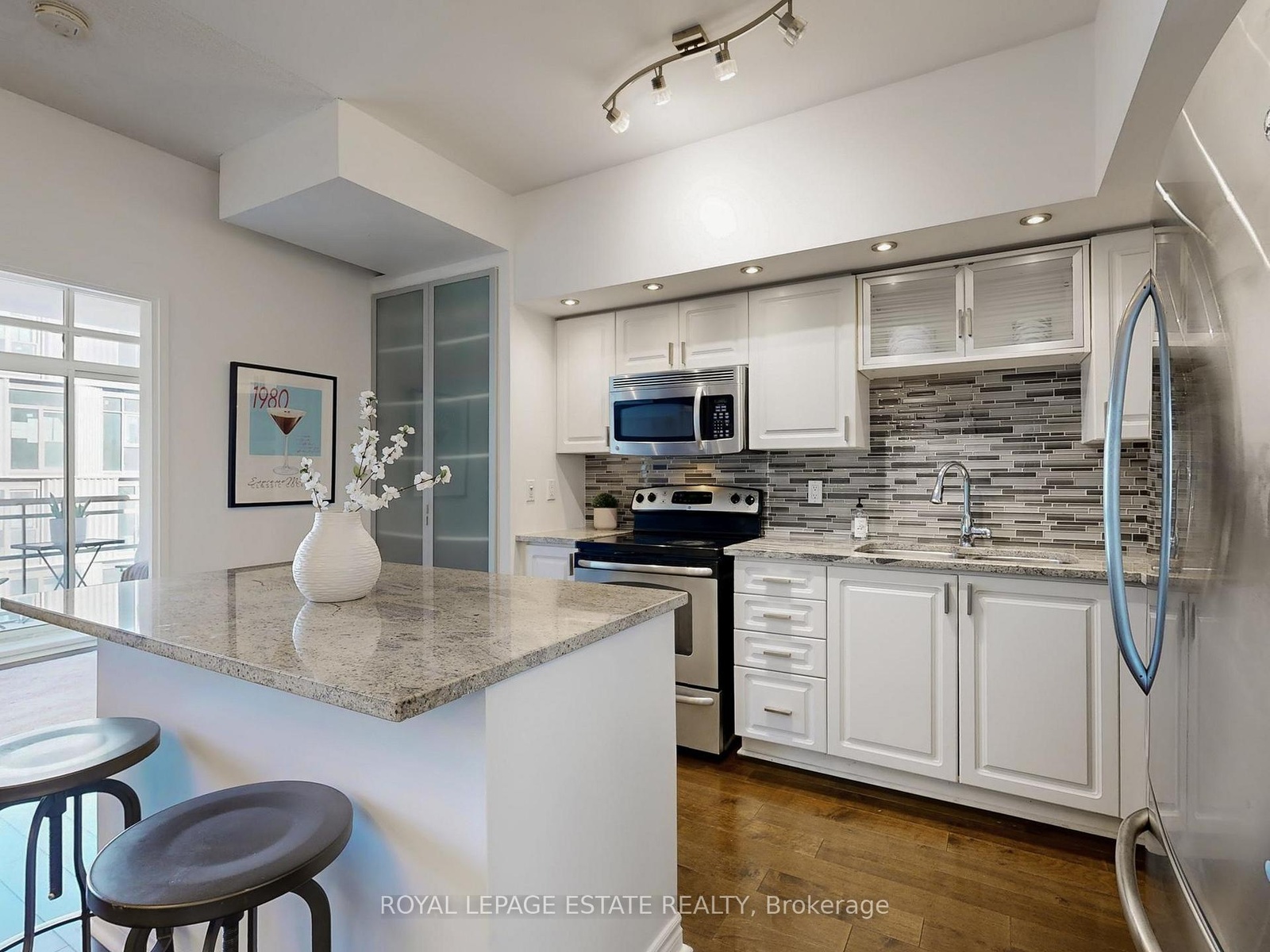 FABULOUS SUB PENTHOUSE CORNER SUITE in the heart of The Distillery - boasting over 1000 square feet total of stylish living space! Expansive, split-plan layout with amazing flow and function, hardwood floors throughout and tons of natural light.. even the den has a window and can be a sun-filled office, nursery or a cozy guestroom. Fantastic, updated family-size kitchen - large center island with bar, full sized appliances, granite countertops, and tons of prep space for the home chef. Separate dining room too when you want to entertain. BONUS: The primary bedroom has a large walk-in closet that was originally designed by the builder as a primary ENSUITE BATHROOM. This offers an incredibly rare opportunity to convert back to original builder layout, pending the normal application process, for a second full bathroom . Second bedroom has direct access to the balcony and double exposure. Balcony offers sunrise AND sunset exposure; perfect for morning coffee or an evening cocktail. This loft-style building has a Boutique Hotel vibe; Exposed brick walls, original historical features, full gym, party & meeting rooms & rooftop deck for easy living. Pet-Loving policy will make your furry family members feel very welcome. PARKING & LOCKER both owned. St Lawrence Market, YMCA, Cherry Beach, Corktown Common and new Biidaasige Park with miles of lakeside trails are all an easy stroll. And best of all, you will be in the historic, cobblestoned heart of The Distillery District - just in time for the famous Christmas Market! ALL UTILITIES INCLUDED in Maintenance (except internet). Extremely well managed building. You simply won't find better value in The Distillery. This is elegant & easy urban living at its best!