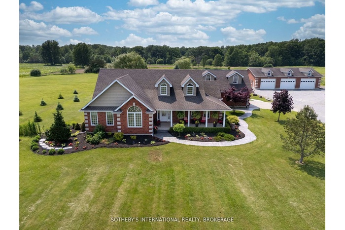 Welcome To Your Private Countryside Estate Retreat, Set On Over 12 Pristine Acres. This Exceptional Brick Bungalow Offers 5,000+ SQ Feet Of Finished Living Space, Seamlessly Blending Rural Charm With Upscale Comfort. Covered Front Porch Leads Into A Bright, Open-Concept Layout With Vaulted Ceilings, Hardwood Floors, And Sun-Filled Principal Rooms. Gourmet Kitchen Boasts Granite Counters, Stainless Steel Appliances, Center Island, And Sunlit Eat-In Area Overlooking Expansive Grounds. Formal Dining Room And Spacious Living Room With Gas Fireplace Flow Naturally To Outdoor PatioPerfect For Entertaining Or Quiet Evenings. Primary Suite Features Walk-In Closet, Spa-Inspired 5-Piece Ensuite, And Private Walkout To Hot Tub.Finished Basement Adds Flexibility With Recreation Area, Gym, Office, And Guest Bedroom. Above Heated 2-Car Garage, A 30' x 26' Loft With Private Entrance, 2-Piece Bath, And Balcony Suits Guest Use, Home Studio, Or Office. Resort-Style Backyard Designed For Comfort And LeisureHeated Saltwater Pool, Stamped Concrete Patio, 40' x 27' Cabana With Wet Bar And Bath, Covered Hot Tub Deck, Outdoor Kitchen, Artificial Turf, And Fully Fenced Entertainment Zone.Detached 60' x 40' Heated Workshop Offers 11' Ceilings, Four Oversized Doors, Concrete FloorsIdeal For Trades, Automotive Work, Or Storage. Parking For 15+ Vehicles. Roughly 8 Acres Cultivated As Farmland For Vegetables, Supporting A Self-Sustaining Lifestyle. Additional Features Include Generac 20kW Generator, Bunkie, Pond, Greenhouse Pad, Natural Gas Heating, And 200-Amp Electrical Service. Minutes From Niagara Falls, Niagara-On-The-Lake, Wineries, And The Upcoming South Niagara Hospital (2028), This Turnkey Property Combines Comfort, Function, And Lasting Value In One Distinctive Package.