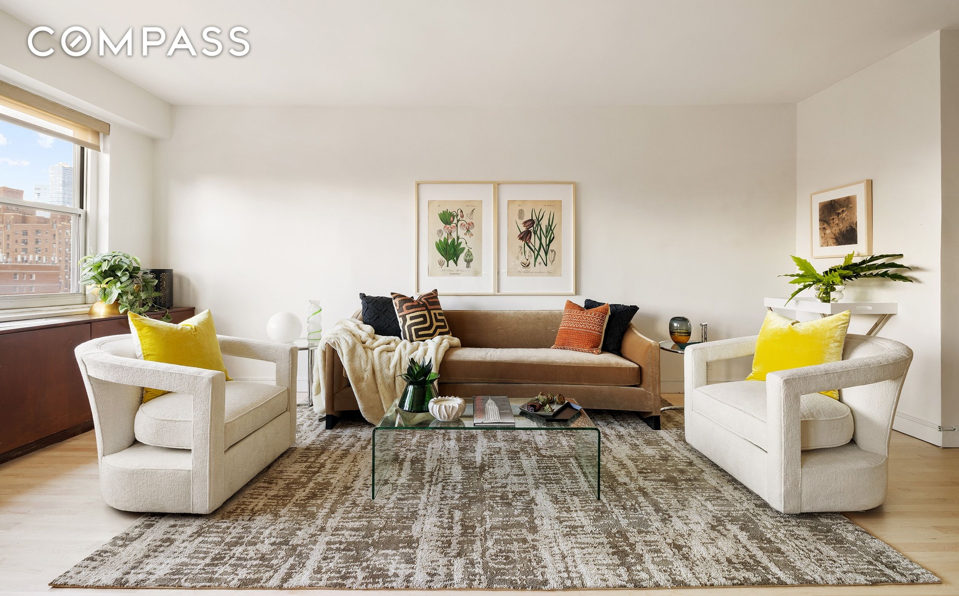 This convertible 2/3 bedroom apartment is brightly lit by east, south and western light from morning to sunset and has stunning views over the Hudson River and historic brownstone Chelsea. Perfect as a 2 bedroom apartment, with the potential to convert the dining area to a third bedroom, retaining a spacious living/dining area.