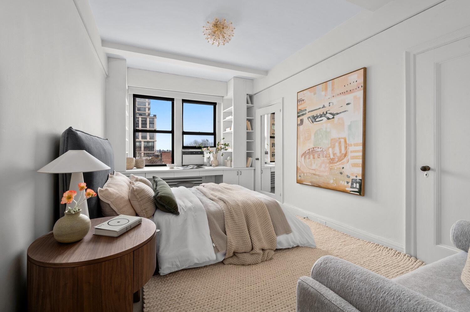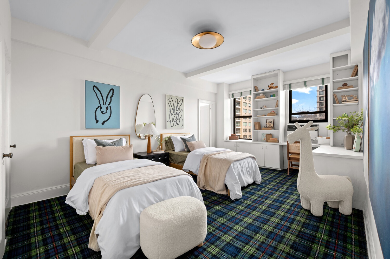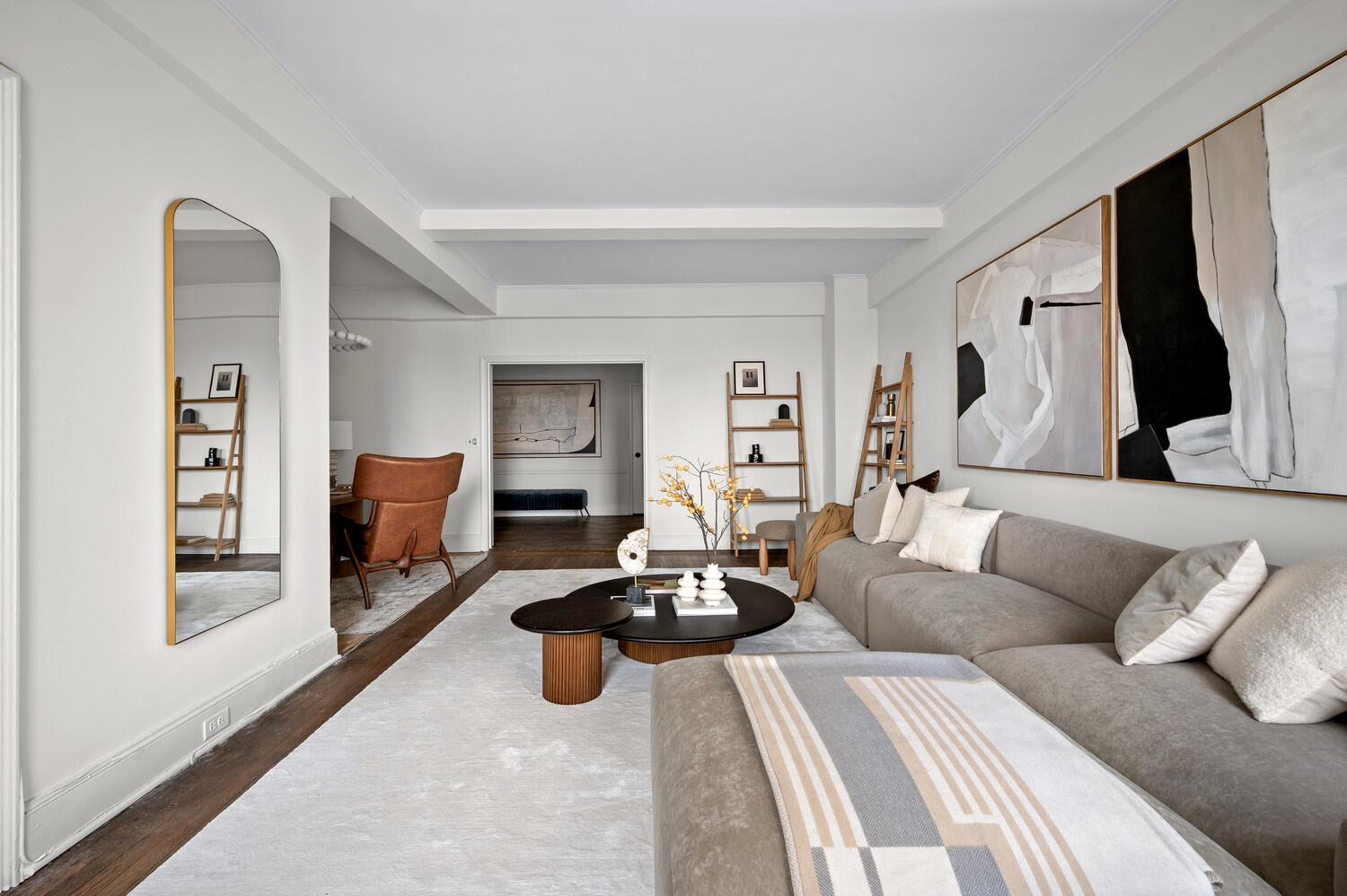 A gracious central gallery introduces the apartment and flows effortlessly into the home's entertaining and private wings. The expansive living room, anchored by a wood-burning fireplace, is bathed in natural light and framed by picture-perfect vistas stretching over the park and river. The adjoining formal dining room-generous in scale and beautifully proportioned-offers an ideal setting for gatherings large or small.