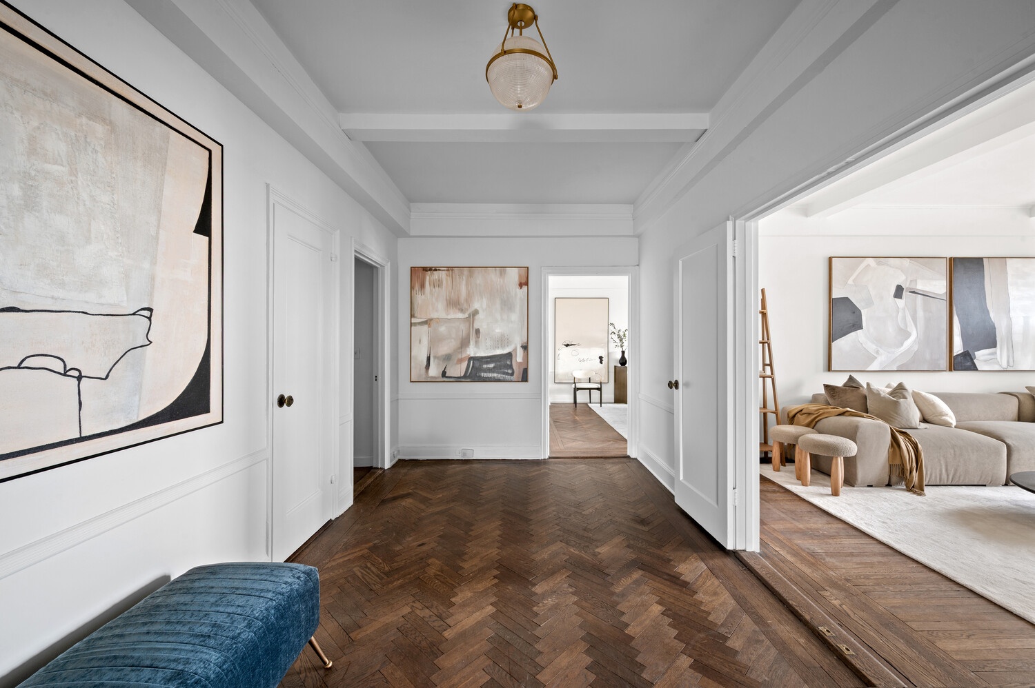 Architectural details throughout reflect Emery Roth's hallmark prewar craftsmanship, including ceiling heights over nine feet, solid hardwood floors, and stately proportions.