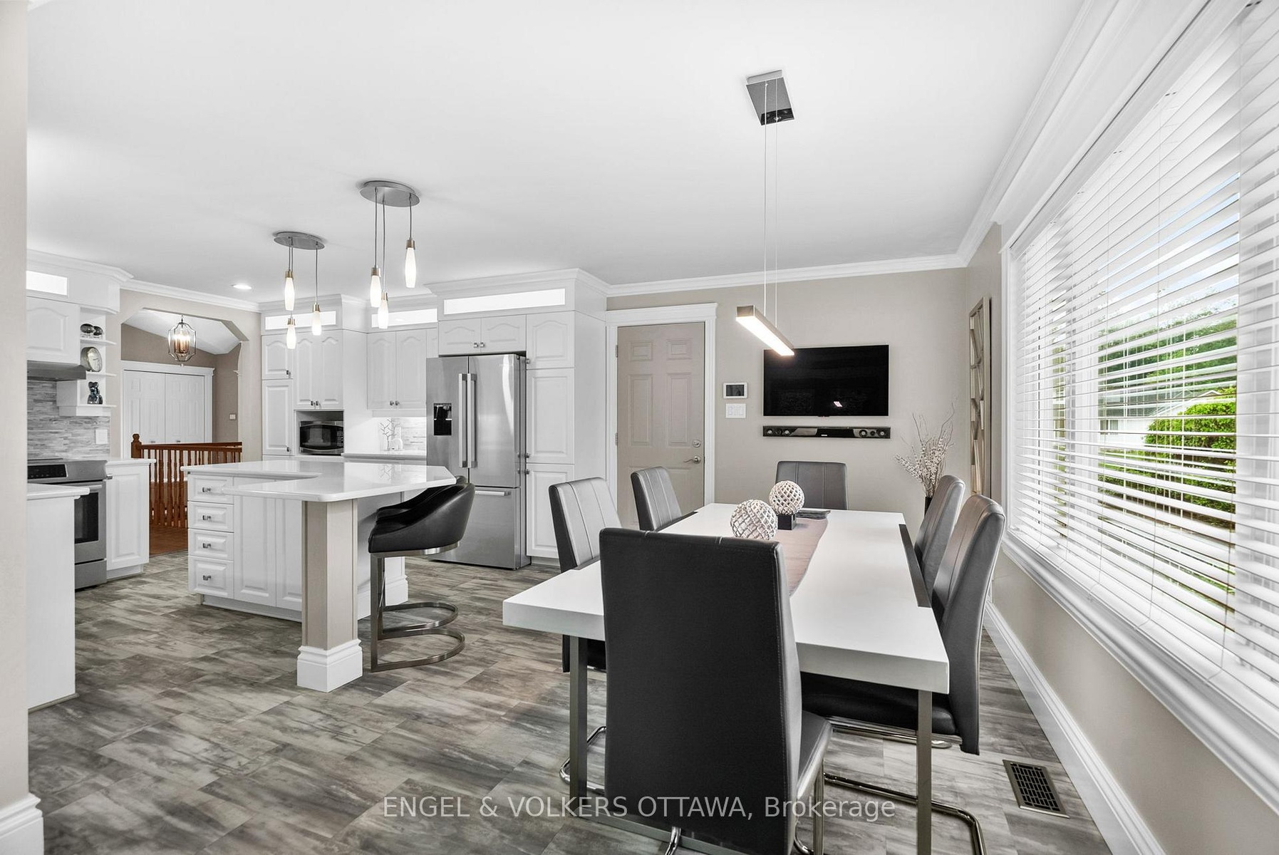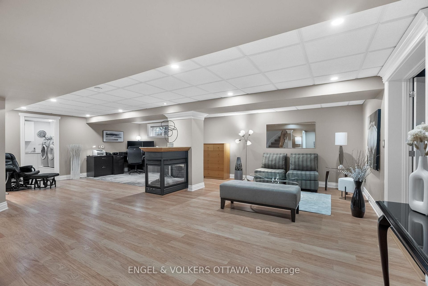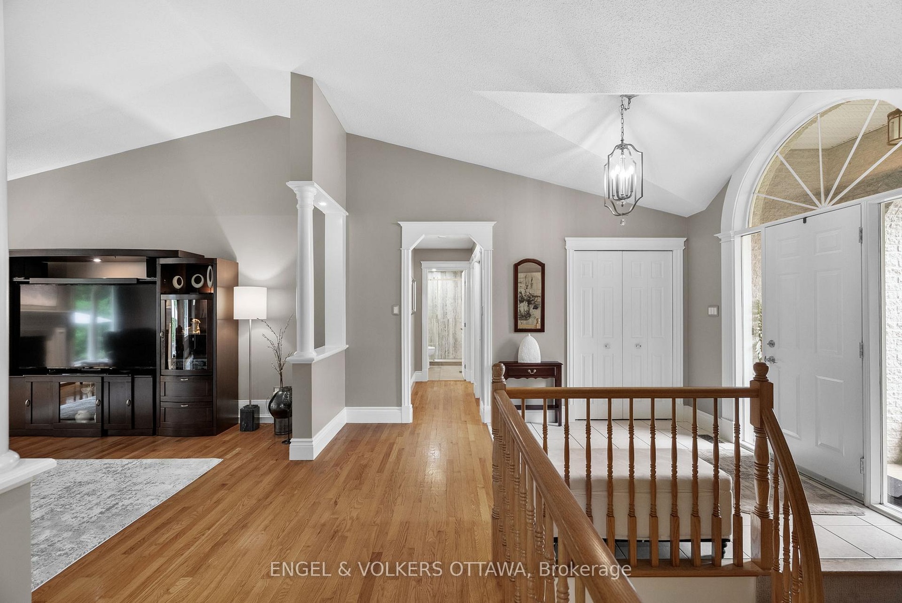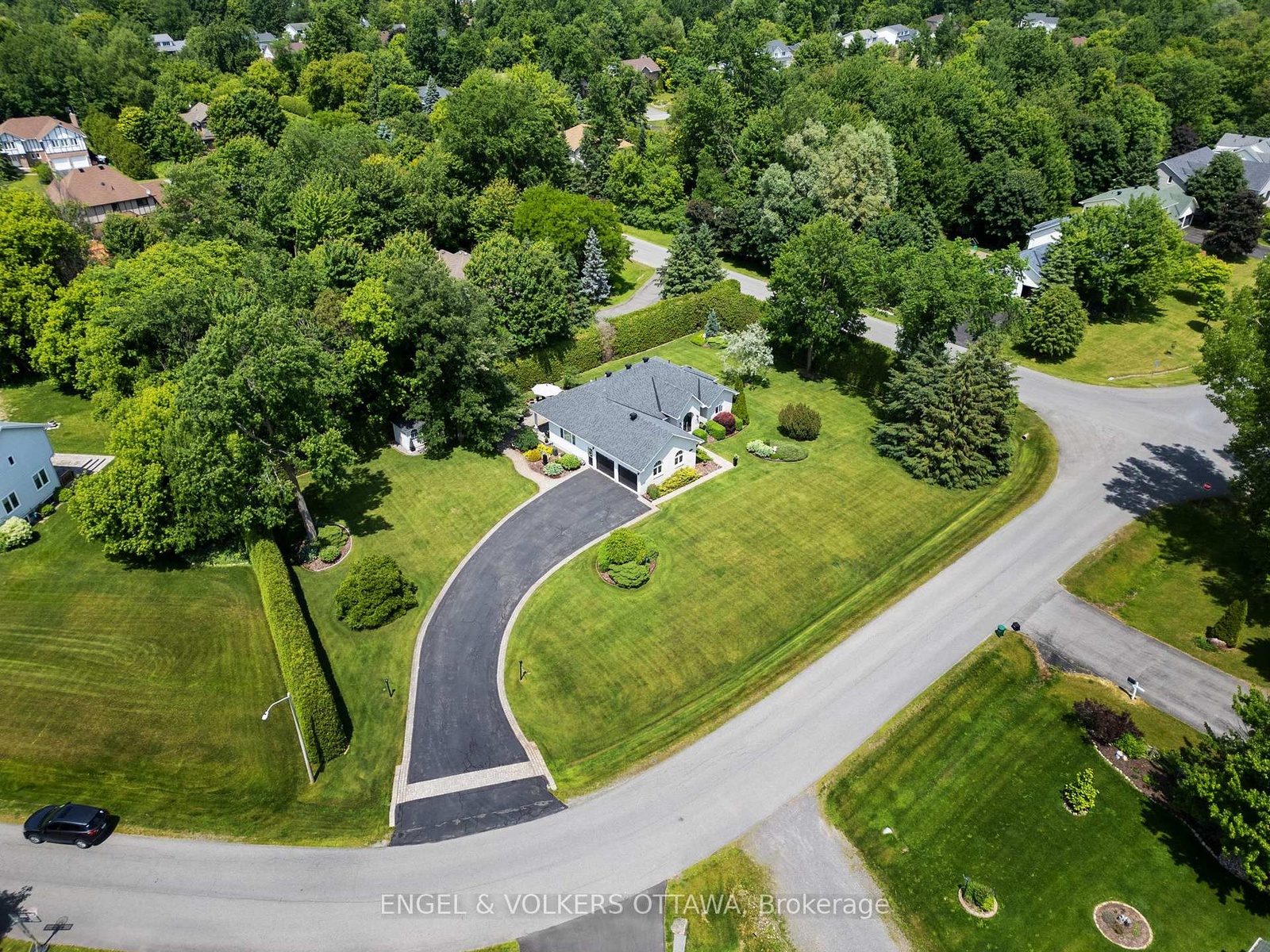 1591 Stephanie Anne Drive invites you to experience your very own private cinema - a spectacular two-level, soundproof home theatre designed for movie nights, sports, and next-level gaming, combined with luxurious living set on a beautifully landscaped corner lot. Surrounded by 20-foot hedges and set back from the road, this residence delivers privacy and distinction in one of Greely's most established communities. The main floor opens with a grand foyer boasting vaulted ceilings, ceramic tile, and hardwood floors flowing throughout. Anchored by a gas fireplace and soaring 13-foot ceilings, the living room exudes warmth and grandeur, while the formal dining room sets the stage for memorable gatherings. The designer kitchen features quartz counters, stainless steel appliances, and a large central island with pendant lighting. A bright adjoining eating area with oversized windows and French doors extends to a private backyard and two-level hardscape patios, perfect for evening relaxation. The primary suite offers a walk-in closet, custom wardrobe, and a luxurious 5-piece ensuite. A spacious secondary bedroom and beautifully finished full bath (all baths with quartz counters) complete the main level. A striking circular staircase leads to the lower level, where the theatre takes center stage with tiered seating and cinematic scale. Complementing this is an expansive recreation room, an additional bedroom (currently a gym), a home office, a sleek full bath, and a laundry room. Crafted with enduring steel construction, the home blends elegance with strength. Outdoors, manicured landscaping and an underground irrigation system impress across the property, while an oversized two-car garage, a sweeping circular driveway for 21 vehicles, and a large custom storage shed offer unmatched convenience. Minutes from schools, parks, shops, and nature trails, this home delivers Greely's tranquility with modern luxury and unforgettable entertainment at home with family and friends.