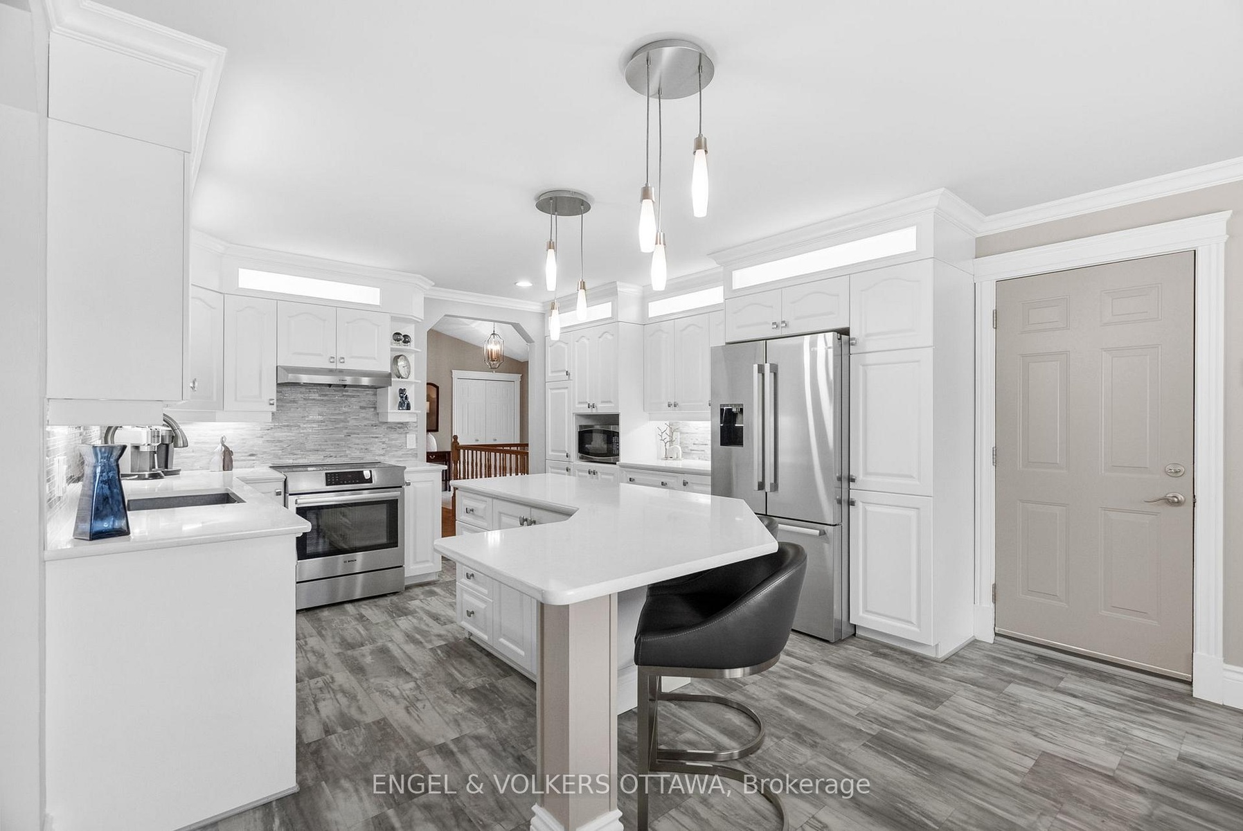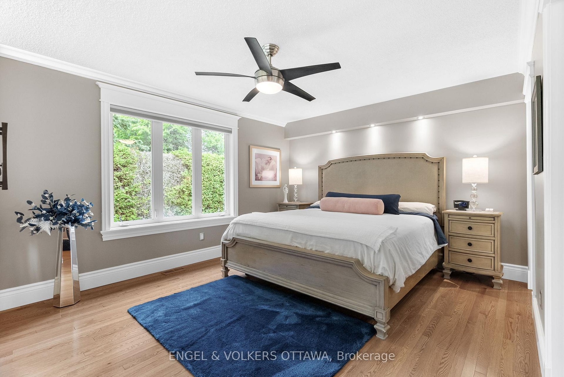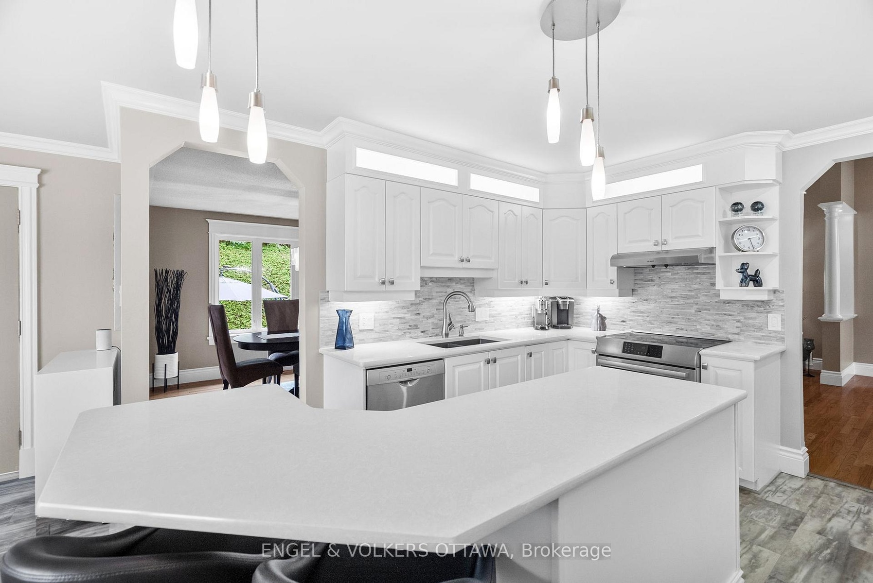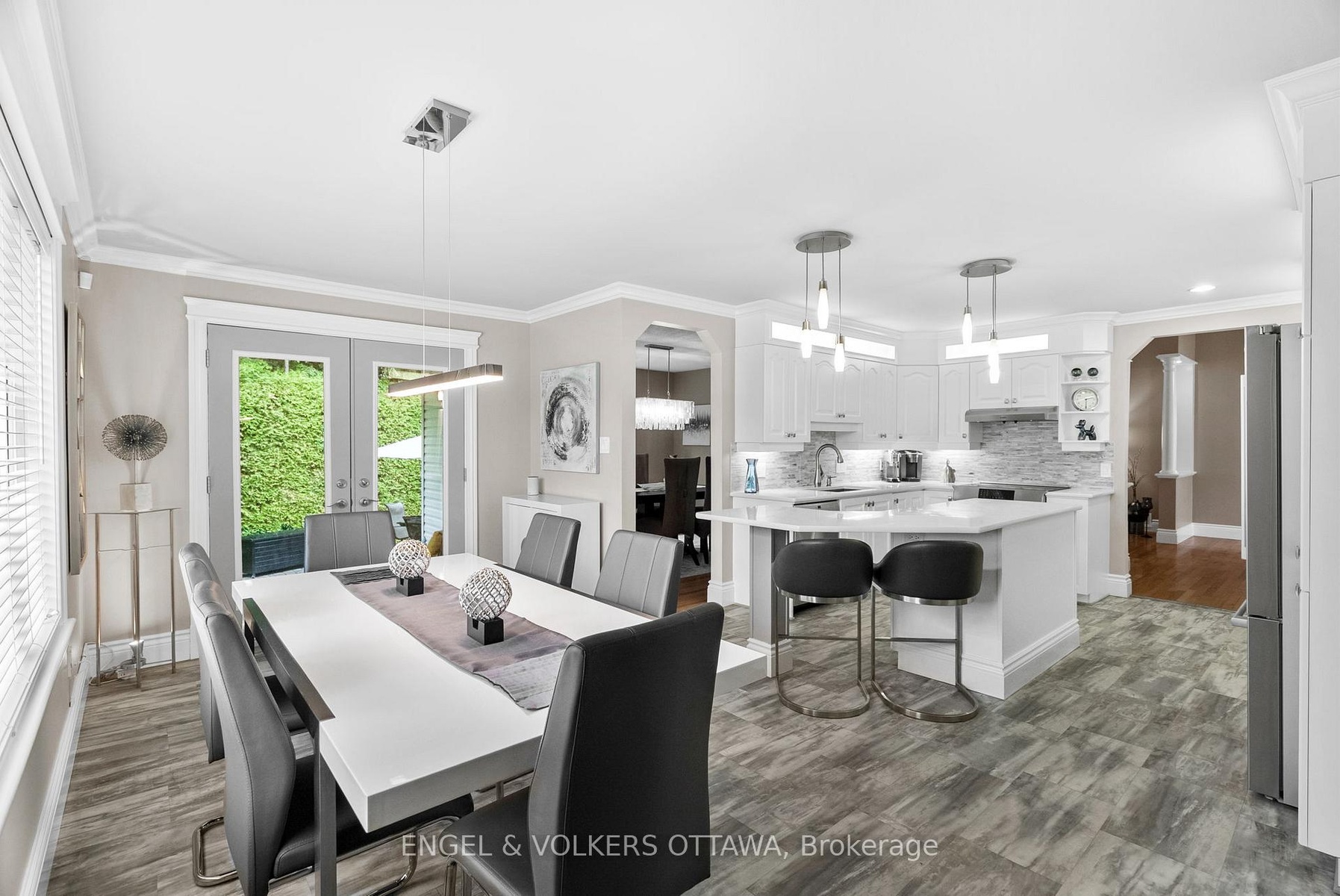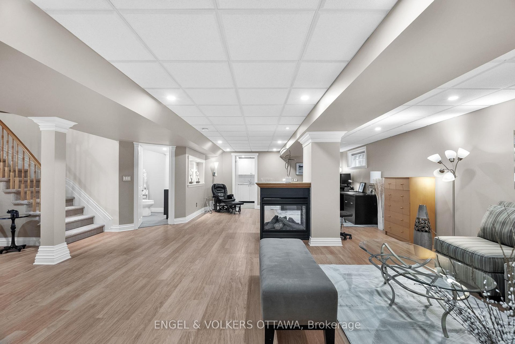 1591 Stephanie Anne Drive invites you to experience your very own private cinema - a spectacular two-level, soundproof home theatre designed for movie nights, sports, and next-level gaming, combined with luxurious living set on a beautifully landscaped corner lot. Surrounded by 20-foot hedges and set back from the road, this residence delivers privacy and distinction in one of Greely's most established communities. The main floor opens with a grand foyer boasting vaulted ceilings, ceramic tile, and hardwood floors flowing throughout. Anchored by a gas fireplace and soaring 13-foot ceilings, the living room exudes warmth and grandeur, while the formal dining room sets the stage for memorable gatherings. The designer kitchen features quartz counters, stainless steel appliances, and a large central island with pendant lighting. A bright adjoining eating area with oversized windows and French doors extends to a private backyard and two-level hardscape patios, perfect for evening relaxation. The primary suite offers a walk-in closet, custom wardrobe, and a luxurious 5-piece ensuite. A spacious secondary bedroom and beautifully finished full bath (all baths with quartz counters) complete the main level. A striking circular staircase leads to the lower level, where the theatre takes center stage with tiered seating and cinematic scale. Complementing this is an expansive recreation room, an additional bedroom (currently a gym), a home office, a sleek full bath, and a laundry room. Crafted with enduring steel construction, the home blends elegance with strength. Outdoors, manicured landscaping and an underground irrigation system impress across the property, while an oversized two-car garage, a sweeping circular driveway for 21 vehicles, and a large custom storage shed offer unmatched convenience. Minutes from schools, parks, shops, and nature trails, this home delivers Greely's tranquility with modern luxury and unforgettable entertainment at home with family and friends.