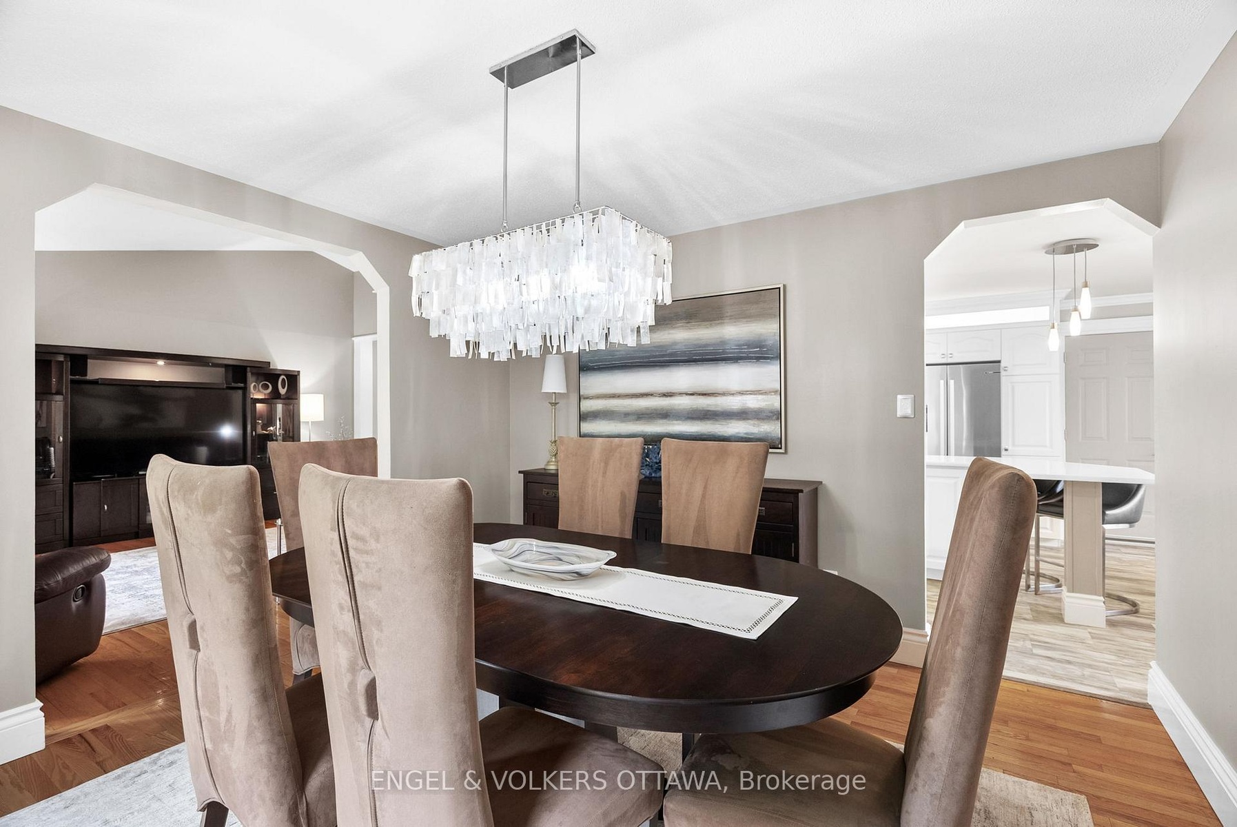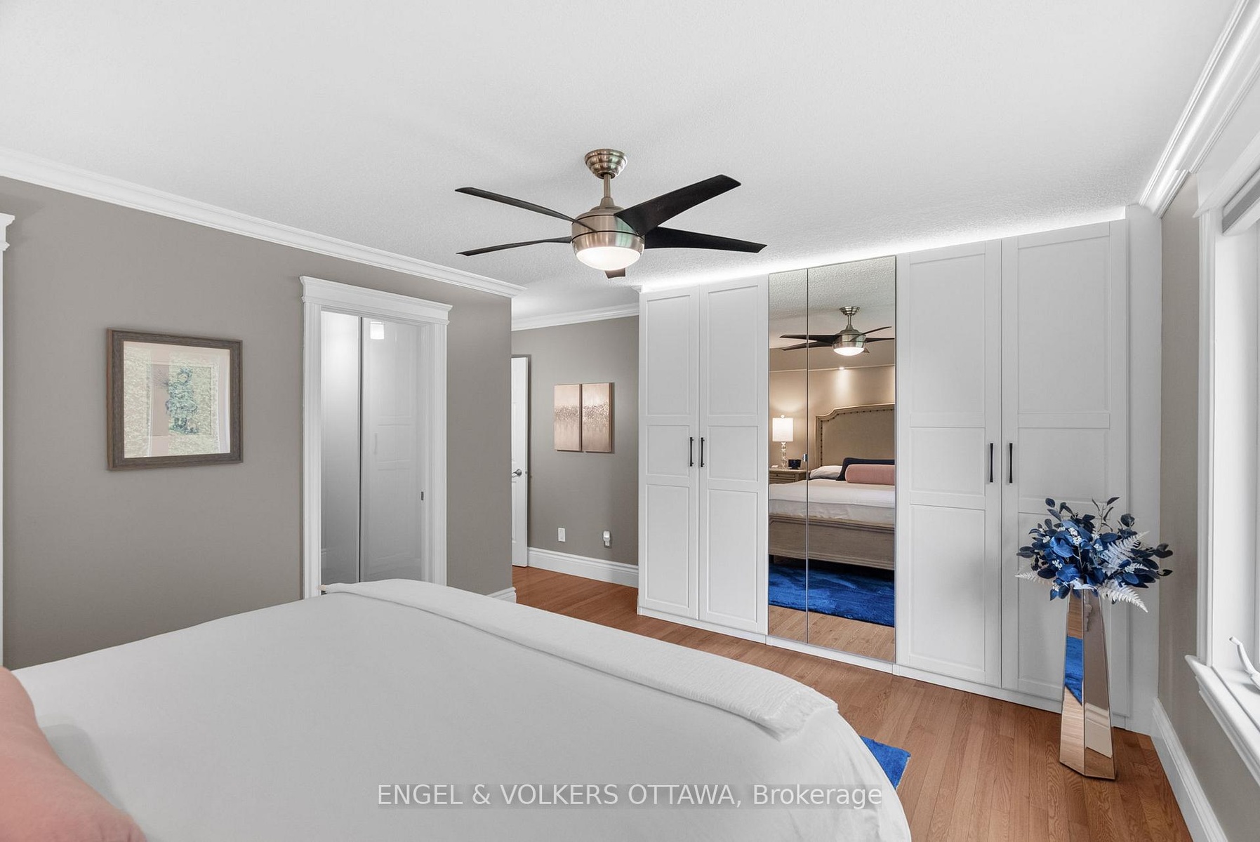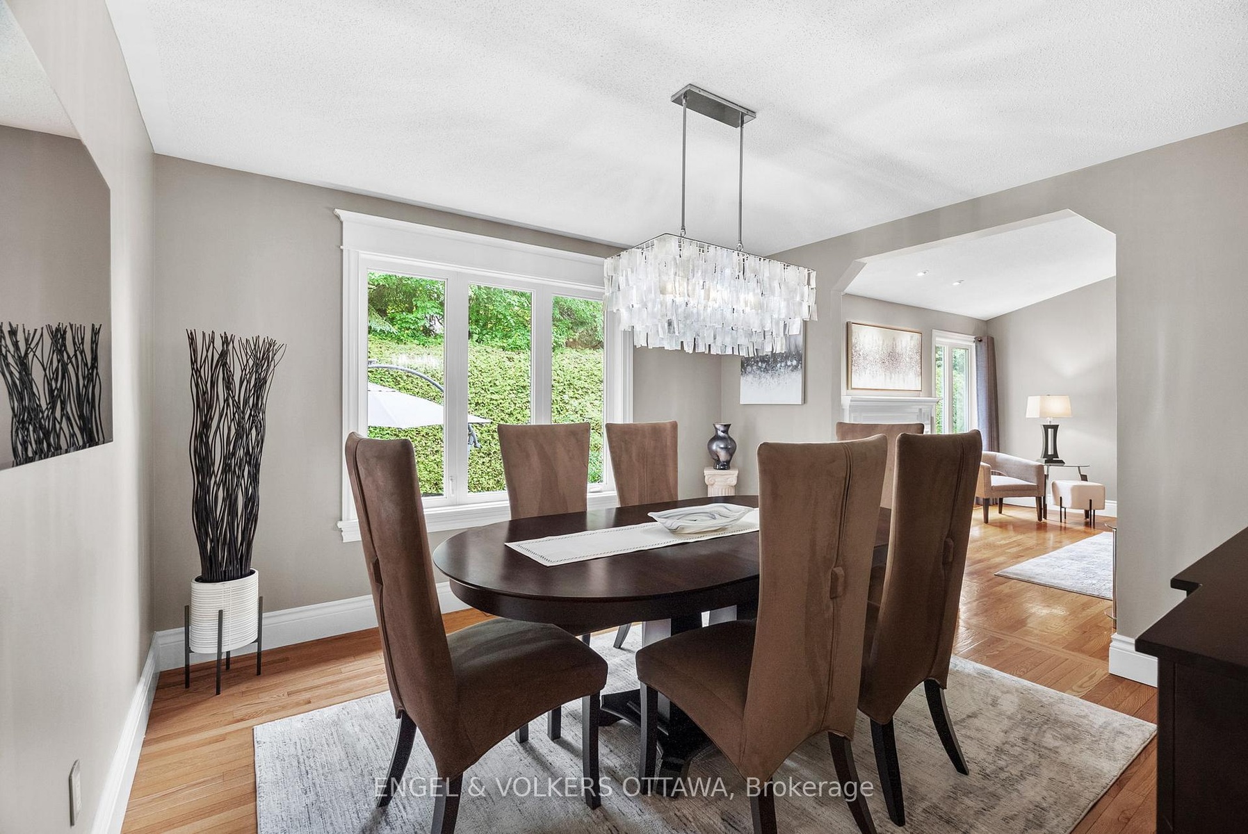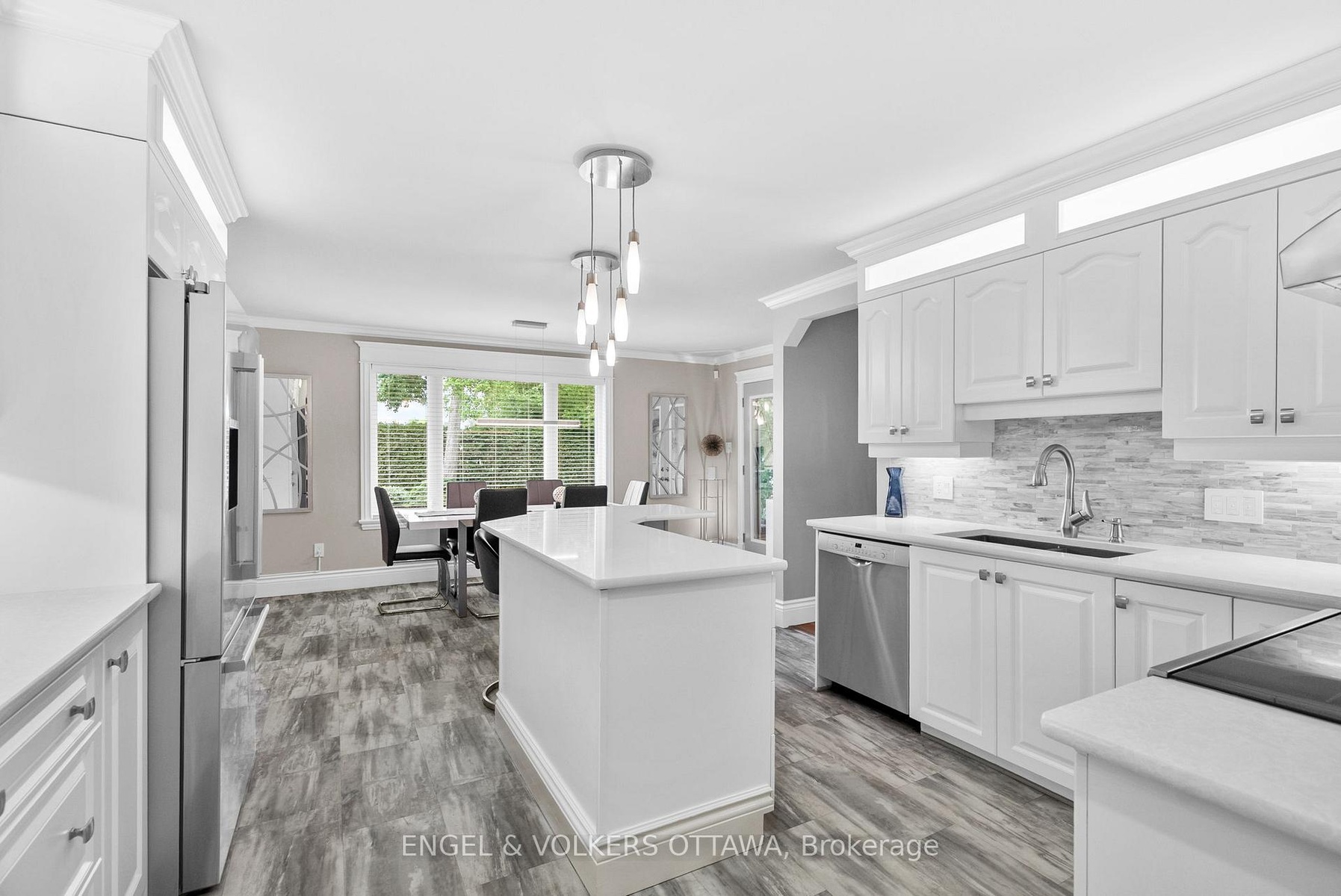 1591 Stephanie Anne Drive invites you to experience your very own private cinema - a spectacular two-level, soundproof home theatre designed for movie nights, sports, and next-level gaming, combined with luxurious living set on a beautifully landscaped corner lot. Surrounded by 20-foot hedges and set back from the road, this residence delivers privacy and distinction in one of Greely's most established communities. The main floor opens with a grand foyer boasting vaulted ceilings, ceramic tile, and hardwood floors flowing throughout. Anchored by a gas fireplace and soaring 13-foot ceilings, the living room exudes warmth and grandeur, while the formal dining room sets the stage for memorable gatherings. The designer kitchen features quartz counters, stainless steel appliances, and a large central island with pendant lighting. A bright adjoining eating area with oversized windows and French doors extends to a private backyard and two-level hardscape patios, perfect for evening relaxation. The primary suite offers a walk-in closet, custom wardrobe, and a luxurious 5-piece ensuite. A spacious secondary bedroom and beautifully finished full bath (all baths with quartz counters) complete the main level. A striking circular staircase leads to the lower level, where the theatre takes center stage with tiered seating and cinematic scale. Complementing this is an expansive recreation room, an additional bedroom (currently a gym), a home office, a sleek full bath, and a laundry room. Crafted with enduring steel construction, the home blends elegance with strength. Outdoors, manicured landscaping and an underground irrigation system impress across the property, while an oversized two-car garage, a sweeping circular driveway for 21 vehicles, and a large custom storage shed offer unmatched convenience. Minutes from schools, parks, shops, and nature trails, this home delivers Greely's tranquility with modern luxury and unforgettable entertainment at home with family and friends.