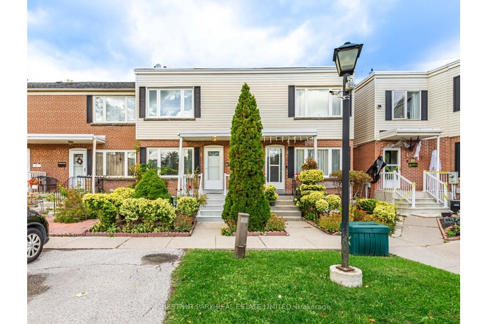 Walk up the steps, past the Summer Blooming Roses into this Spacious 2+1 bedroom Townhouse. Impeccably Cared Home, Drench in Sunlight From Generous Windows .The Open-Concept main floor features elegant hardwood floors throughout. Large principal rooms, perfect for both everyday living & entertaining. Enjoy a wonderful private backyard-Ideal for relaxing,gardening,playing and hosting gatherings.Two bright & airy bedrooms, w ample closets.Lower level offers a large recreation room, lots of storage, additional bedroom, washer, dryer and bathroom. Lcoated just steps from Kennedy Subway station and the new Eglinton Crosstown line. Phemenomal acces to Transit, shopping & all major amenities. A truly special find in Toronto!! POTL Monthly Fee: $244 covers: water, snow shovelling, landscaping and garbage. So MANY Improvements:2025: Deck, Shingles,Side Stairs,Porch,Primary Bdrm Window. 2023:Main Flr Potlights, Sliding Door. 2022 Basemnt Concrete Flr & Stand Up Shower, Stainless Steel Stove,Dryer.