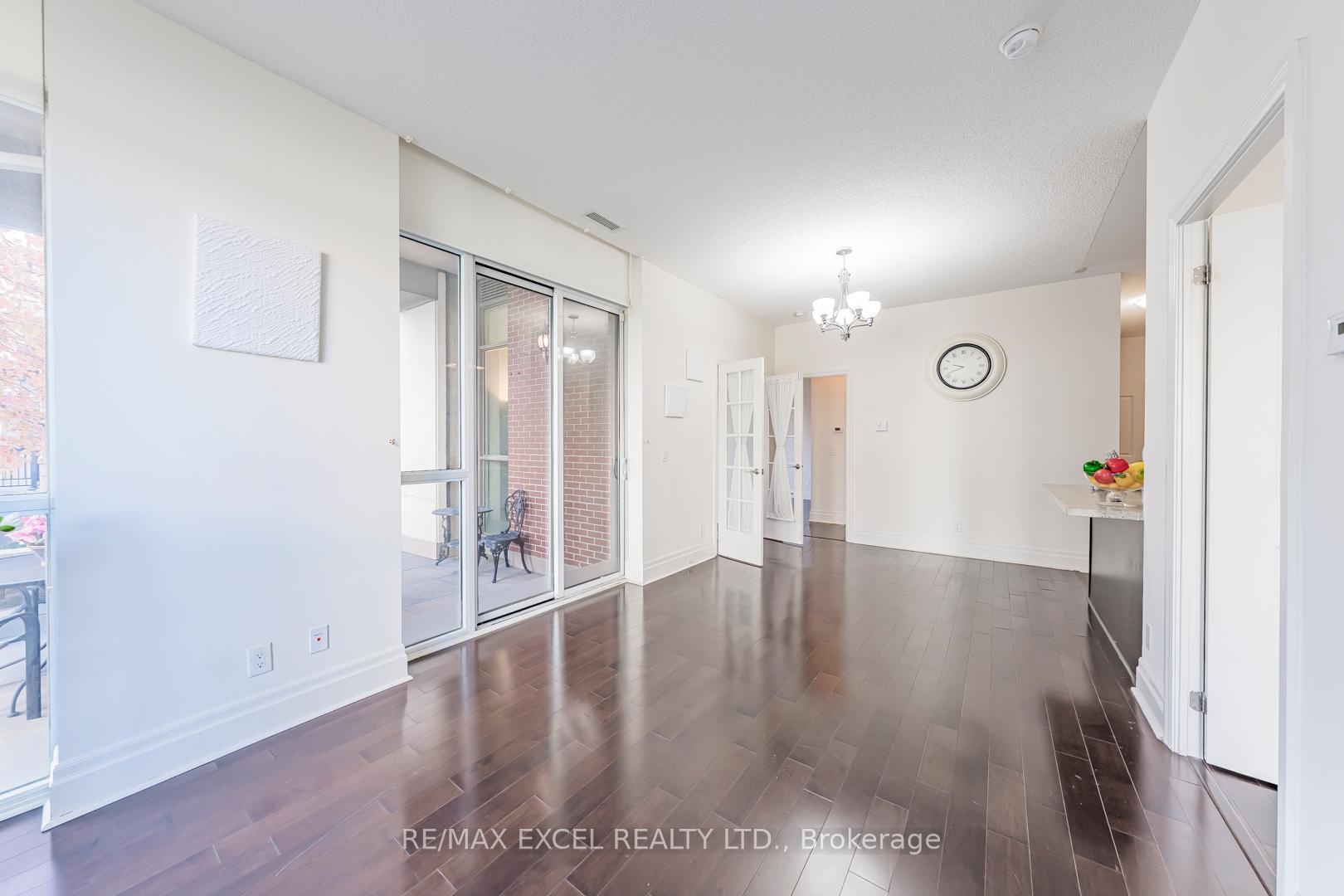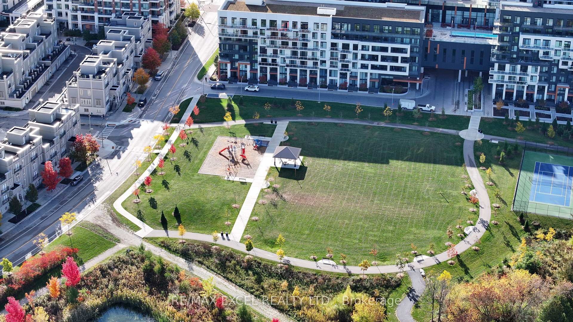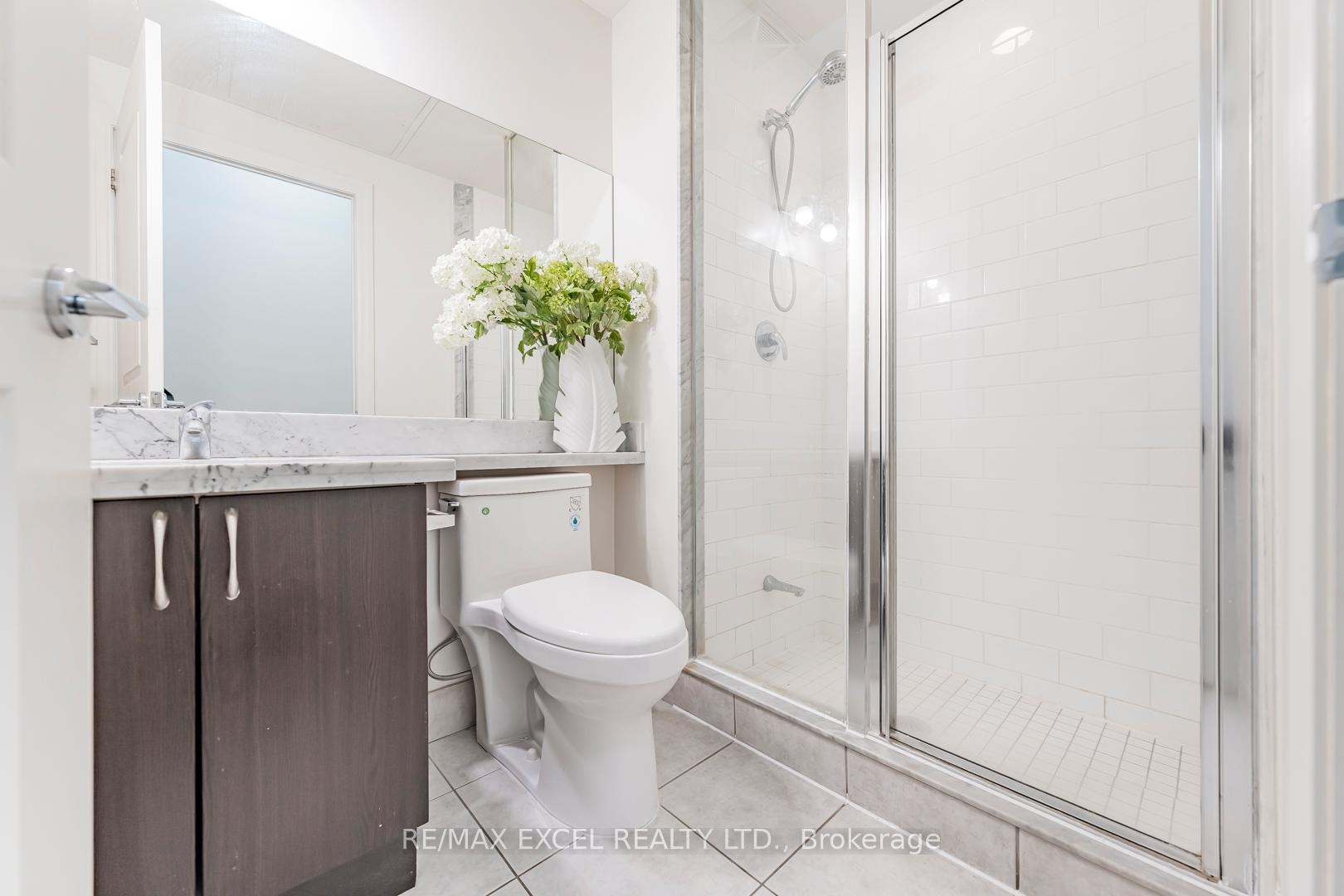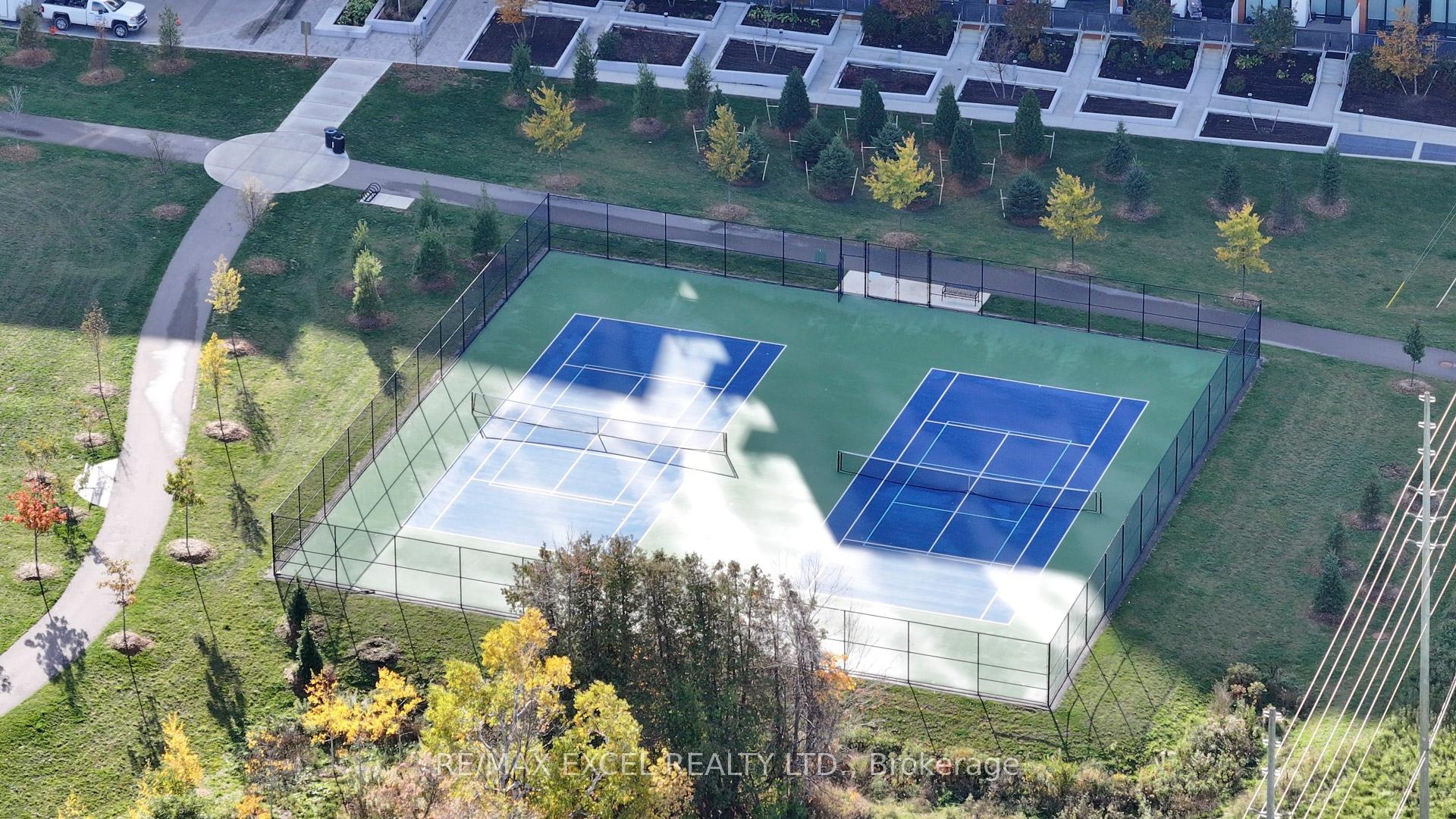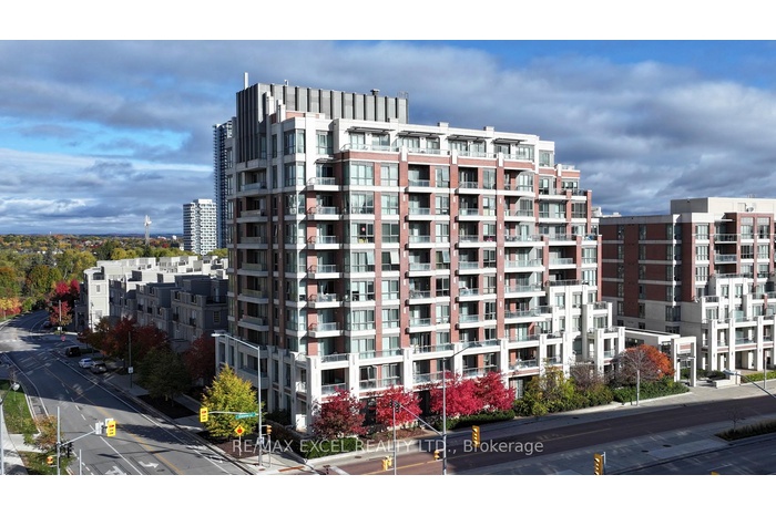 Bright & Spacious 1050 S.F. Corner Unit At Rouge Bijou By Remington. 2 Bed + Den (W/Window & French Doors Can Be 3rd Bdrm) High 10' Ceilings & Hardwood Flooring Throughout. Extended Kitchen Cabinets W/Quartz Countertop, Backsplash & Valance Lighting. Marble Vanity Top In All Baths. Primary Bdrm W/4Pcs En-Suite & W/I Closet. Large 280 S.F Covered Patio. Amenities: Concierge, Gym, Guest Suites, Party Room, Virtual Golf & More! **Markville Secondary School (2/739)**. S/S Appl (Fridge, Stove, Dishwasher, Range Hood). Washer & Dryer. All Existing Window Coverings. 1 Parking Spot & 1 Locker Included. Steps To Viva Bus Station, Downtown Markham Shopping & Restaurants. Close To Go Train, Hwy 404 & 407.