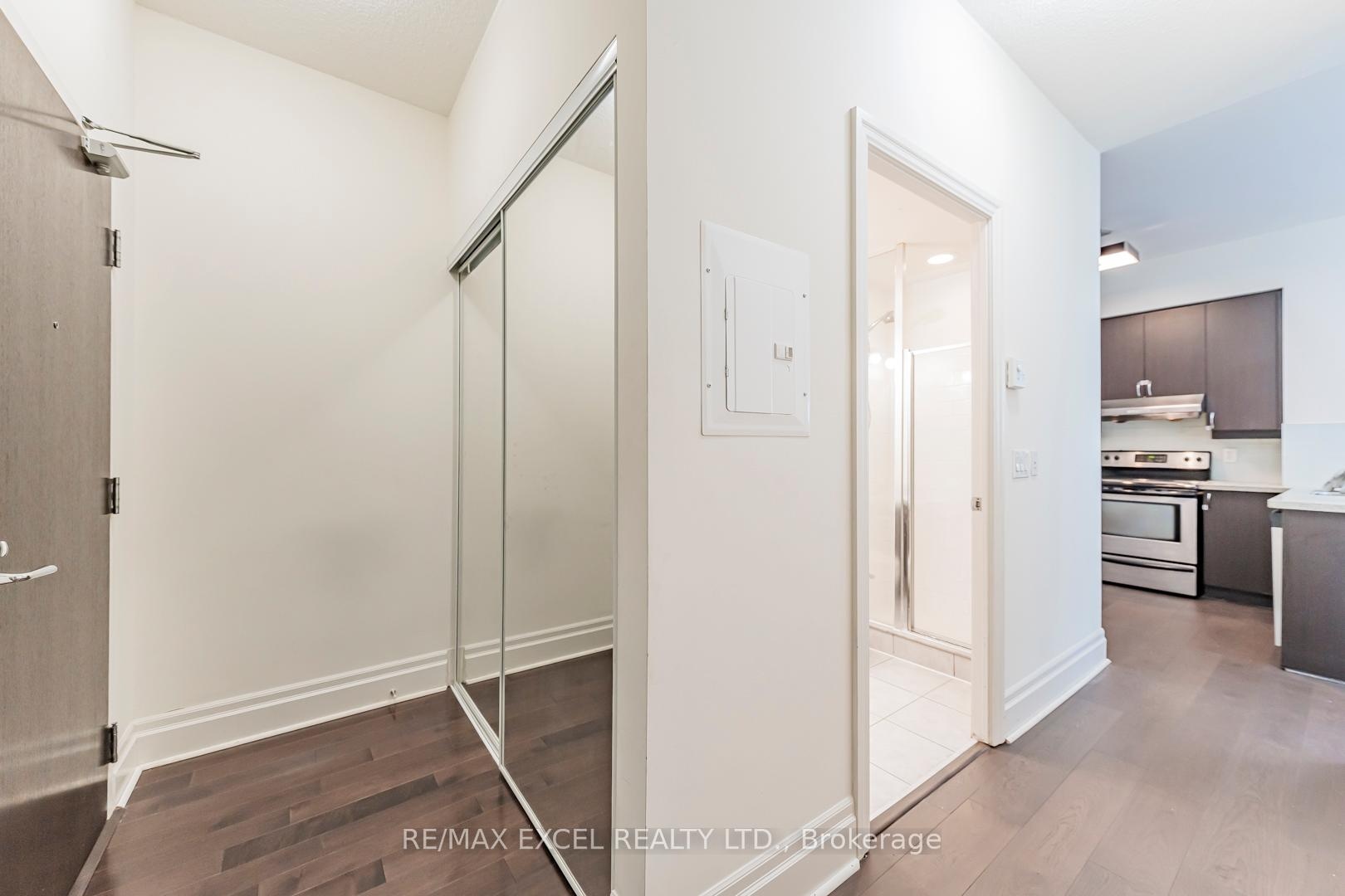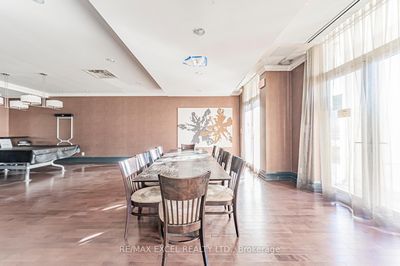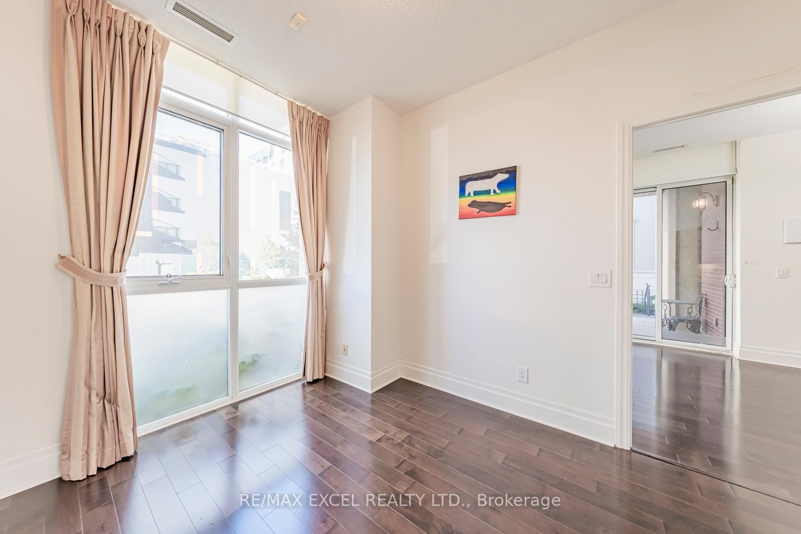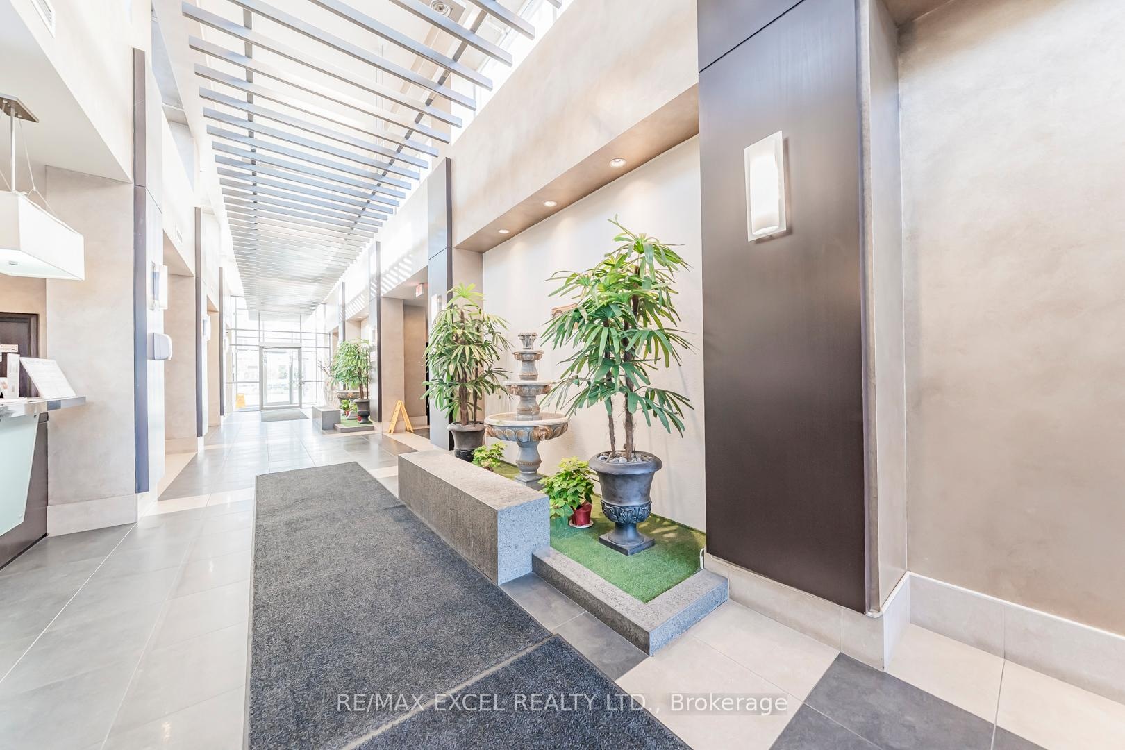 Bright & Spacious 1050 S.F. Corner Unit At Rouge Bijou By Remington. 2 Bed + Den (W/Window & French Doors Can Be 3rd Bdrm) High 10' Ceilings & Hardwood Flooring Throughout. Extended Kitchen Cabinets W/Quartz Countertop, Backsplash & Valance Lighting. Marble Vanity Top In All Baths. Primary Bdrm W/4Pcs En-Suite & W/I Closet. Large 280 S.F Covered Patio. Amenities: Concierge, Gym, Guest Suites, Party Room, Virtual Golf & More! **Markville Secondary School (2/739)**. S/S Appl (Fridge, Stove, Dishwasher, Range Hood). Washer & Dryer. All Existing Window Coverings. 1 Parking Spot & 1 Locker Included. Steps To Viva Bus Station, Downtown Markham Shopping & Restaurants. Close To Go Train, Hwy 404 & 407.