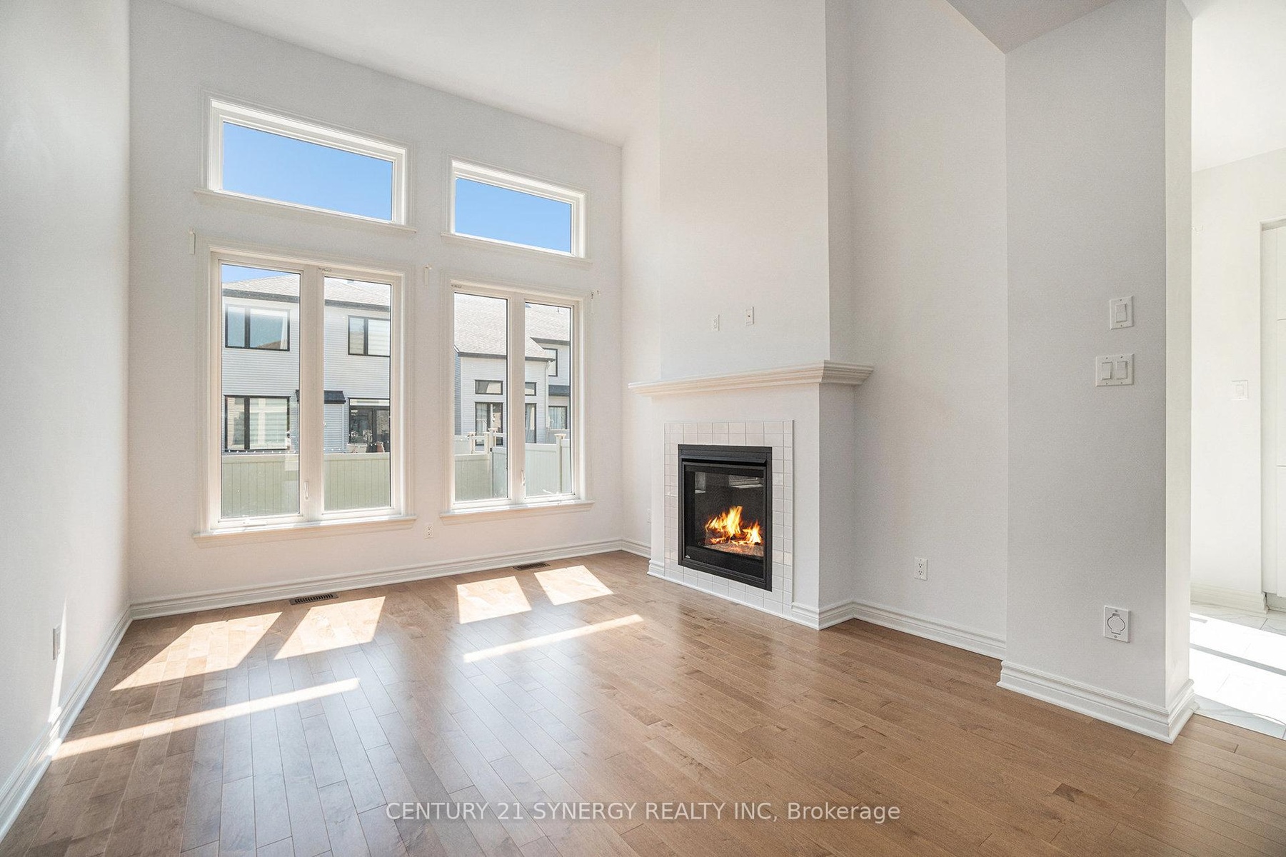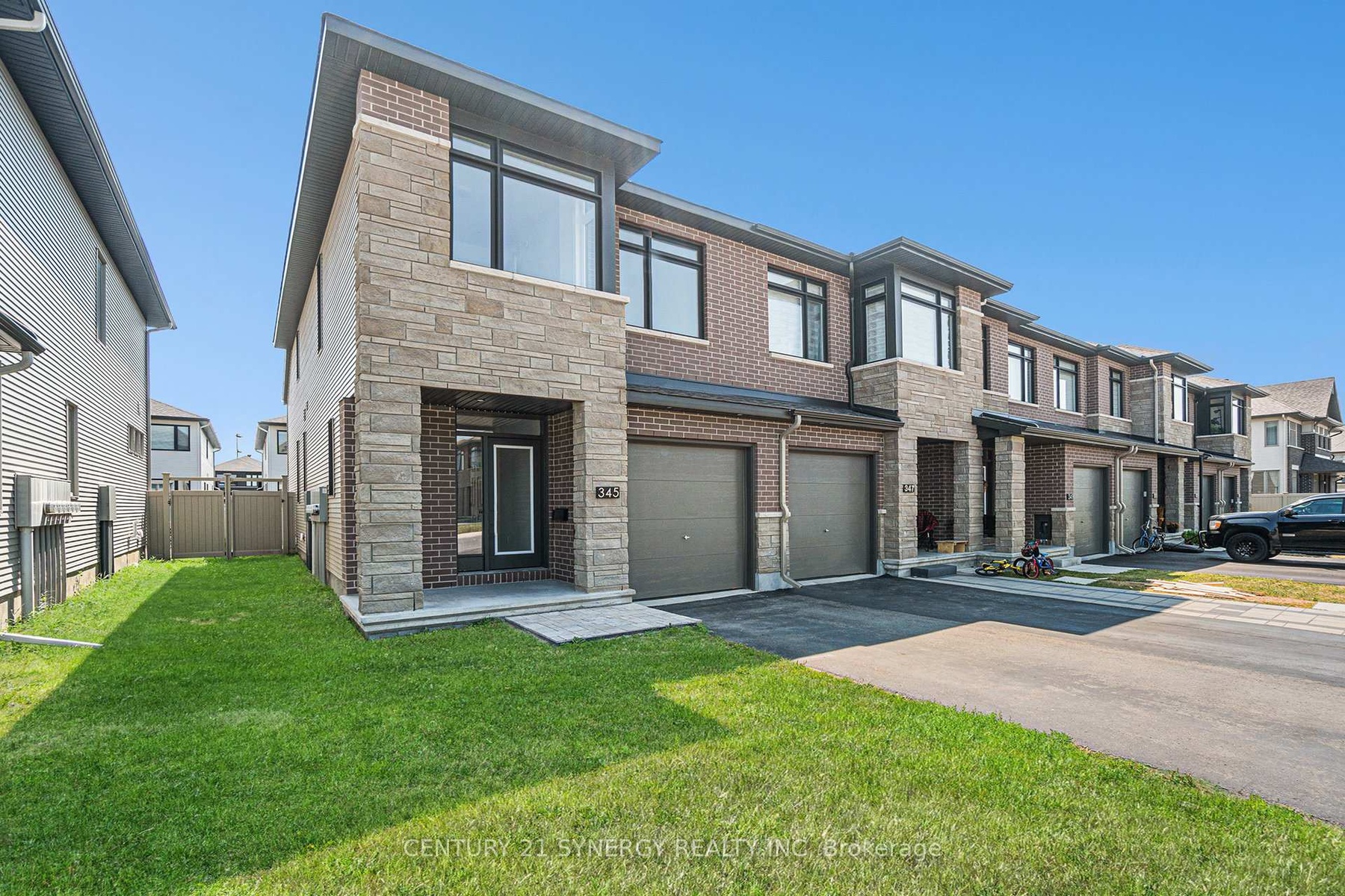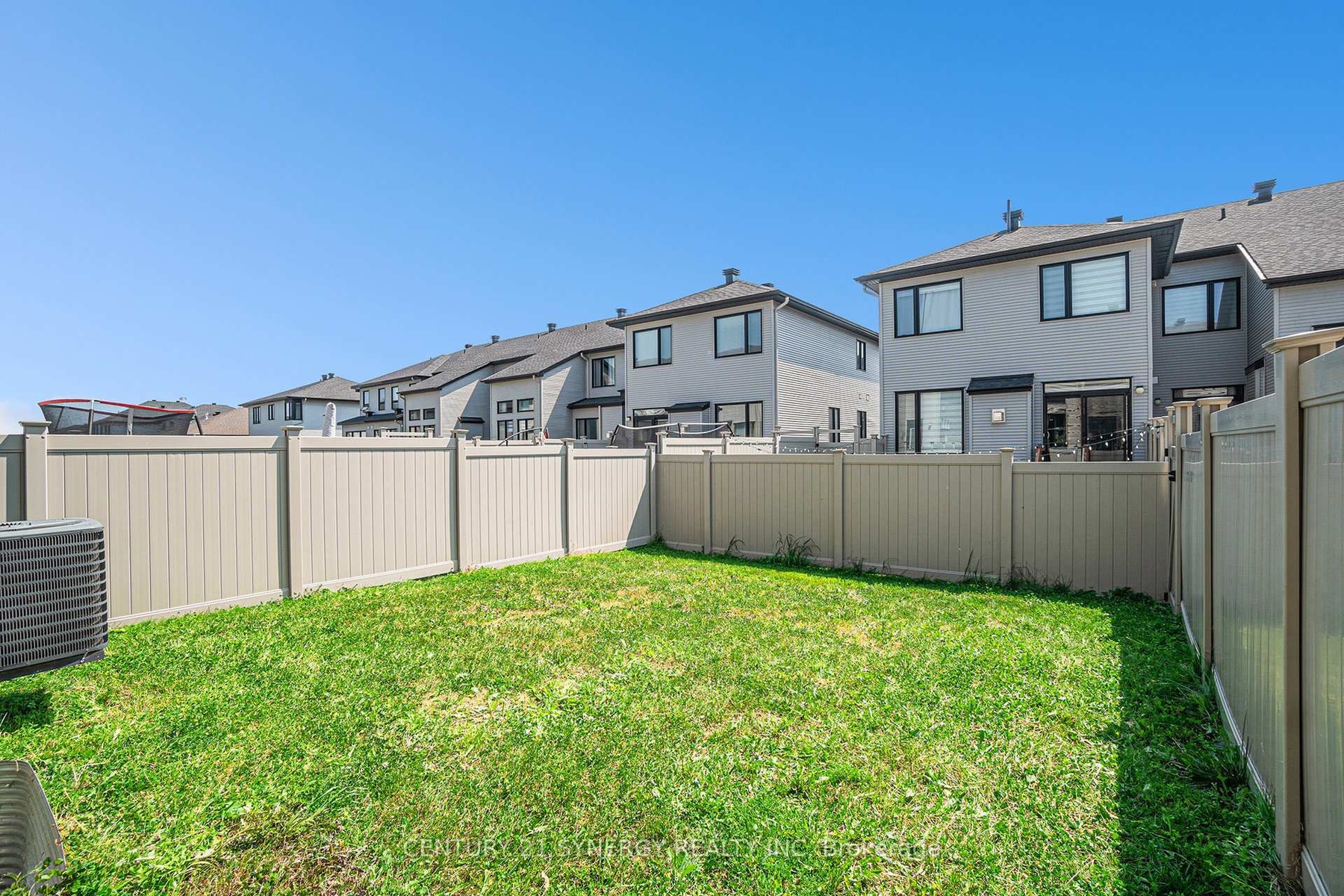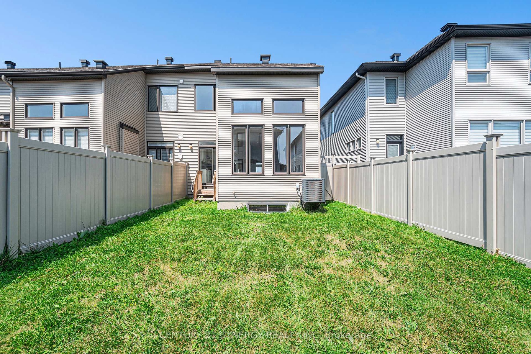Welcome home to this spectacular Richcraft Executive End-Unit Townhome, where luxury meets comfort in every detail. From the moment you arrive, the curb appeal sets the tone for the elegance inside. The main floor boasts a spacious foyer, clad in large tiles with an oversized closet, a stylish powder room, and inside access to the garage. Step into the bright open-concept living and dining space, flooded with light from the extra windows this end-unit has, highlighted by soaring two-storey windows and an impressive 18-foot ceiling. Warm hardwood floors lead you to a cozy gas fireplace with a custom tiled surround, while the upgraded chefs kitchen steals the spotlight with full-height custom cabinetry, extended pantry, quartz countertops, sleek tile backsplash, gas stove with griddle, stainless steel appliances, and an oversized island with seating for four. Upstairs, the primary suite is a private retreat featuring a large walk-in closet and spa-inspired ensuite with quartz vanity, glass shower, and soaker tub. Two additional bedrooms, a full bathroom, and a convenient laundry room complete the second level. The fully finished lower level offers a large versatile family room, perfect for a home gym, playroom, or rec space, with plenty of storage. Outside, enjoy the fully fenced south-facing backyard with extra space and shade provided by this premium end-unit location with no front neighbours. Recent upgrades include LED lighting, dimmer switches, and interlock. With a beautiful park just steps away, new schools around the corner, and a home that feels brand new, this one won't last long, book a showing today!