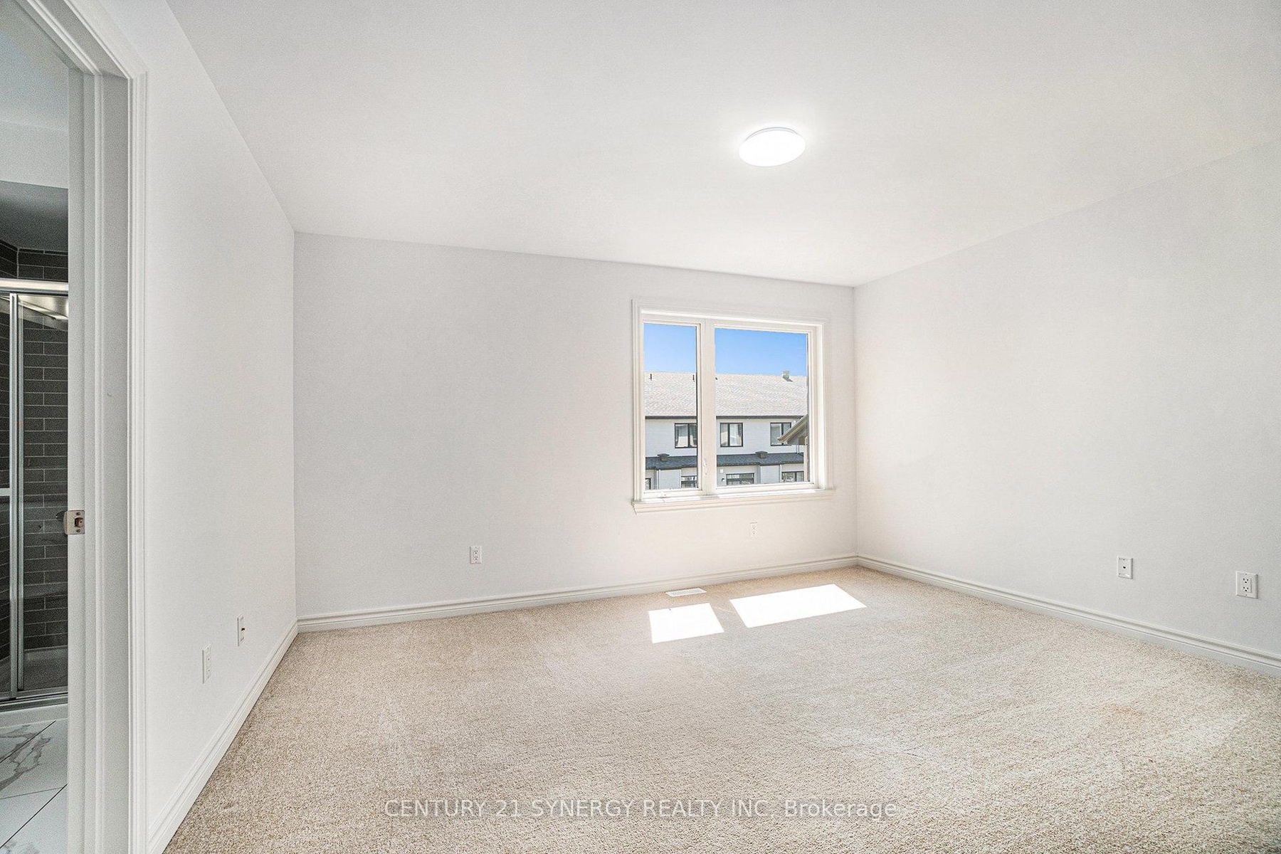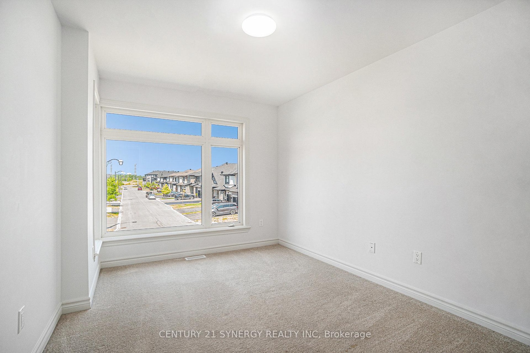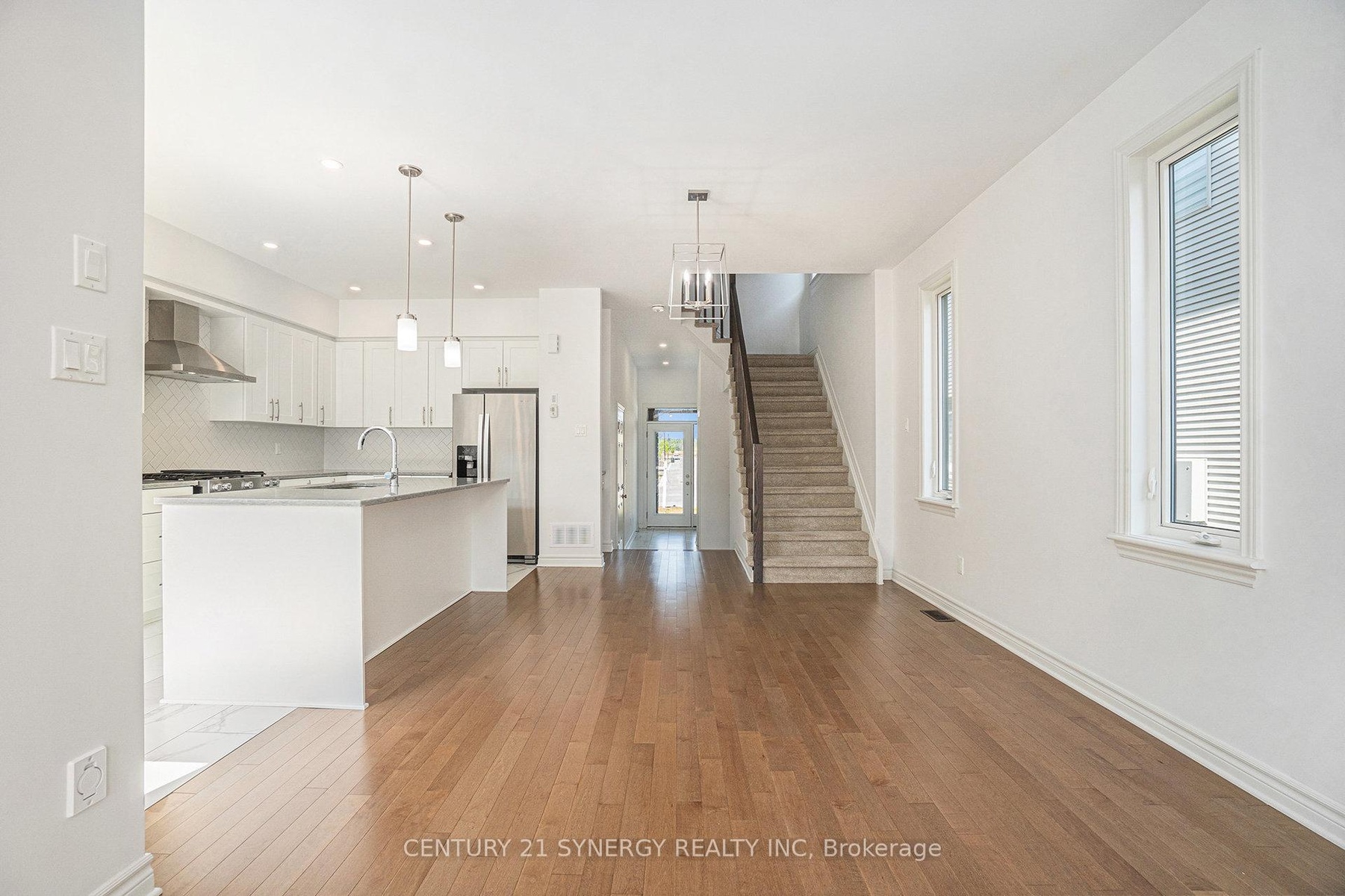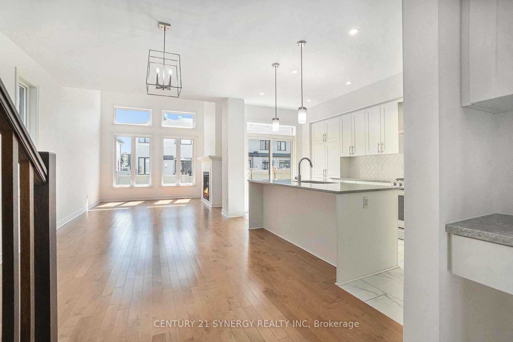 Welcome home to this spectacular Richcraft Executive End-Unit Townhome, where luxury meets comfort in every detail. From the moment you arrive, the curb appeal sets the tone for the elegance inside. The main floor boasts a spacious foyer, clad in large tiles with an oversized closet, a stylish powder room, and inside access to the garage. Step into the bright open-concept living and dining space, flooded with light from the extra windows this end-unit has, highlighted by soaring two-storey windows and an impressive 18-foot ceiling. Warm hardwood floors lead you to a cozy gas fireplace with a custom tiled surround, while the upgraded chefs kitchen steals the spotlight with full-height custom cabinetry, extended pantry, quartz countertops, sleek tile backsplash, gas stove with griddle, stainless steel appliances, and an oversized island with seating for four. Upstairs, the primary suite is a private retreat featuring a large walk-in closet and spa-inspired ensuite with quartz vanity, glass shower, and soaker tub. Two additional bedrooms, a full bathroom, and a convenient laundry room complete the second level. The fully finished lower level offers a large versatile family room, perfect for a home gym, playroom, or rec space, with plenty of storage. Outside, enjoy the fully fenced south-facing backyard with extra space and shade provided by this premium end-unit location with no front neighbours. Recent upgrades include LED lighting, dimmer switches, and interlock. With a beautiful park just steps away, new schools around the corner, and a home that feels brand new, this one won't last long, book a showing today!