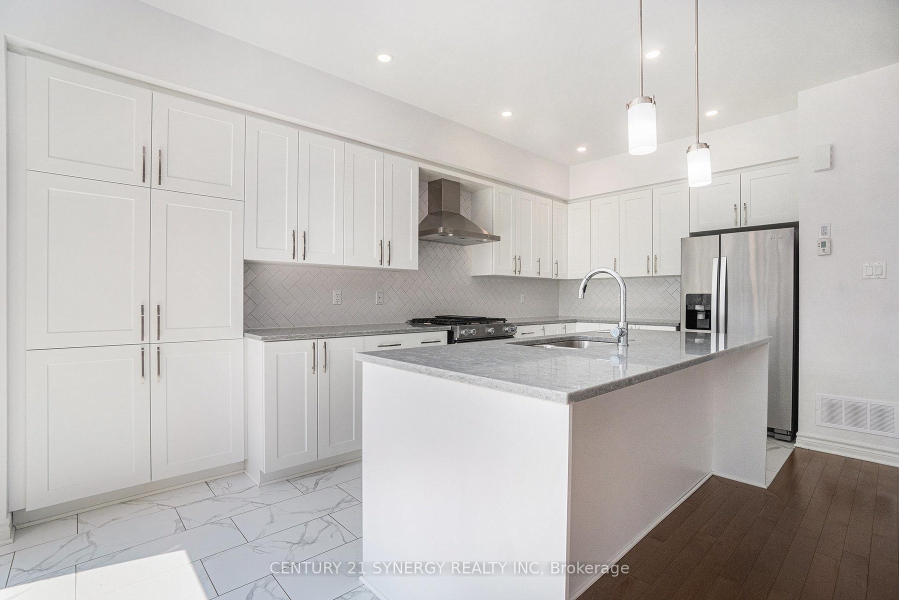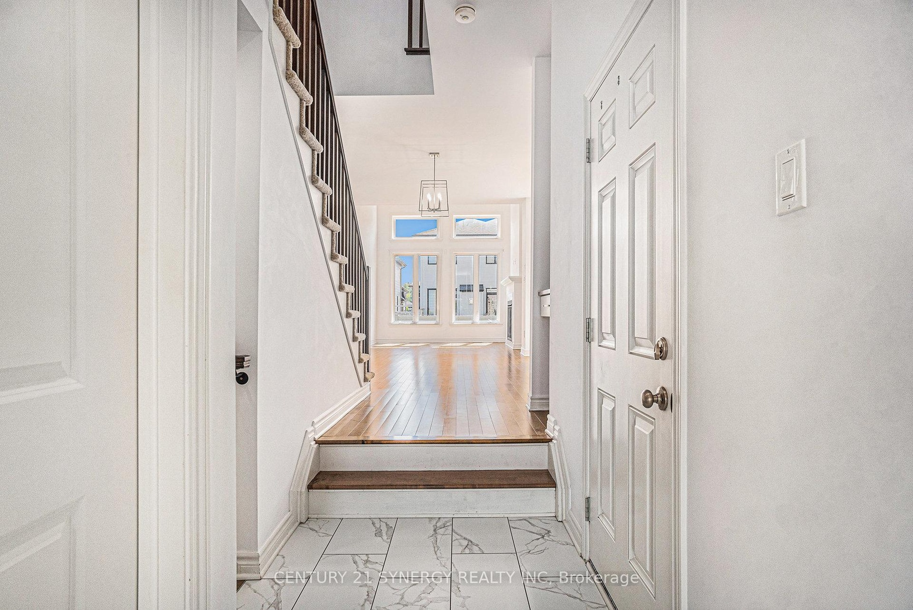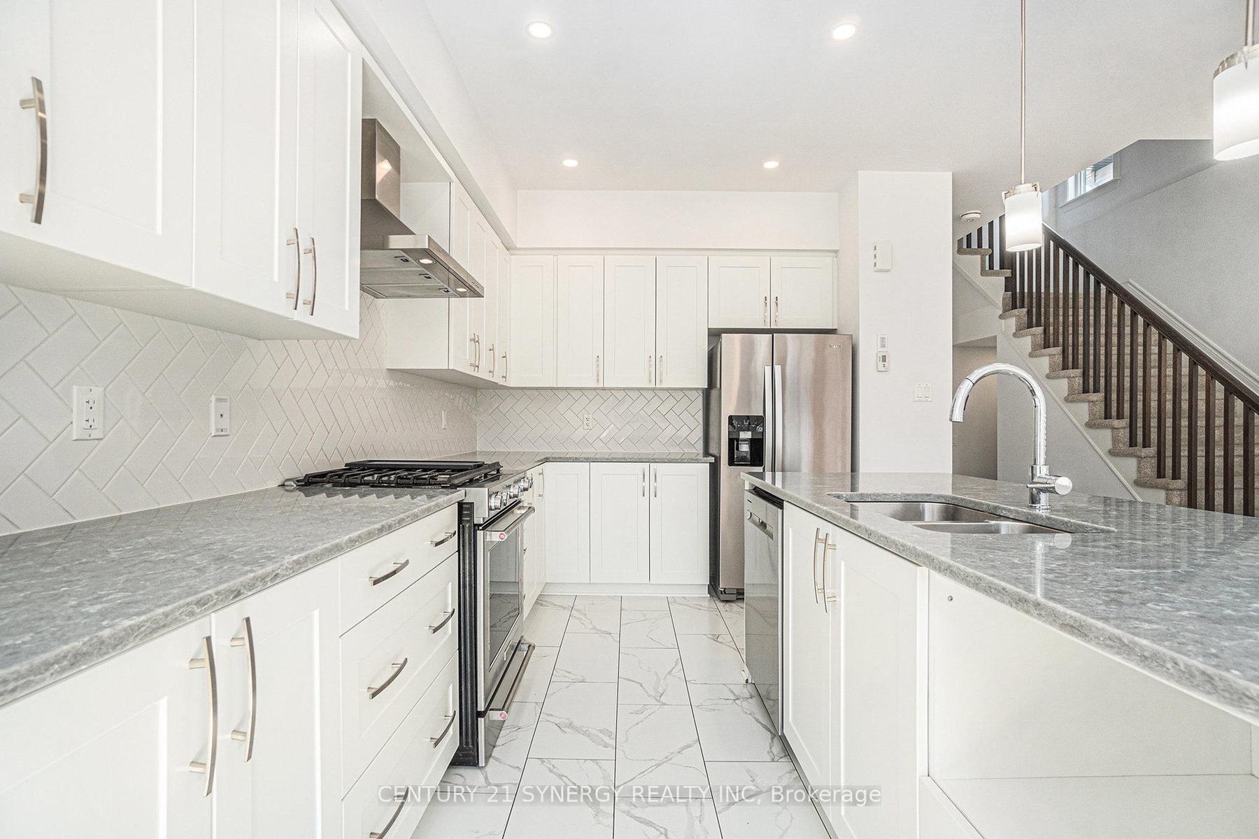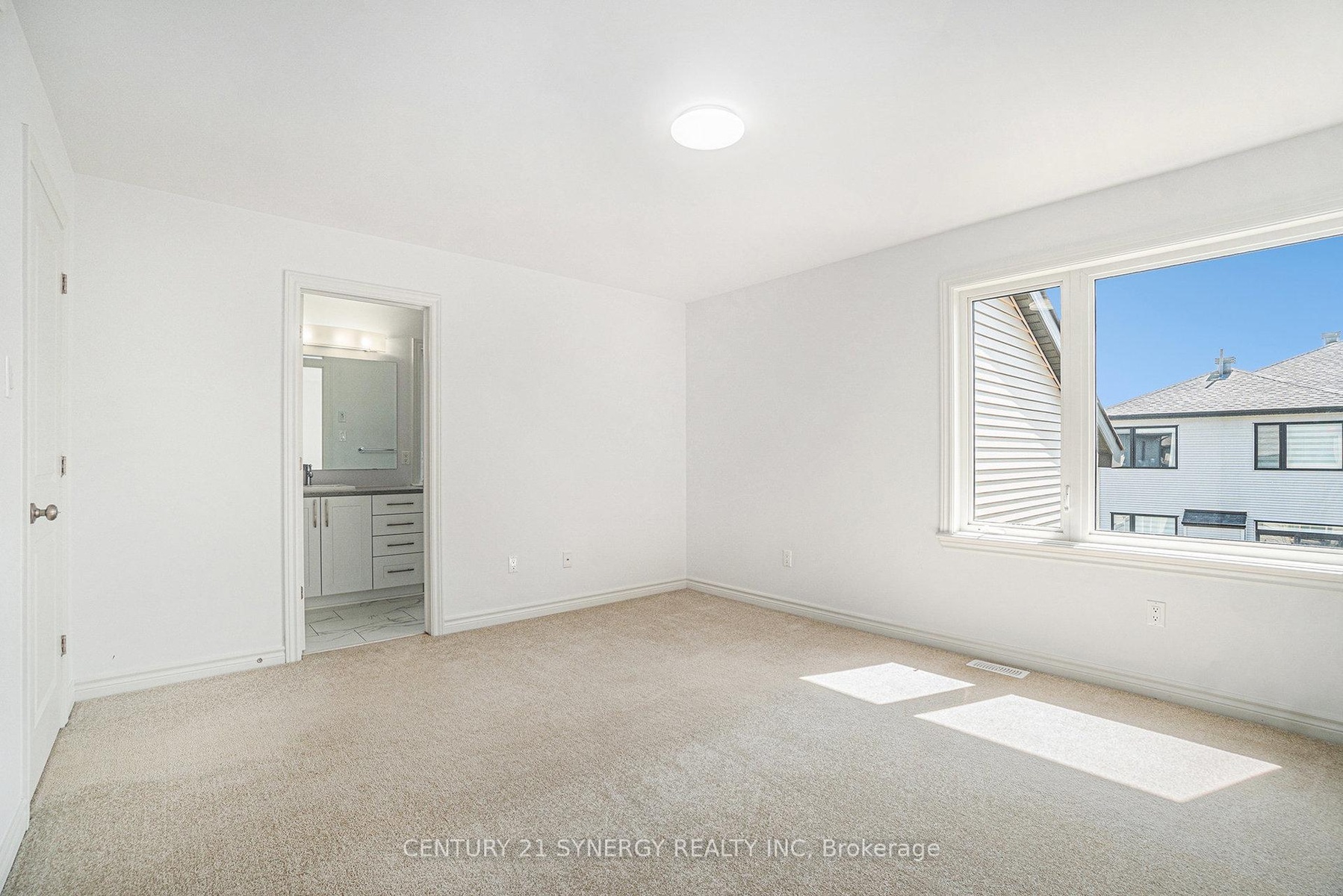 Welcome home to this spectacular Richcraft Executive End-Unit Townhome, where luxury meets comfort in every detail. From the moment you arrive, the curb appeal sets the tone for the elegance inside. The main floor boasts a spacious foyer, clad in large tiles with an oversized closet, a stylish powder room, and inside access to the garage. Step into the bright open-concept living and dining space, flooded with light from the extra windows this end-unit has, highlighted by soaring two-storey windows and an impressive 18-foot ceiling. Warm hardwood floors lead you to a cozy gas fireplace with a custom tiled surround, while the upgraded chefs kitchen steals the spotlight with full-height custom cabinetry, extended pantry, quartz countertops, sleek tile backsplash, gas stove with griddle, stainless steel appliances, and an oversized island with seating for four. Upstairs, the primary suite is a private retreat featuring a large walk-in closet and spa-inspired ensuite with quartz vanity, glass shower, and soaker tub. Two additional bedrooms, a full bathroom, and a convenient laundry room complete the second level. The fully finished lower level offers a large versatile family room, perfect for a home gym, playroom, or rec space, with plenty of storage. Outside, enjoy the fully fenced south-facing backyard with extra space and shade provided by this premium end-unit location with no front neighbours. Recent upgrades include LED lighting, dimmer switches, and interlock. With a beautiful park just steps away, new schools around the corner, and a home that feels brand new, this one won't last long, book a showing today!