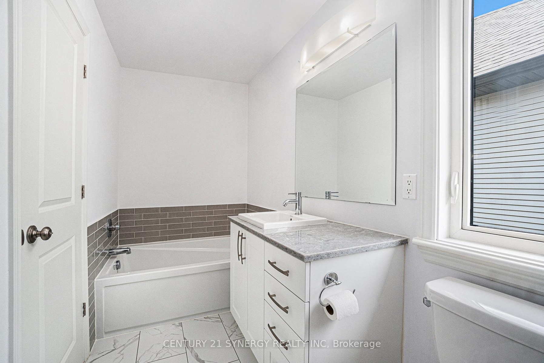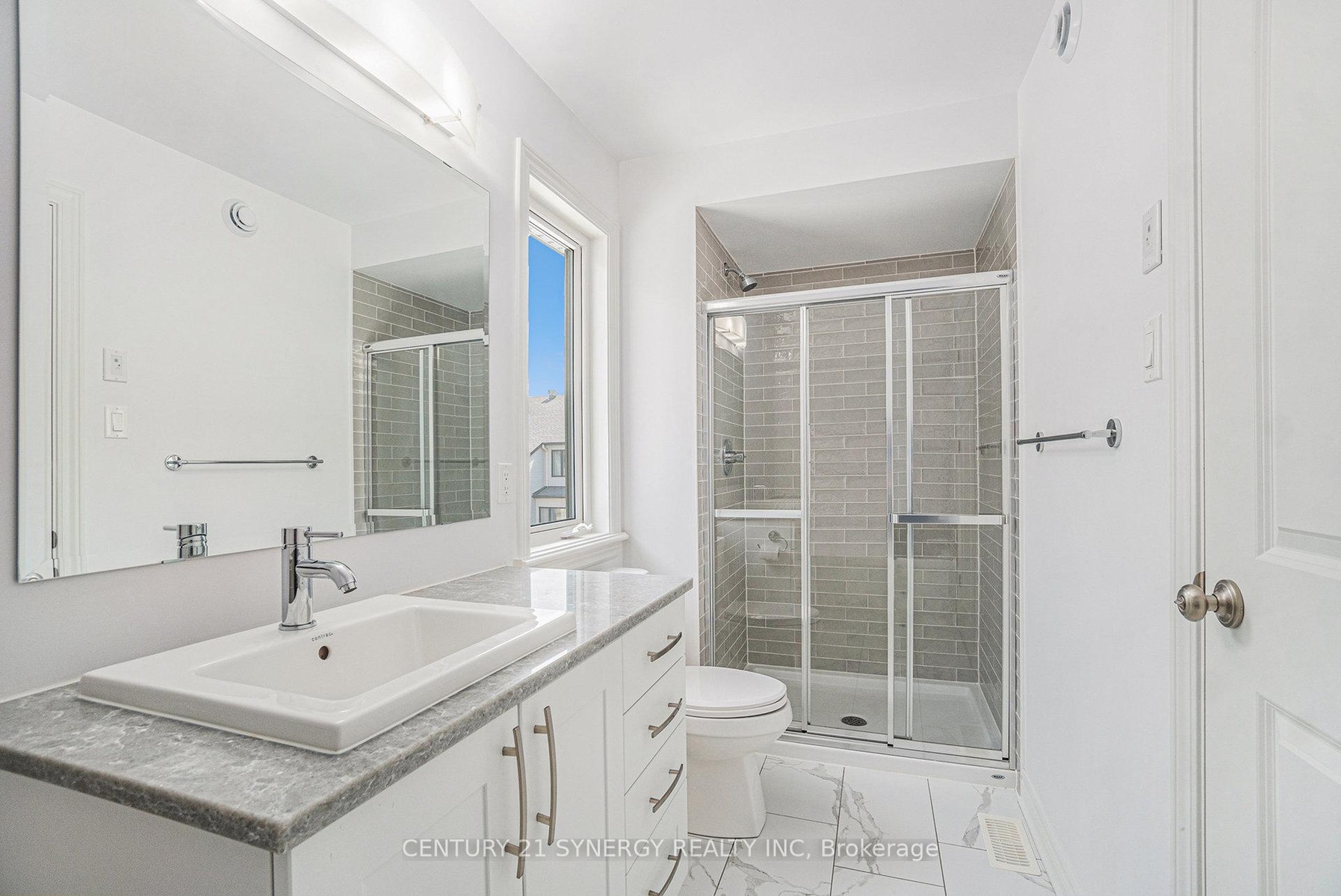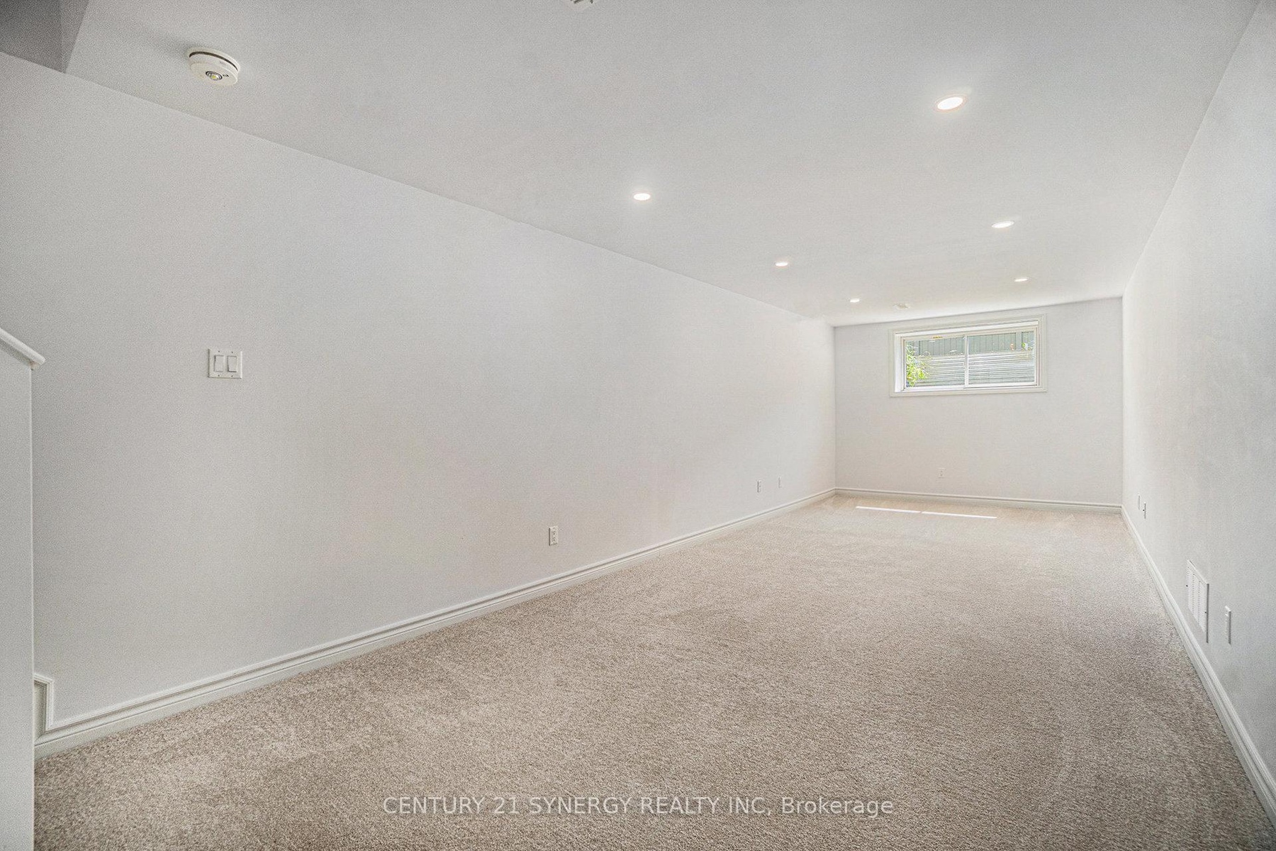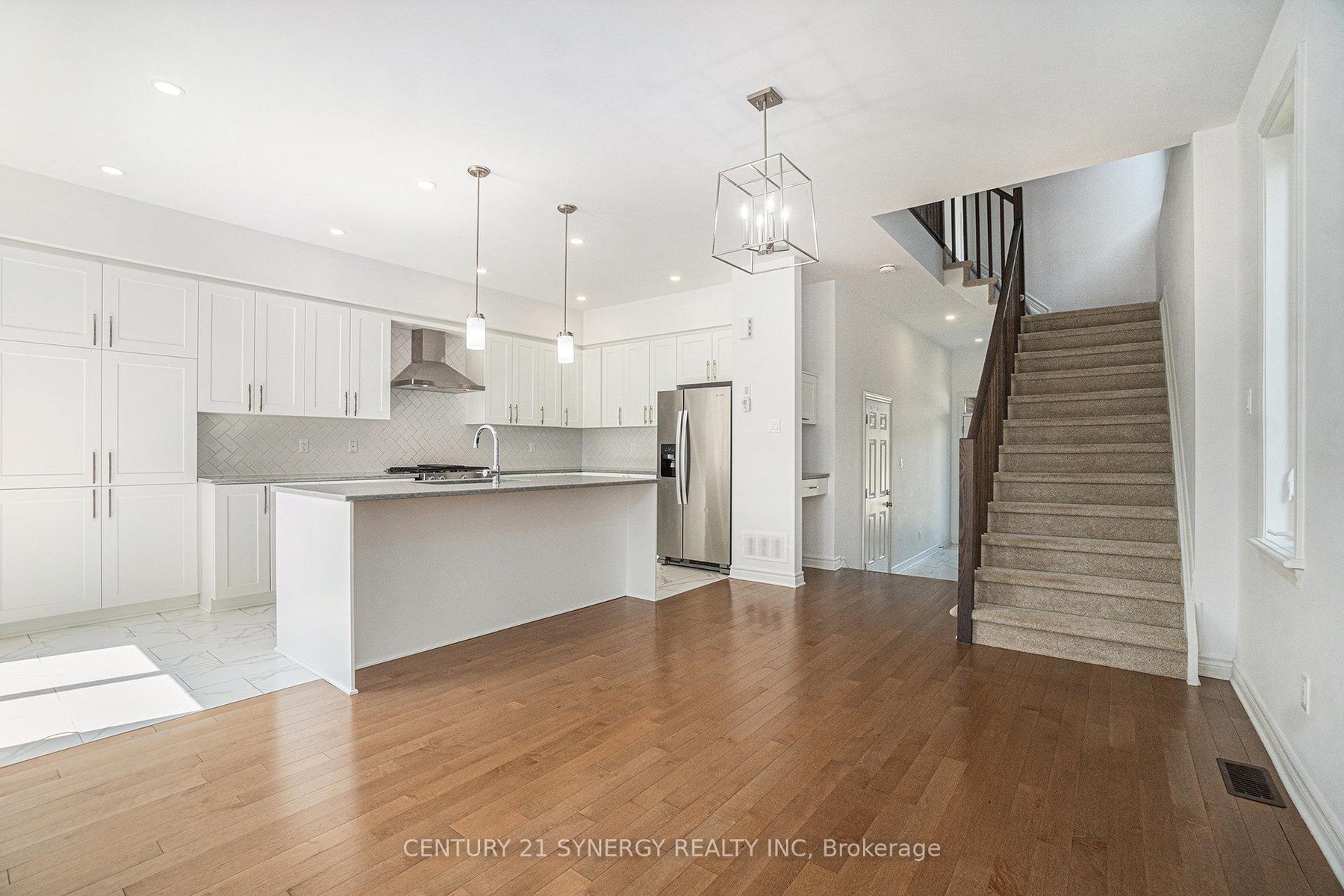 Welcome home to this spectacular Richcraft Executive End-Unit Townhome, where luxury meets comfort in every detail. From the moment you arrive, the curb appeal sets the tone for the elegance inside. The main floor boasts a spacious foyer, clad in large tiles with an oversized closet, a stylish powder room, and inside access to the garage. Step into the bright open-concept living and dining space, flooded with light from the extra windows this end-unit has, highlighted by soaring two-storey windows and an impressive 18-foot ceiling. Warm hardwood floors lead you to a cozy gas fireplace with a custom tiled surround, while the upgraded chefs kitchen steals the spotlight with full-height custom cabinetry, extended pantry, quartz countertops, sleek tile backsplash, gas stove with griddle, stainless steel appliances, and an oversized island with seating for four. Upstairs, the primary suite is a private retreat featuring a large walk-in closet and spa-inspired ensuite with quartz vanity, glass shower, and soaker tub. Two additional bedrooms, a full bathroom, and a convenient laundry room complete the second level. The fully finished lower level offers a large versatile family room, perfect for a home gym, playroom, or rec space, with plenty of storage. Outside, enjoy the fully fenced south-facing backyard with extra space and shade provided by this premium end-unit location with no front neighbours. Recent upgrades include LED lighting, dimmer switches, and interlock. With a beautiful park just steps away, new schools around the corner, and a home that feels brand new, this one won't last long, book a showing today!