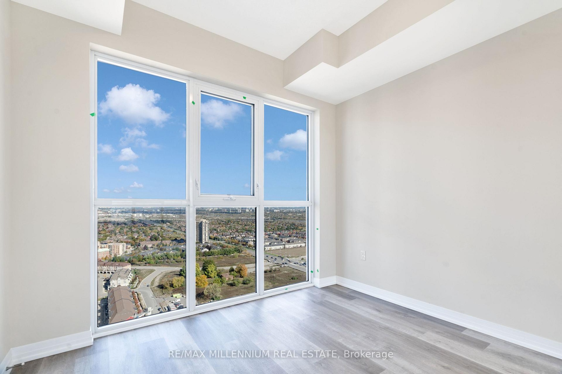 Gemma Condos at Pinnacle Uptown, a brand-new development at Hurontario and Eglinton. This never-lived-in 1-bedroom plus den, 1-bathroom suite features a functional open-concept layout with 9-foot ceilings, floor-to-ceiling windows, and a private balcony. The kitchen is equipped with stainless steel appliances, quartz countertops, and modern cabinetry. The spacious bedroom offers ample closet space, and the den provides an ideal setup for a home office or guest area. Additional features include ensuite laundry, one parking space, and one locker. Conveniently located near major highways (401, 403, 407), Square One, public transit, parks, and the upcoming Hurontario LRT. A great opportunity to lease a contemporary unit in a vibrant and well-connected community.