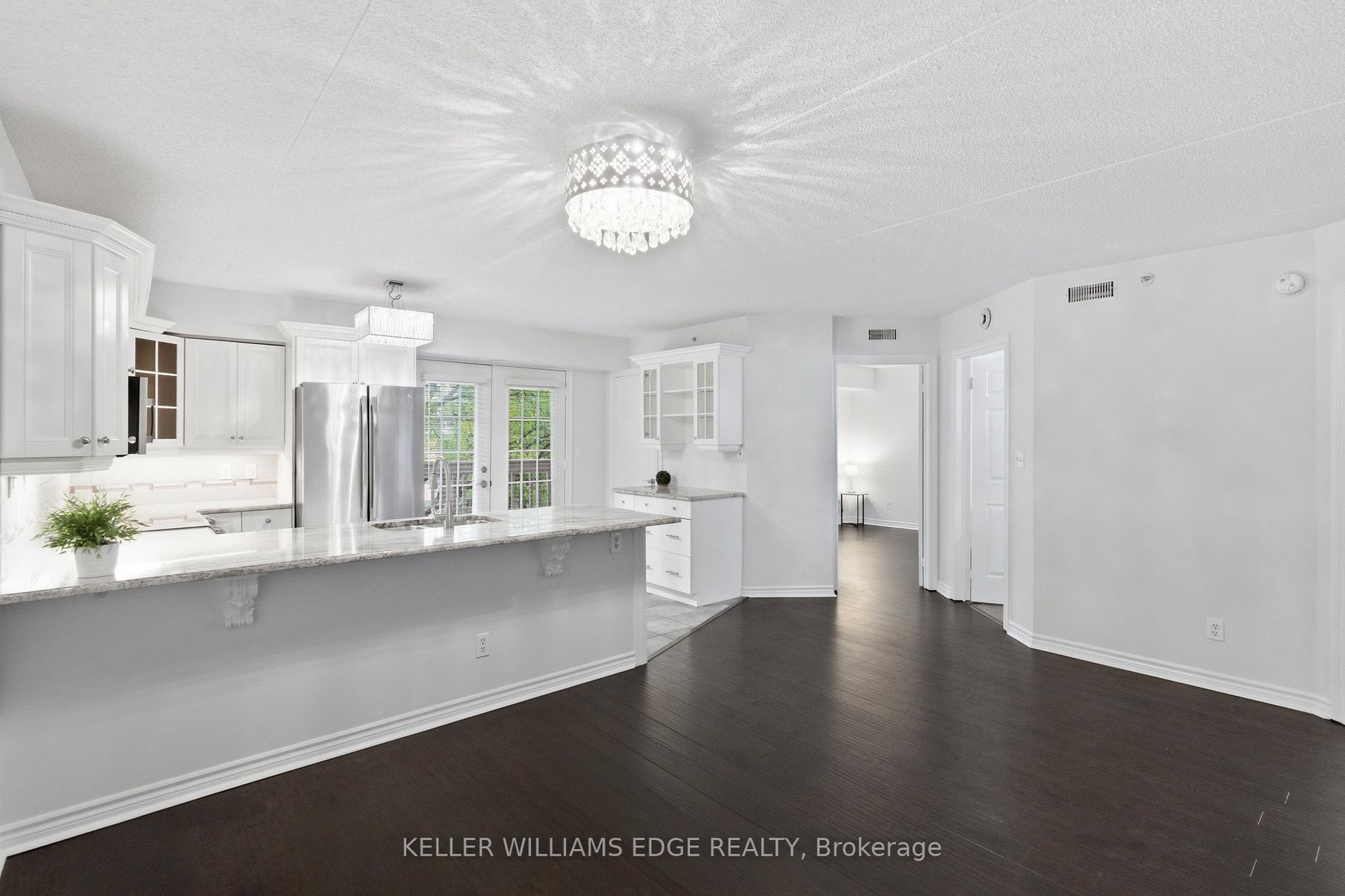 This corner unit offers over 1000 square feet of updated living space! Located in the Tansley Gardens community of low rise condos, 213-4013 Kilmer could be just what you've been looking for. Take the elevator up to the second floor (or the exterior stairs, your choice!) and find this corner unit at the end of the hall. Upon entry, you'll find a proper foyer to welcome you, with a double wide coat closet and room for a console table. The living and dining rooms are open concept to the kitchen - featuring hardwood flooring and updated light fixtures. The kitchen is a great size for a condo unit, offering a large breakfast bar that easily seats 4. This updated kitchen features modern stainless steel appliances, granite countertops, and french doors out to the balcony. The primary suite features the same hardwood flooring in the bedroom, a large double closet, bay window with small window seat area, and ensuite 4-piece bathroom with large vanity, built in linen storage, and a tub/shower combo. The second bedroom also offers a good size closet and consistent hardwood flooring. The the second bathroom, with stand-up corner shower, is just outside the door. In-suite laundry is an added bonus, with a laundry closet just off the kitchen. You'll be impressed with the quality of finishes and room sizes here! The location itself is highly convenient, with amenities at Walkers and Upper Middle just moments away and plenty of green space at nearby Tansley Park. One underground parking space and locker are included, and a second vehicle can be parked outside.