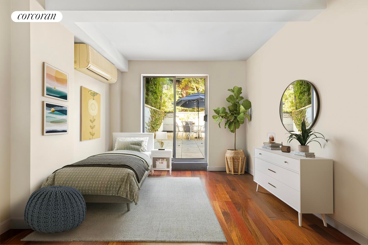 Welcome to 335 Warren Street, 102, a unique condo located on the vibrant Boerum Hill/Cobble Hill border. This distinctive duplex is big enough to have two bedrooms and your own expansive detached home office. It also offers 1,200 square feet of exceptional outdoor space, where you can hear the tranquil sound of birds all day long.