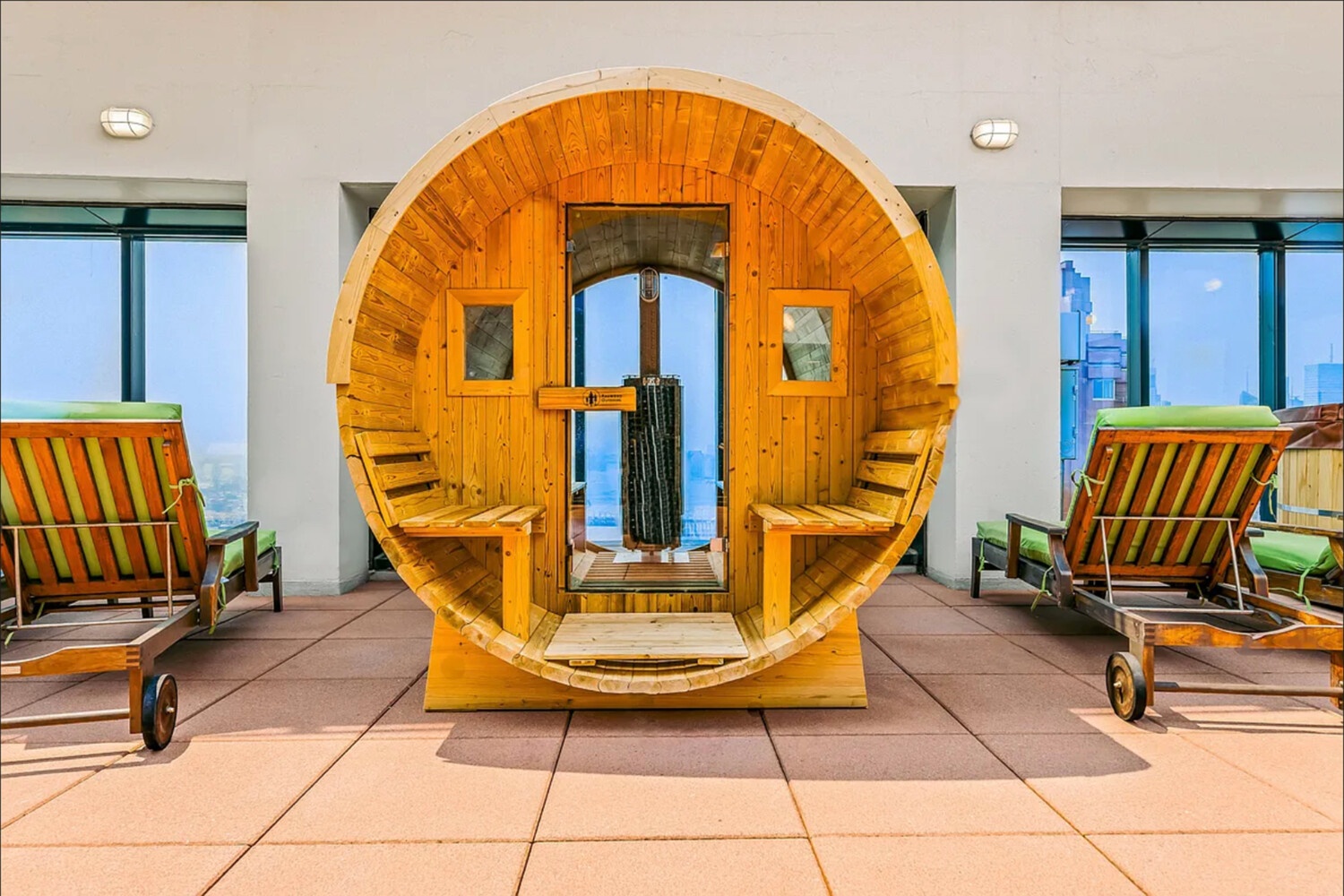 Located along the famed streets of Upper East Side, 525 East 72nd Street is the epitome of luxury and opulence. The full-service building provides 24/7 concierge service, an indoor pool on the top floor, a brand new rooftop lounge, steam room and sauna. The state-of-the-art fitness center includes a cardio/weight training room ( $200 fee ), playroom, and an on-site valet parking garage. The outdoor roof deck offers residents a chance to enjoy the stunning 50th-floor views with hot tubs, grills, and ample seating for all.