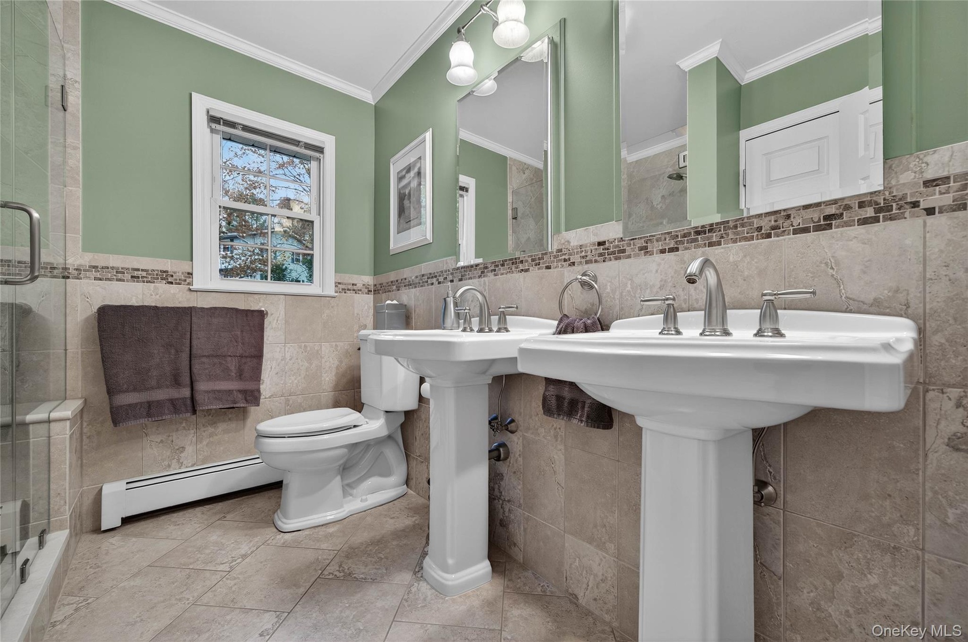 Home sweet home! Welcome to this meticulously maintained and thoughtfully renovated 4 bedroom, 2.5 bathroom colonial located on a nice, quiet street in the Village of Goshen.  For sale for the first time in over 30 years, this is a wonderful place to call home. Well cared for, renovated, and updated throughout the years, this residence is move-in ready with a newly renovated kitchen, recently renovated bathrooms, and freshly repainted. The owned Solar Panels on the roof produce the current owners complete electrical needs including the whole-house central air conditioning. The owners currently pay about $20/month connection fee to Orange and Rockland. A natural gas-powered Generac generator is rarely needed but gives peace of mind to never be without electricity. Gleaming hardwood floors are found throughout the main floor. New windows are throughout the home and basement. New six-panel doors throughout the house. The newly renovated kitchen features granite countertops, Blanco granite sink, shaker cabinets, a movable kitchen island with cabinets and drawers, recessed lighting, a natural gas stove/oven, and a kitchen desk area. Reverse osmosis water faucet at kitchen sink. The formal dining room features hardwood floors, crown molding, French doors to living room, pocket door to kitchen, an Andersen sliding door exit to the patio and back yard. The spacious living room is great for hosting guests - featuring a front picture window, hardwood floors, crown molding, and a large coat closet.  The family room features a large picture window to the back yard, a Mendota gas fireplace, and an exit to the rear patio. Have a drink from the bar room located off the family room. Laundry area with well-organized shelving.  A recently renovated half bathroom is conveniently located on the main floor. On to the second floor - the large primary bedroom features two spacious walk-in closets, an en-suite bathroom, hardwood floors and crown molding. The primary en-suite bathroom has a dual vanity sink with granite countertops, crown molding, marble-like porcelain tile flooring, and a multi-jet Jacuzzi and shower. Bedroom 2 with hardwood flooring is currently used as an office with two nice sized closets. Bedrooms 3 and 4 are nice sized bedrooms with windows to the backyard, large closets, and carpeting. The full second floor hallway bathroom features Marble-like porcelain tile flooring, dual sinks and crown moldings. The full, unfinished basement provides for plenty of storage with tall ceilings and contains the main utilities including the Natural gas fired furnace with hot water tank and the water softening system. The storage area below the family room provides for more additional storage.