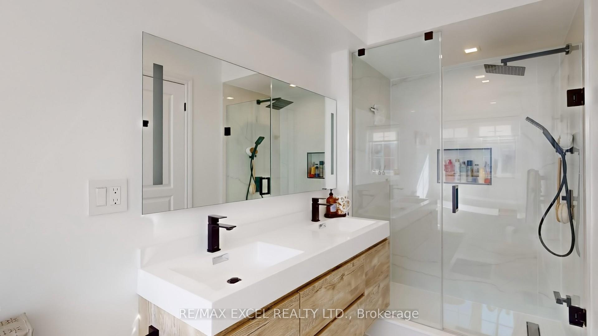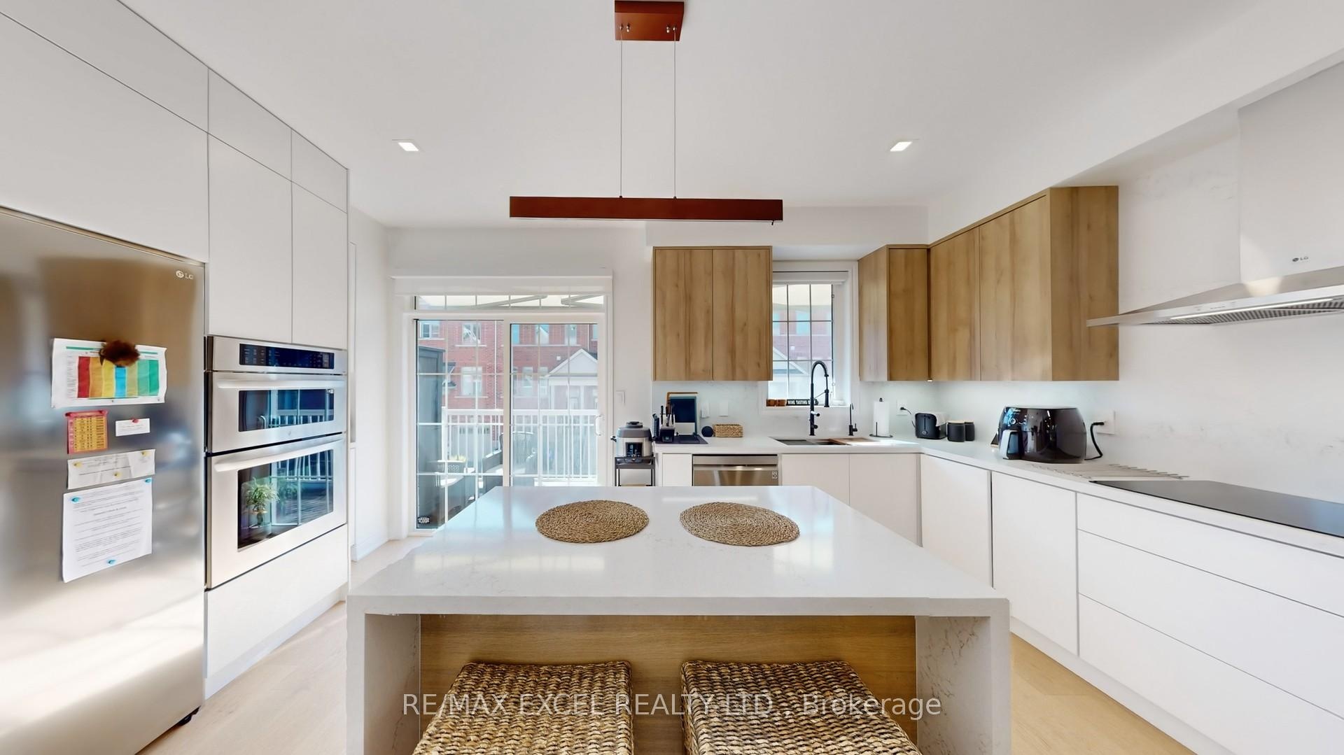 Absolutely Stunning and Fully renovated townhouse in the Highly Desirable Westbrook community. Featuring over $200,000 in Premium Upgrades. Enjoy a Modern Contemporary Design with Natural Wood tones, Smooth ceilings, Square pot lights, and Extra-wide hardwood flooring on main and second floors. The main level boasts 9-ft ceilings and a Dream Kitchen with a Quartz waterfall island, Full quartz backsplash, Integrated built-in Fridge & Freezer, Island wine/Cellar Fridge, Custom soft-close handleless Cabinetry, and Stainless-steel appliances. Spacious Family room with Custom built-ins and a three-way fireplace, walk-out to a beautiful balcony patio perfect for entertaining. This home boasts 3 Spacious Bedrooms and 4 Upgraded Bathrooms including a luxurious Primary suite with double-sink vanity, glass shower, freestanding bathtub, heated tower rack and walk-in closet. The finished basement offers additional living space ideal for recreation or office use. Interlocked driveway, new front door, double garage plus parking for two on driveway. Smart home system with electronic blinds and smart locks. Zoned for top-ranking schools, including Richmond Hill High School, St. Teresa of Lisieux Catholic High School, and Trillium Woods Public School. Close to Parks, Trails, Sports field, supermarket and all restaurants, this is a rare opportunity to own a truly refined home in one of Richmond Hills most sought-after neighborhoods. parks, trails, sports fields, and vibrant Yonge Street amenities. Move in and Enjoy!