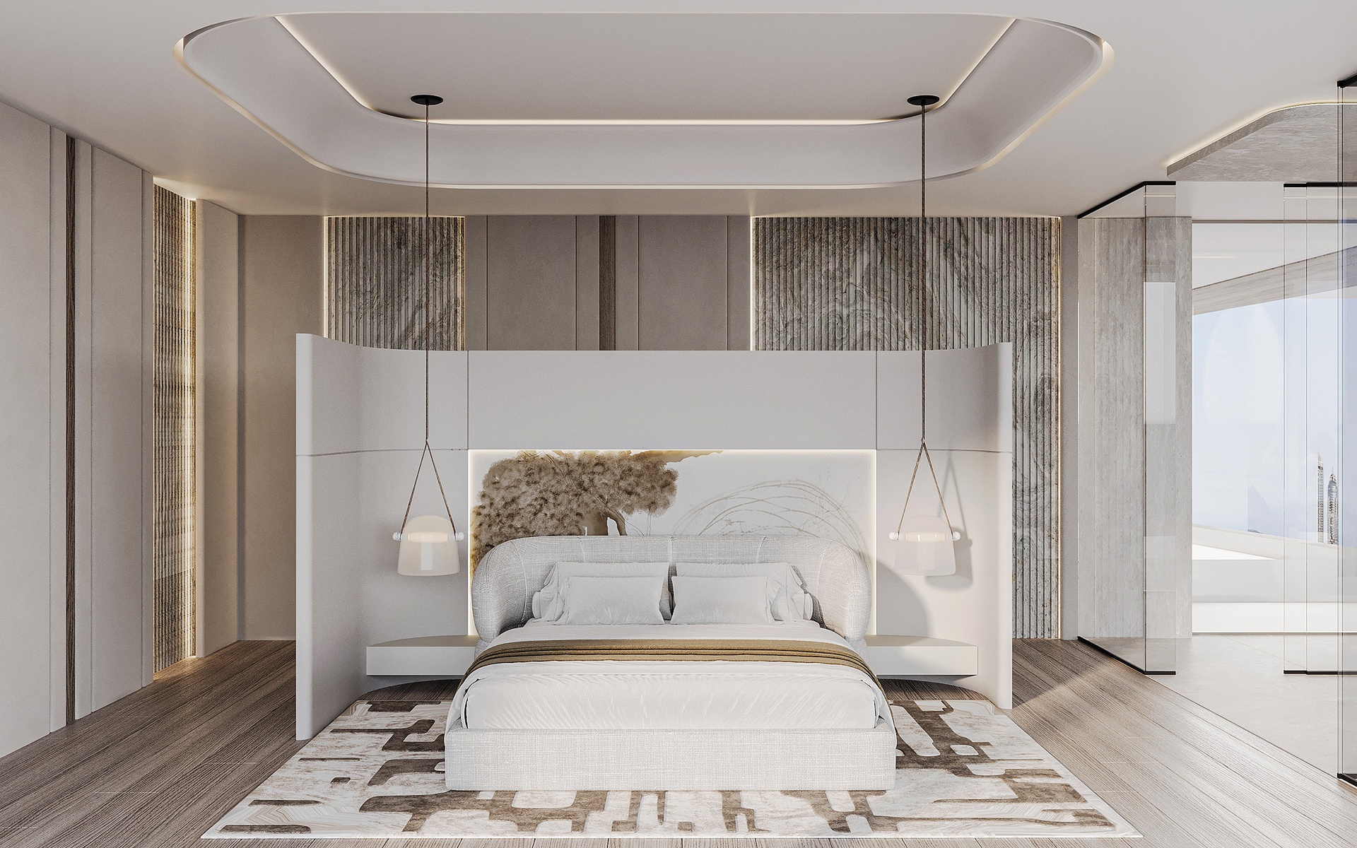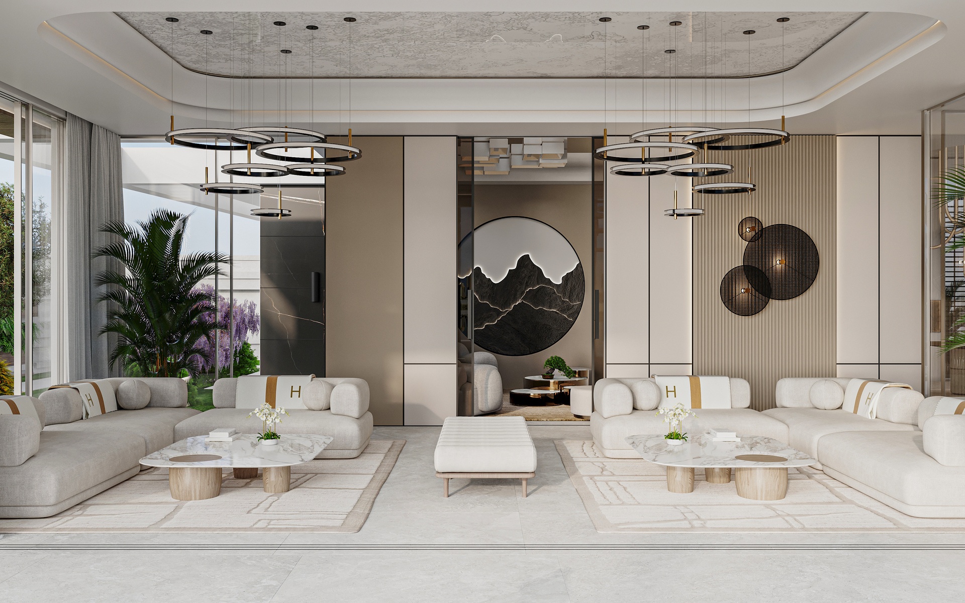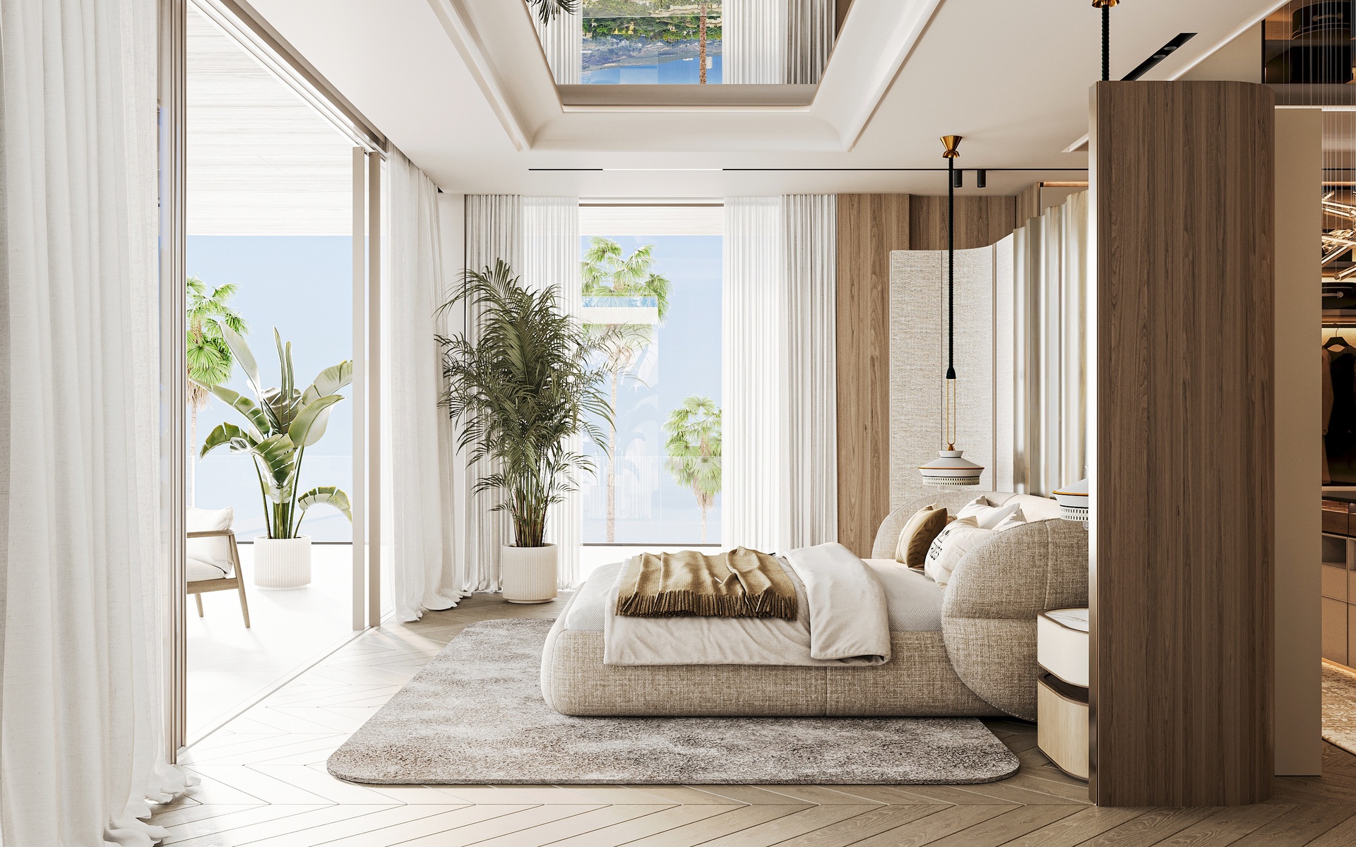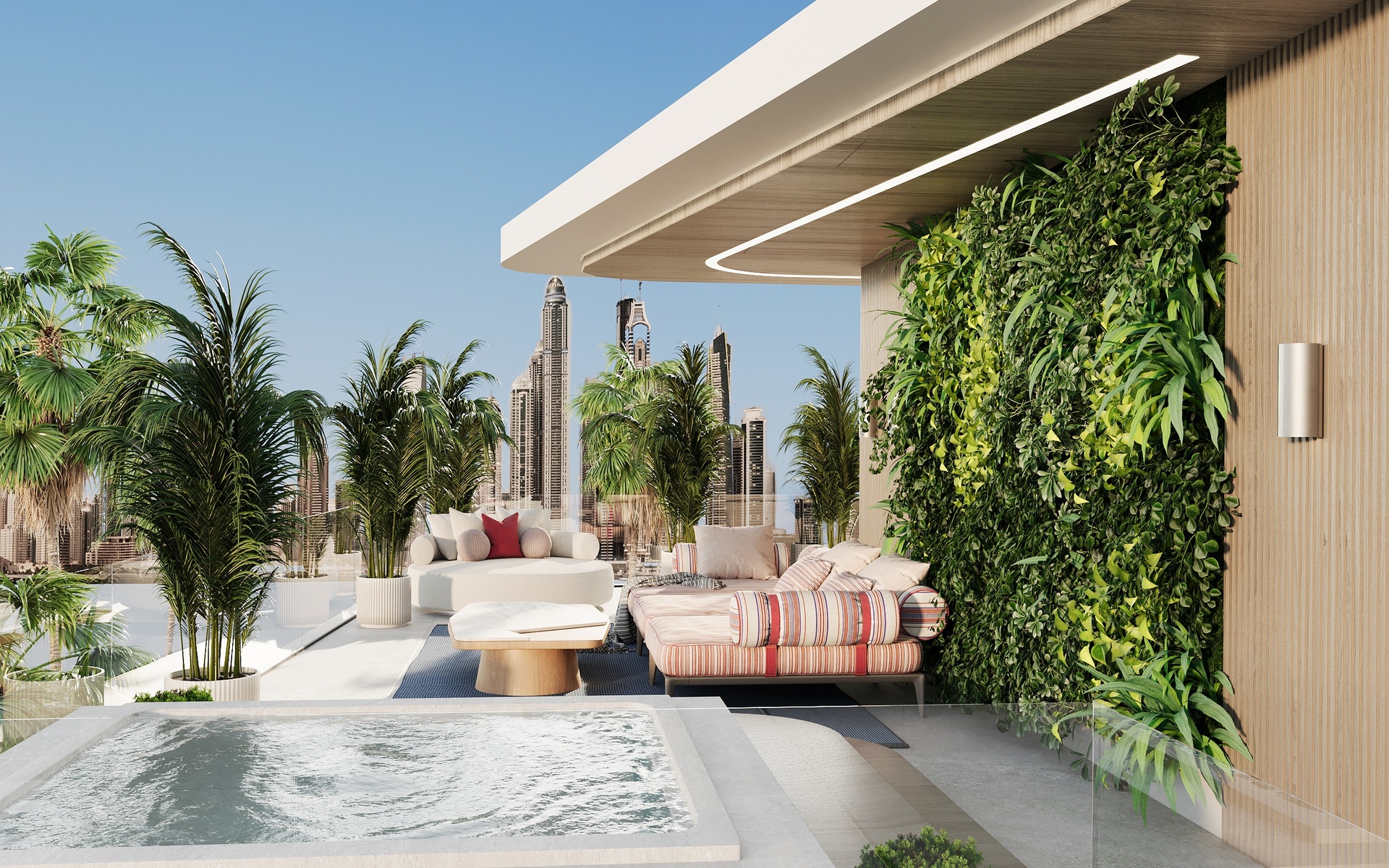 Stepping through the grand double-height entrance, a world of refined tranquility unfolds. Light floods through floor-to-ceiling glass, framing sweeping vistas of the Arabian Gulf and Dubai’s skyline beyond.