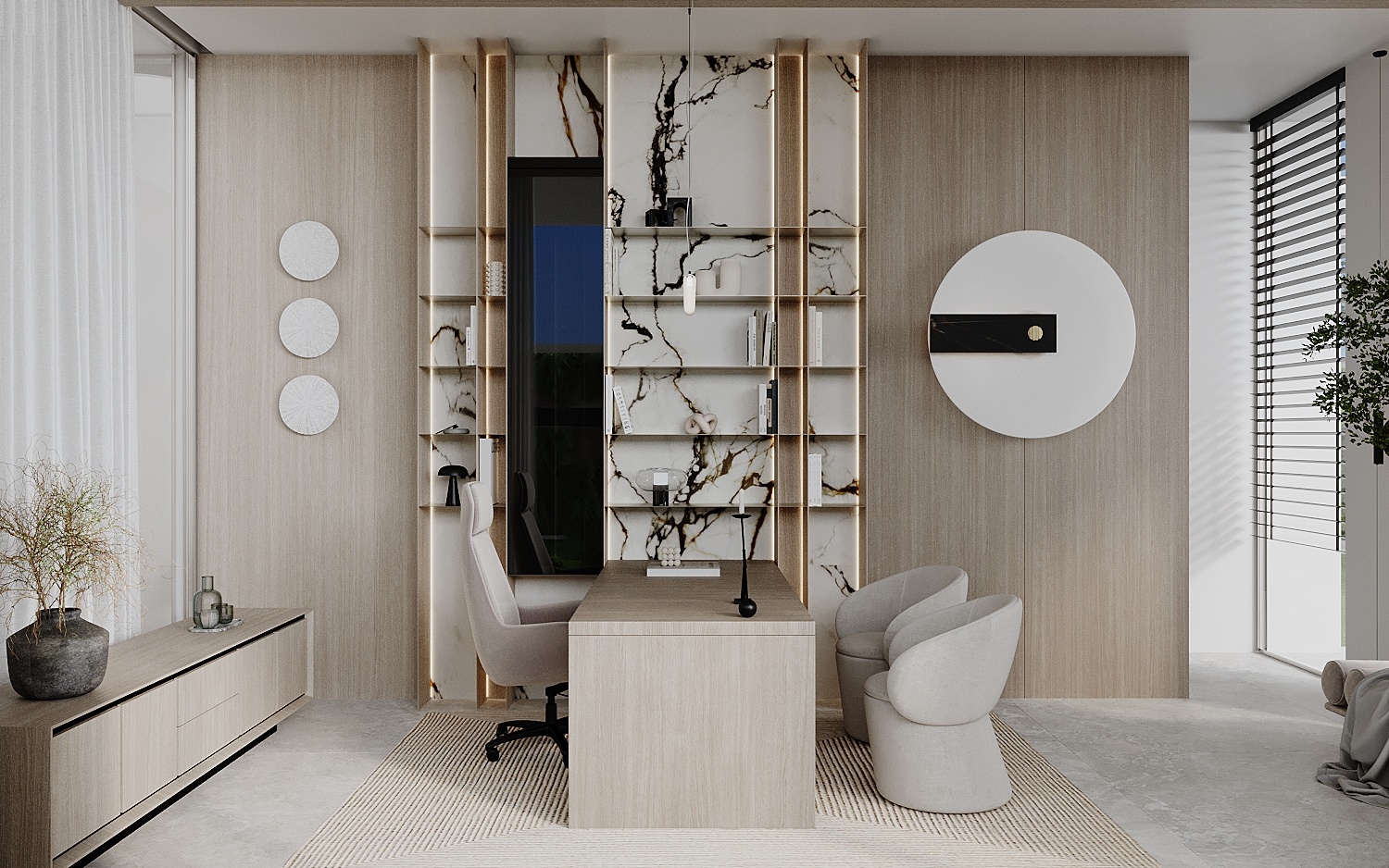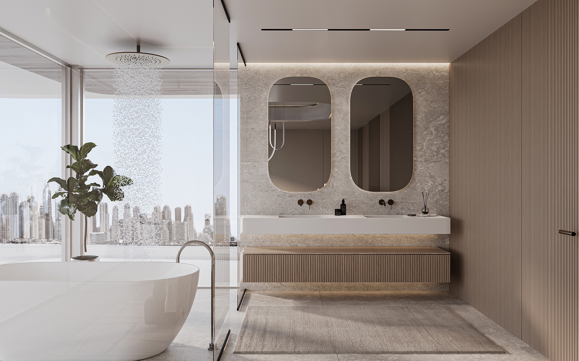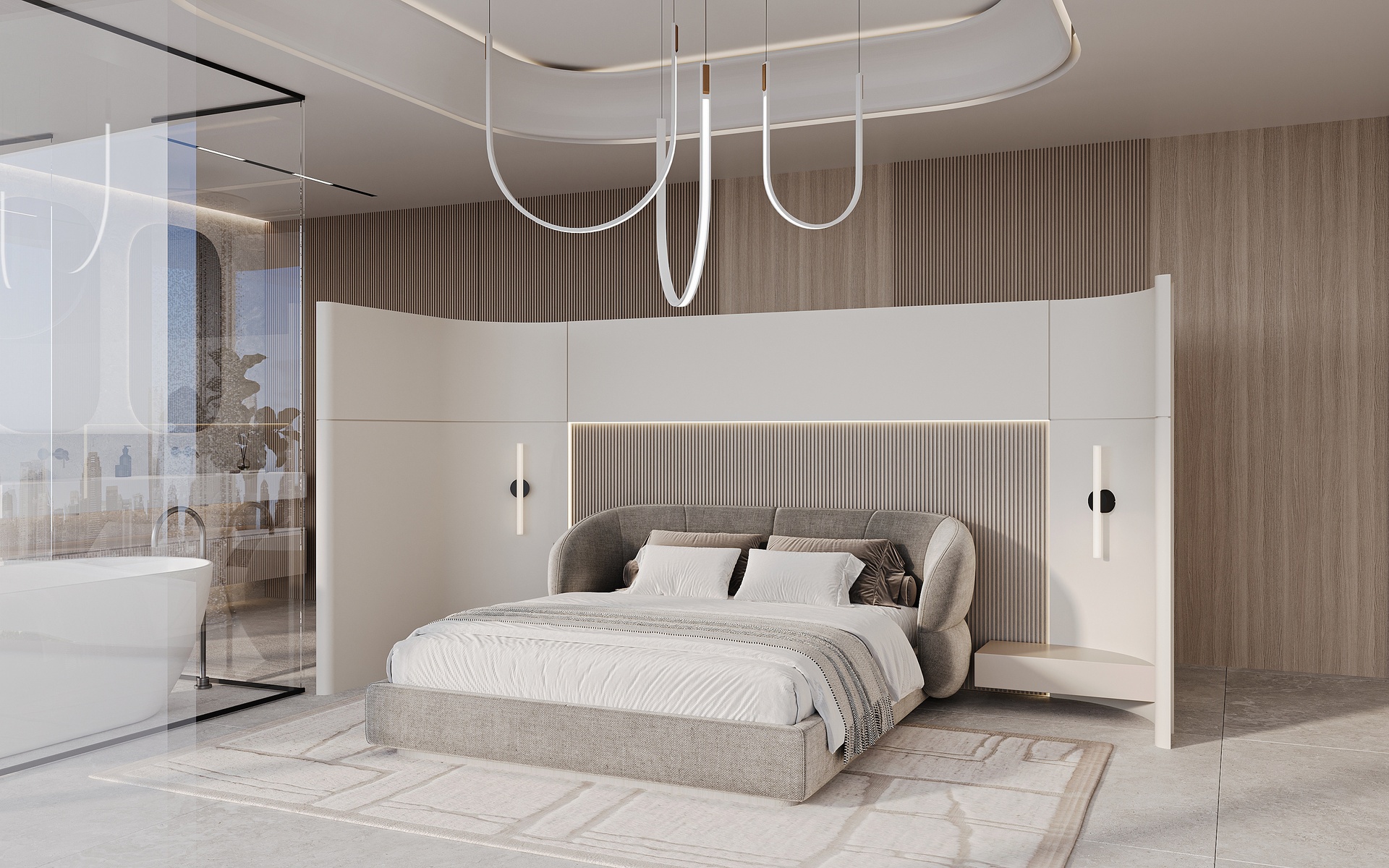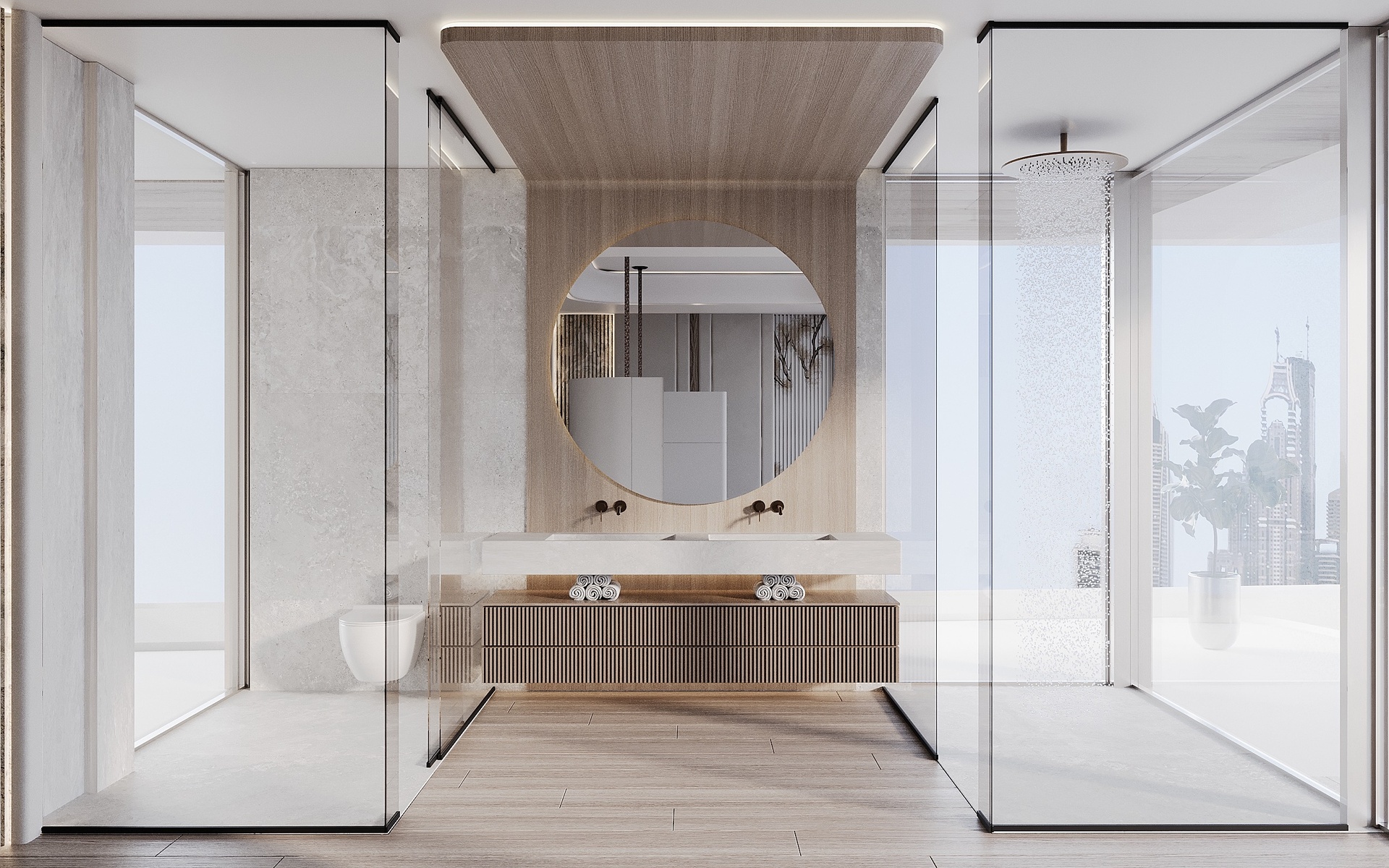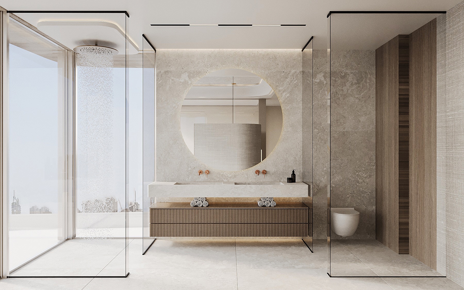 Stepping through the grand double-height entrance, a world of refined tranquility unfolds. Light floods through floor-to-ceiling glass, framing sweeping vistas of the Arabian Gulf and Dubai’s skyline beyond.