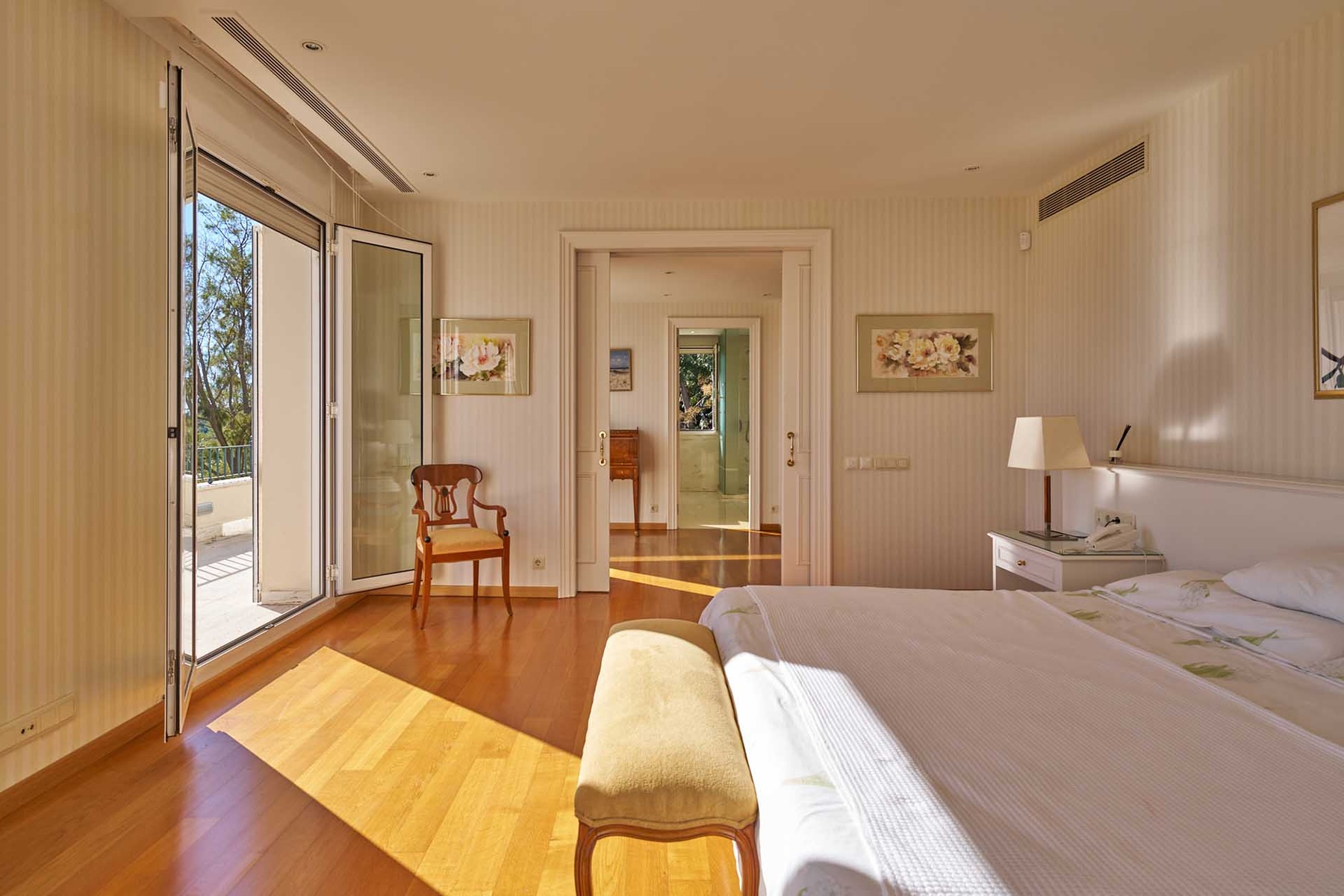 On the upper floor, accessible through a magnificent staircase, the sanctuary of the bedrooms unfolds. Four of the five double bedrooms are located here, each one with bathrooms en-suite and the 80 m2 master suite as an example of luxury with two dressing rooms, generous bathroom with a Jacuzzi tub and shower, and a terrace offering the best views in the house.