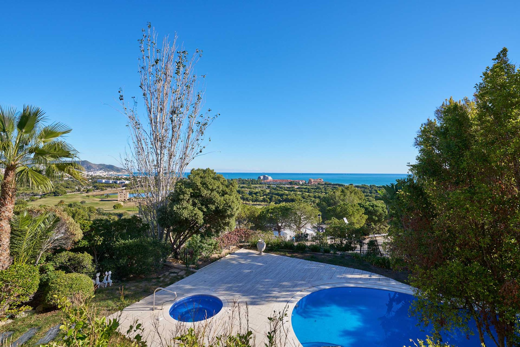 Located in one of the most distinguished enclaves of Sitges, this extraordinary estate stands as an unrivaled jewel. Enjoying commanding views over the golf course and the sparkling sea, this property is situated in a select urbanization, guaranteeing an exclusive and privileged position. With an area of 4,800 m2, the estate offers a captivating space, where every corner has been meticulously landscaped and cared for. The majestic house, with its 910 m2 built, stands as a testimony of architectural quality and exceptional construction.