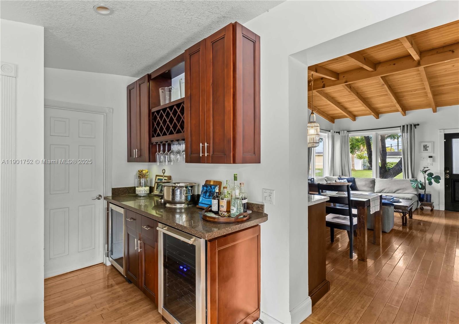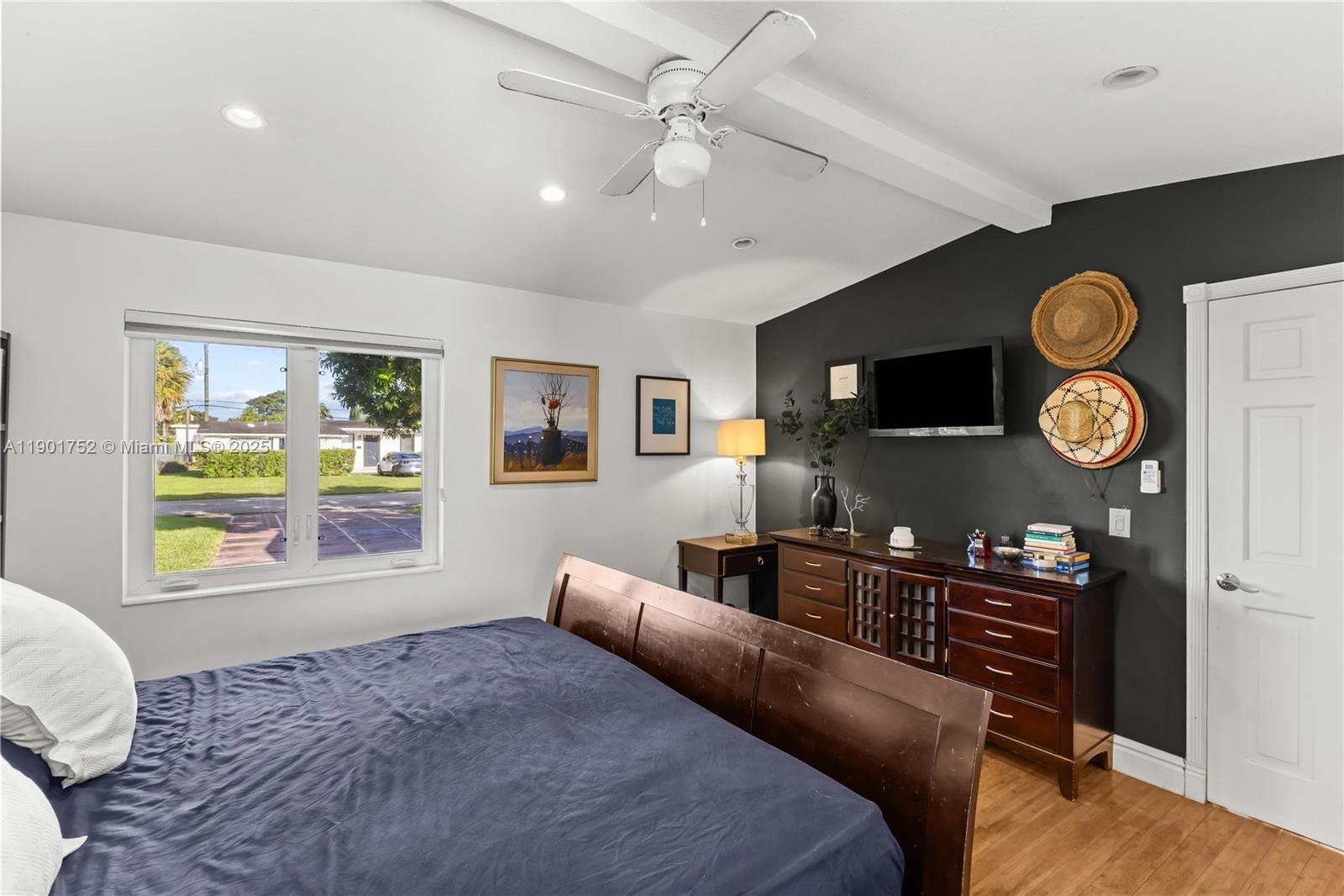 Set amid lush, curated landscaping, this modern 3BD/2BA residence blends warmth and sophistication in a quiet central location. Bamboo floors and vaulted wood ceilings create an inviting sense of space, while impact windows fill the interiors with natural light. The open living area features a built-in bar with wine storage and flows effortlessly to a private outdoor retreat with a newly designed pool and lounge patio. Surrounded by tropical greenery and mature hedges, the garden offers complete privacy—a serene backdrop for entertaining or unwinding. A gardener’s dream with gravel walkways, a fire-pit area, and an outdoor shower, this home balances modern design with a relaxed, indoor-outdoor lifestyle—ready to enjoy from day one.
