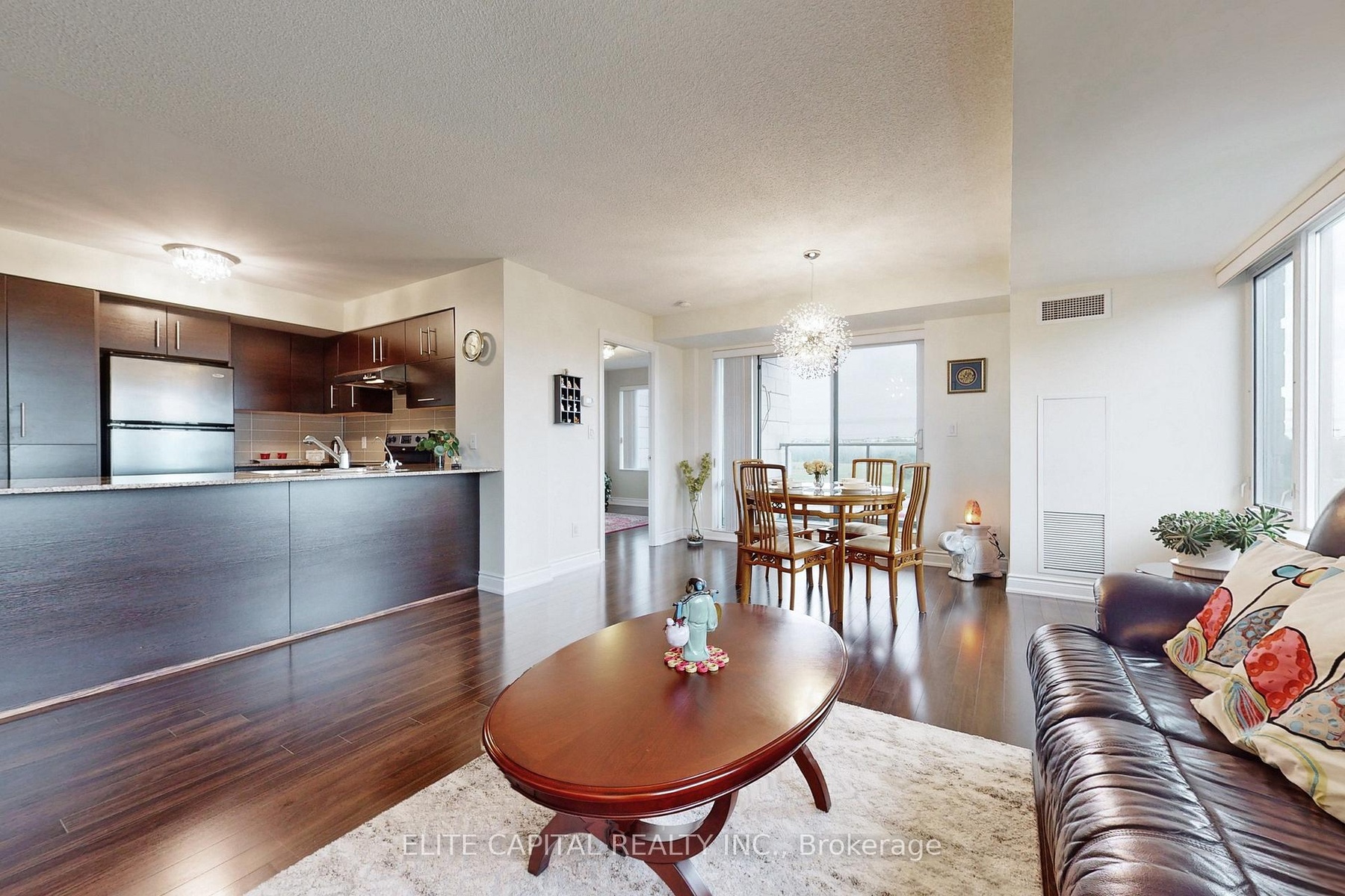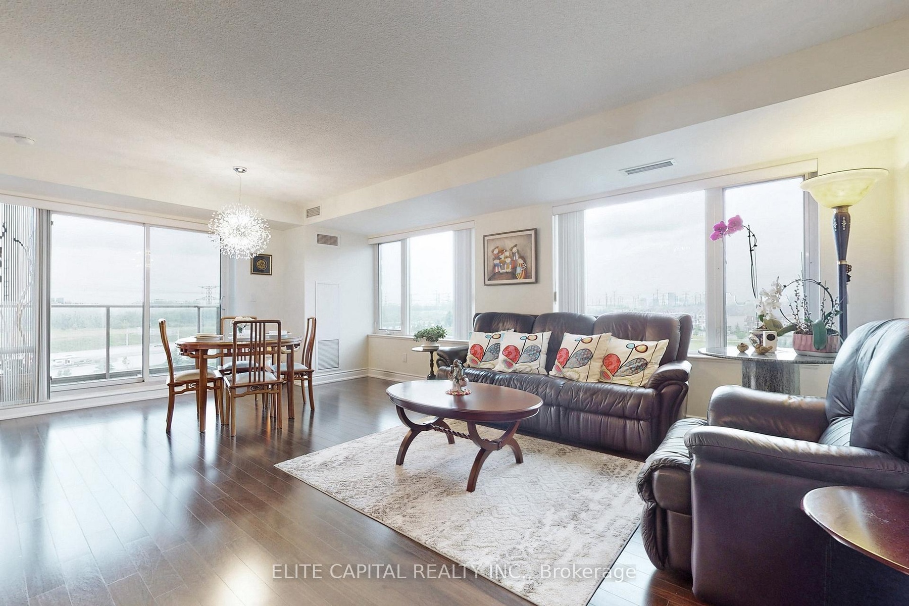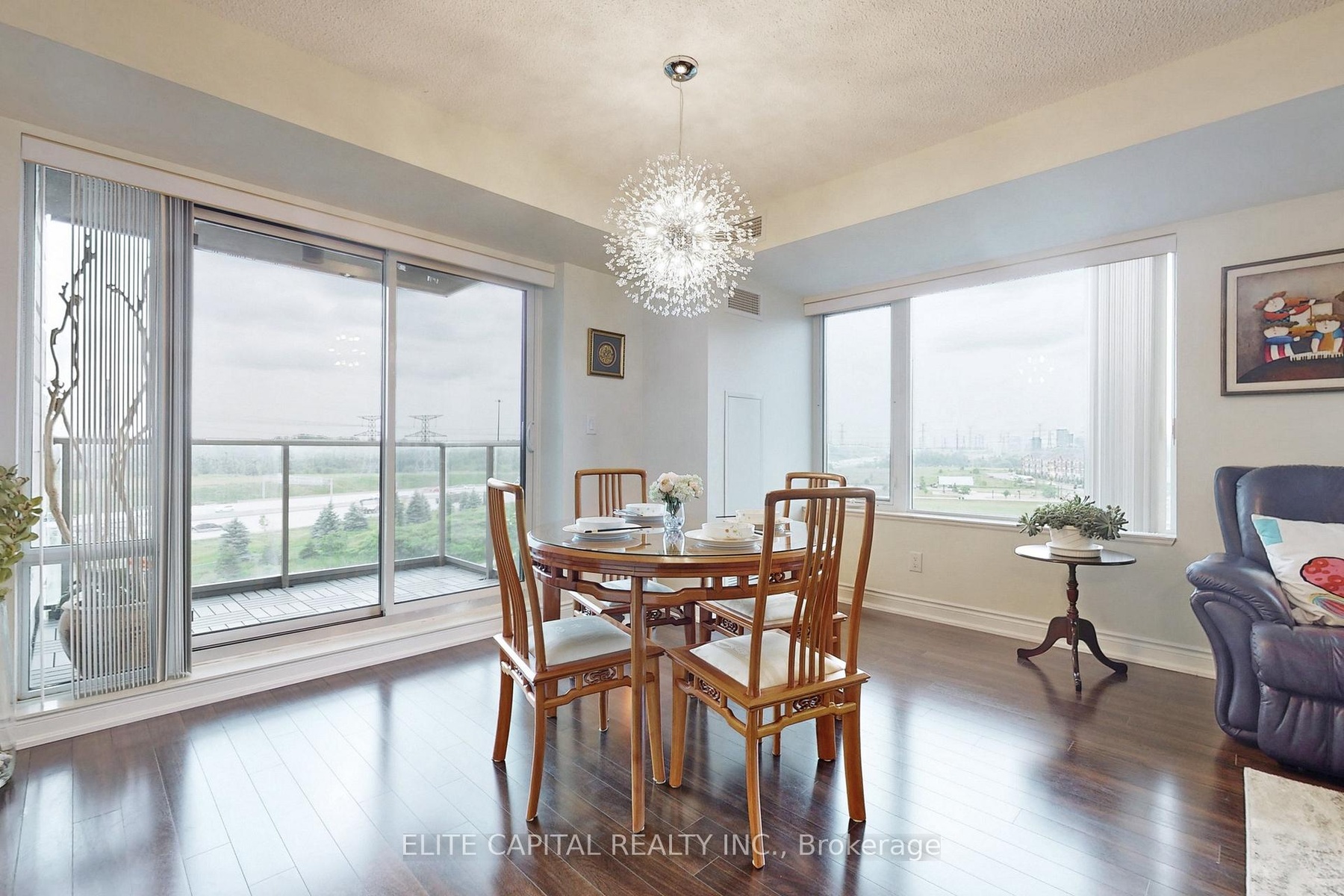 Welcome to Eden Park @ Thornhill. Spotless 2 Bedroom Corner Suite. Spacious S/W 1,059 s.f. plus 50 s.f. Balcony. Overlook Large Community Park w/ Tennis Court & Splash Pads. Laminated Flooring Throughout. LED Light Fixtures. Upscale Condo Amenities: Gym, Indoor Pool, 24 Hours Security, Large Party Room, Visitor Parking, ...... Close to Shops, Banks, Restaurant, Plaza, Transit, Malls, Office Towers and all Amenities. Minute to Highway 404 & 407. One Parking Included. No Pets, No Smoking Allowed.
