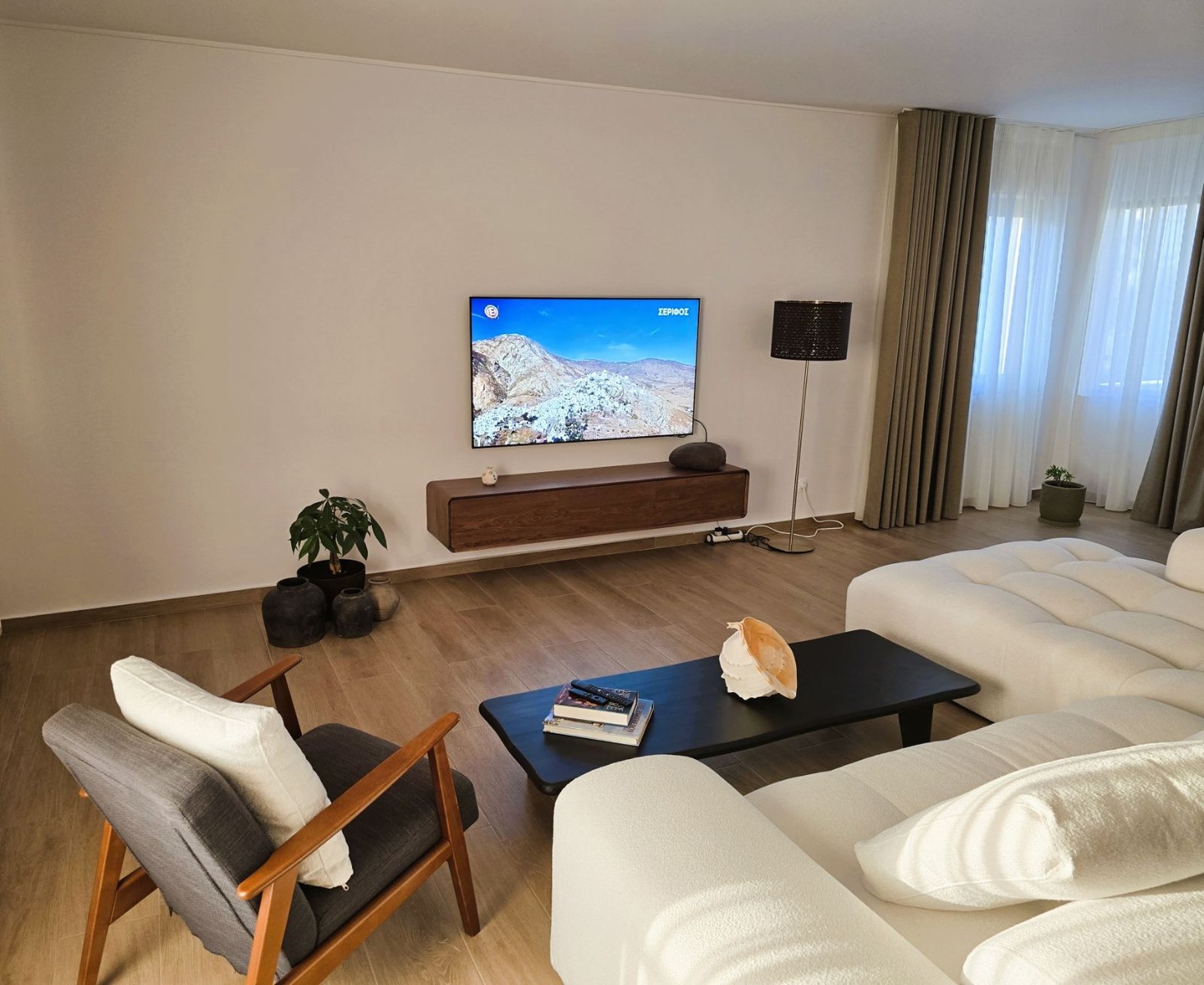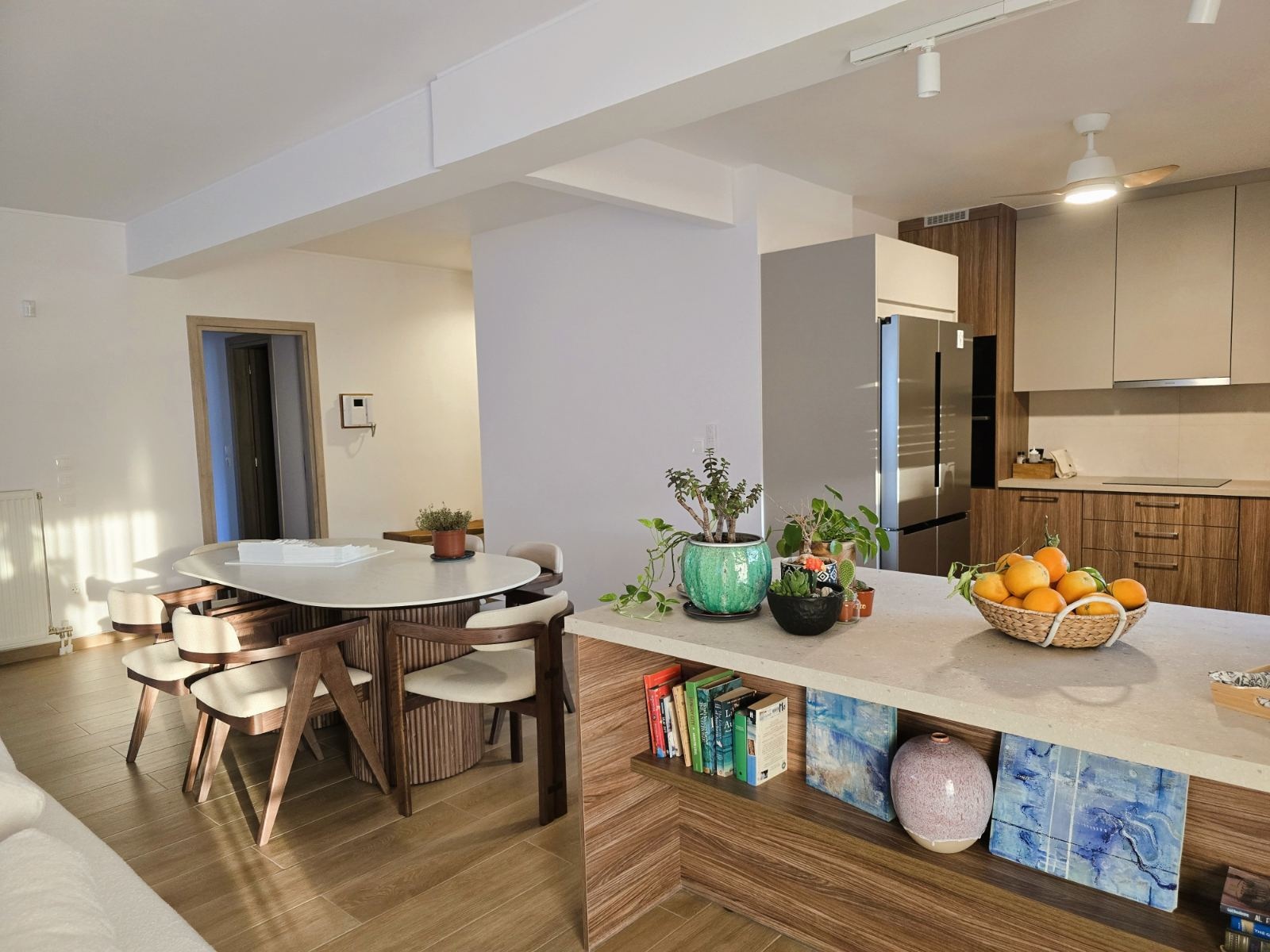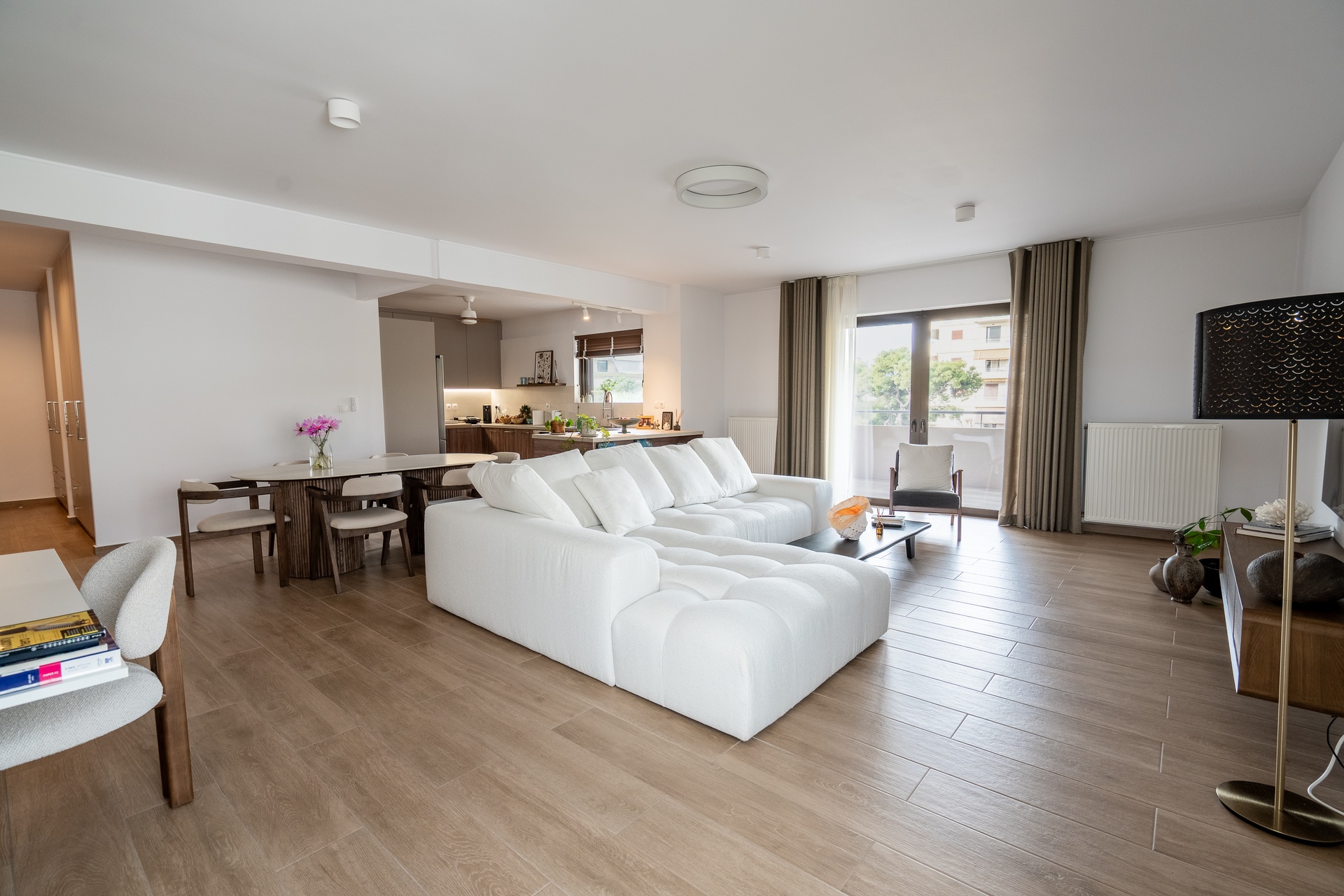 Nestled atop a peaceful, tree-lined hill in one of Athens’ most desirable residential areas, this impeccably renovated apartment pairs refined contemporary living with the enduring elegance of a heritage building. Set within a distinguished mid-century block of aristocratic character, the residence enjoys uninterrupted mountain and city views, enhanced by a generous wrap-around terrace ideal for sunrise breakfasts and sunset gatherings.