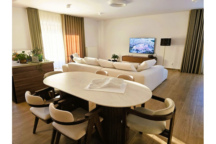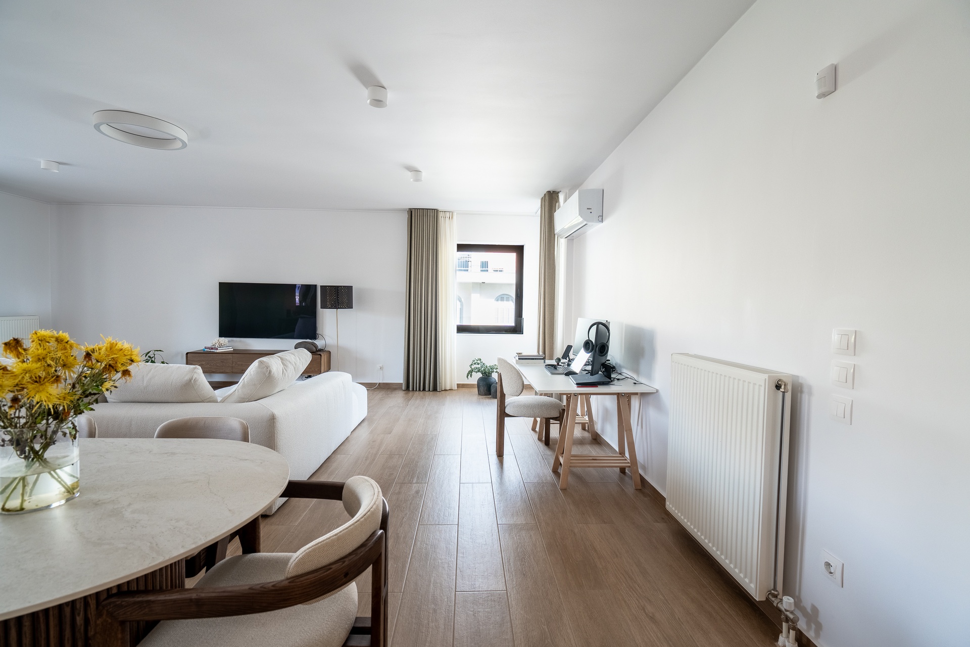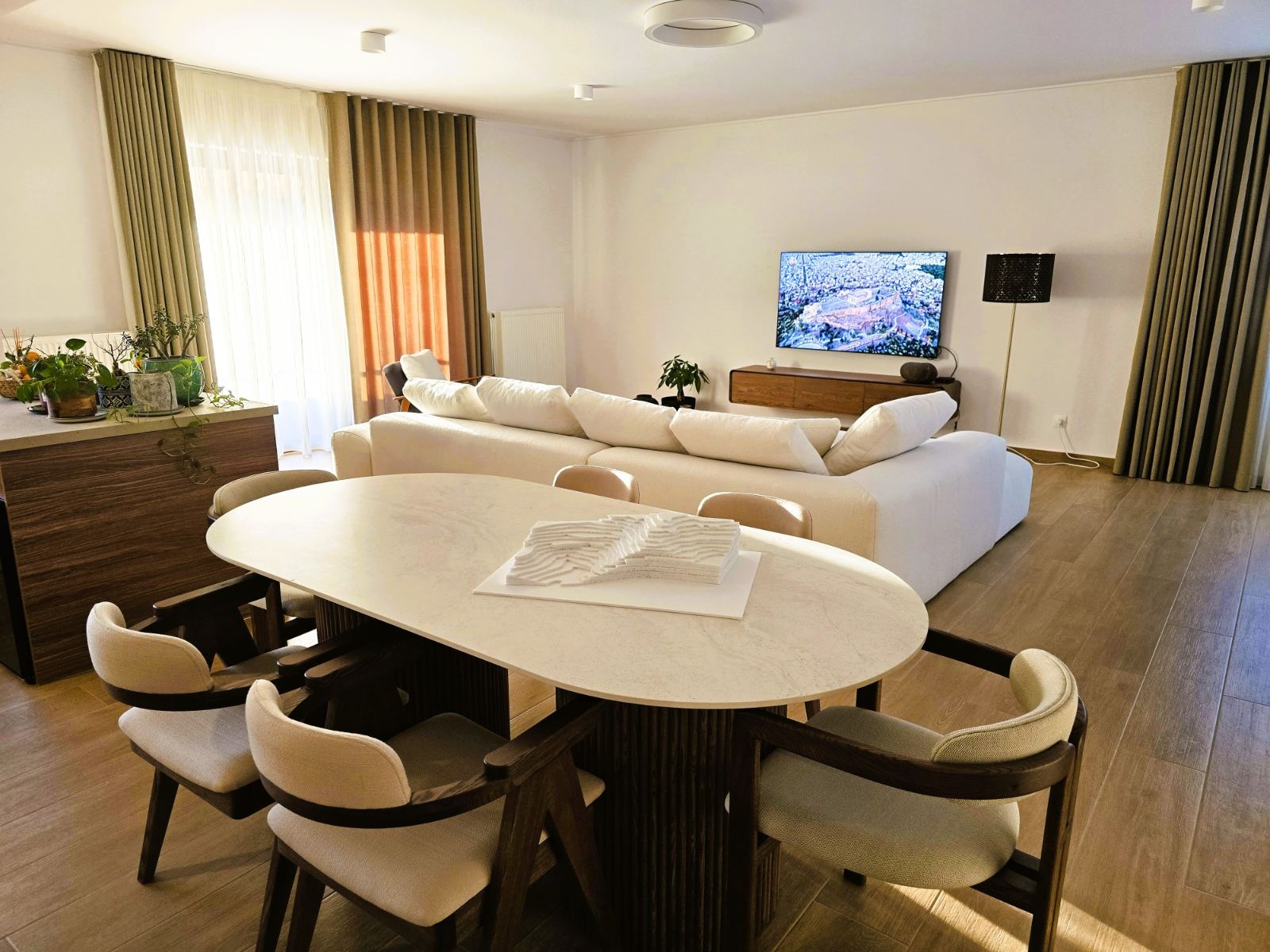 Nestled atop a peaceful, tree-lined hill in one of Athens’ most desirable residential areas, this impeccably renovated apartment pairs refined contemporary living with the enduring elegance of a heritage building. Set within a distinguished mid-century block of aristocratic character, the residence enjoys uninterrupted mountain and city views, enhanced by a generous wrap-around terrace ideal for sunrise breakfasts and sunset gatherings.