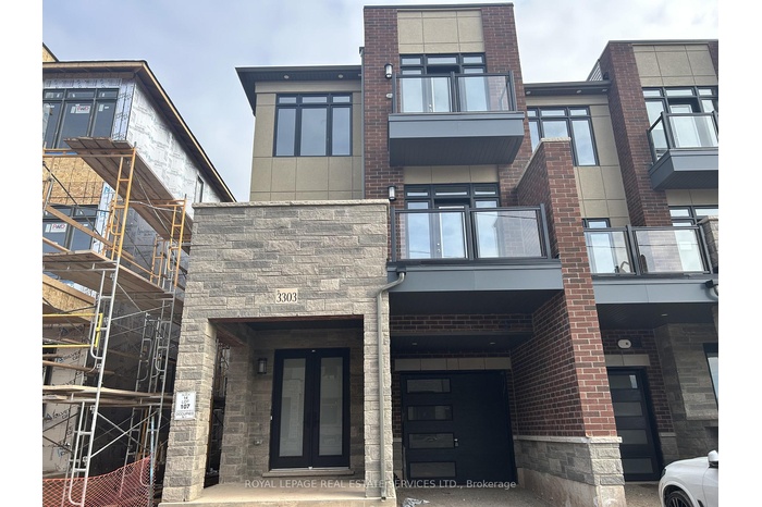 Be the first to live in this stunning 3-storey, brand-new townhouse end unit, bathed in all-day southwest-facing natural light. Offering 1,811 sq. ft. of exquisitely designed living space (plus basement), this home perfectly blends modern luxury with everyday comfort.The ground level welcomes you with a spacious and versatile flex room-ideal for a home office, family den, or a private 4th bedroom-along with convenient interior access from the garage. The open-concept second floor is an entertainer's dream, defined by soaring 10-foot ceilings. The gourmet kitchen features elegant quartz countertops, high-end appliances, and ample, ceiling-height cabinets for extra storage. Step directly from the kitchen onto a spacious balcony with a built-in gas line, perfect for BBQs. A smartly placed second-floor laundry room keeps chores convenient yet quiet, away from the living and sleeping areas. Upstairs, the third floor continues the airy feel with 9-foot ceilings and three generous bedrooms. The primary suite serves as a private retreat, complete with its own exclusive balcony for enjoying the morning air. This home includes parking for two cars (one garage, one driveway). Located just minutes from fine dining, the River Oaks Community Centre, essential shopping, and major highways (403 & QEW), this home offers an unparalleled balance of style and convenience in one of Oakville's most sought-after communities.