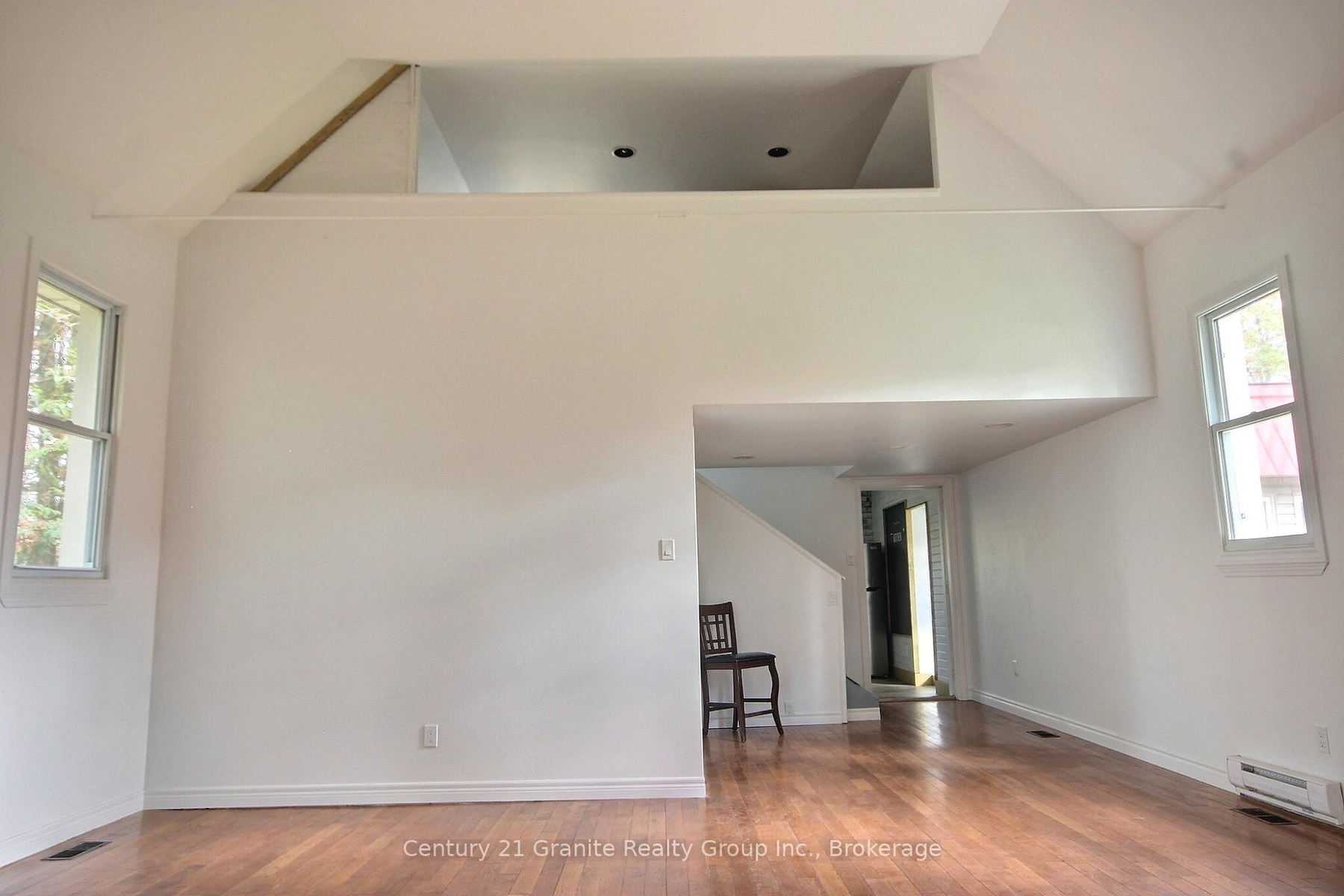 Looking for something special? Looking for something affordable? Looking for something that is move in ready? This could be the one for you! Located in the charming town of Kinmount this home was once the Baptist Church and has since been renovated to become a delightful 2 bedroom home. As soon as you enter the front door you'll be delighted with the openness of the living room with cathedral ceiling. The woodstove will take away any chills and help keep heating costs down. An oversized bathroom includes the laundry all on the main floor. The kitchen has just been renovated and is large enough for a small bistro sized table and chairs. The huge primary bedroom runs just off the kitchen and incudes such features as an oversized closet and walkout to deck with screened in gazebo. Upstairs and overlooking the living room is the second bedroom. A perfect spot for children to claim as their own. Kinmount is an amazing town that includes such features as the Kinmount Fair, and the world famous Highlands Theatre and Museum. The waterfront park is just a short walk away on the beautiful Burn River, and shopping is also only a few steps away from home. Located on a dead end street means quiet living in this quaint Ontario town.