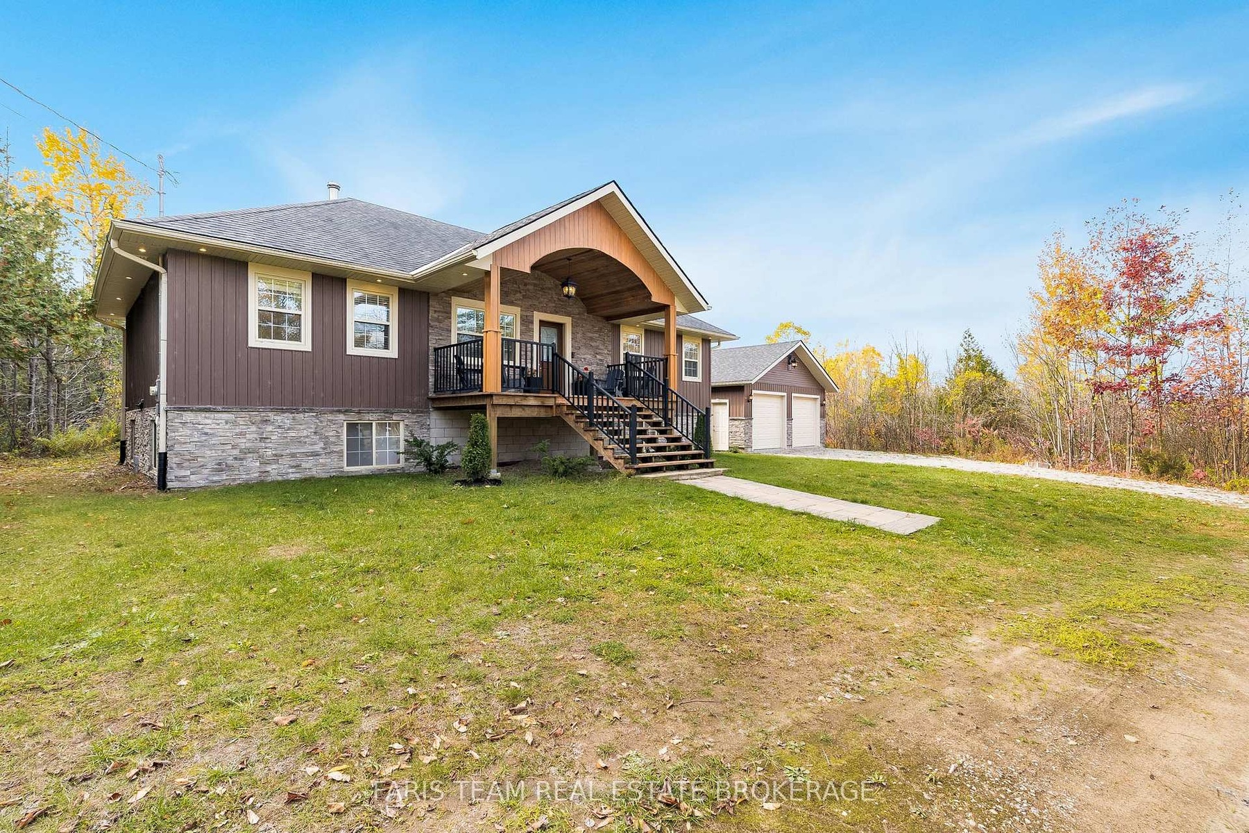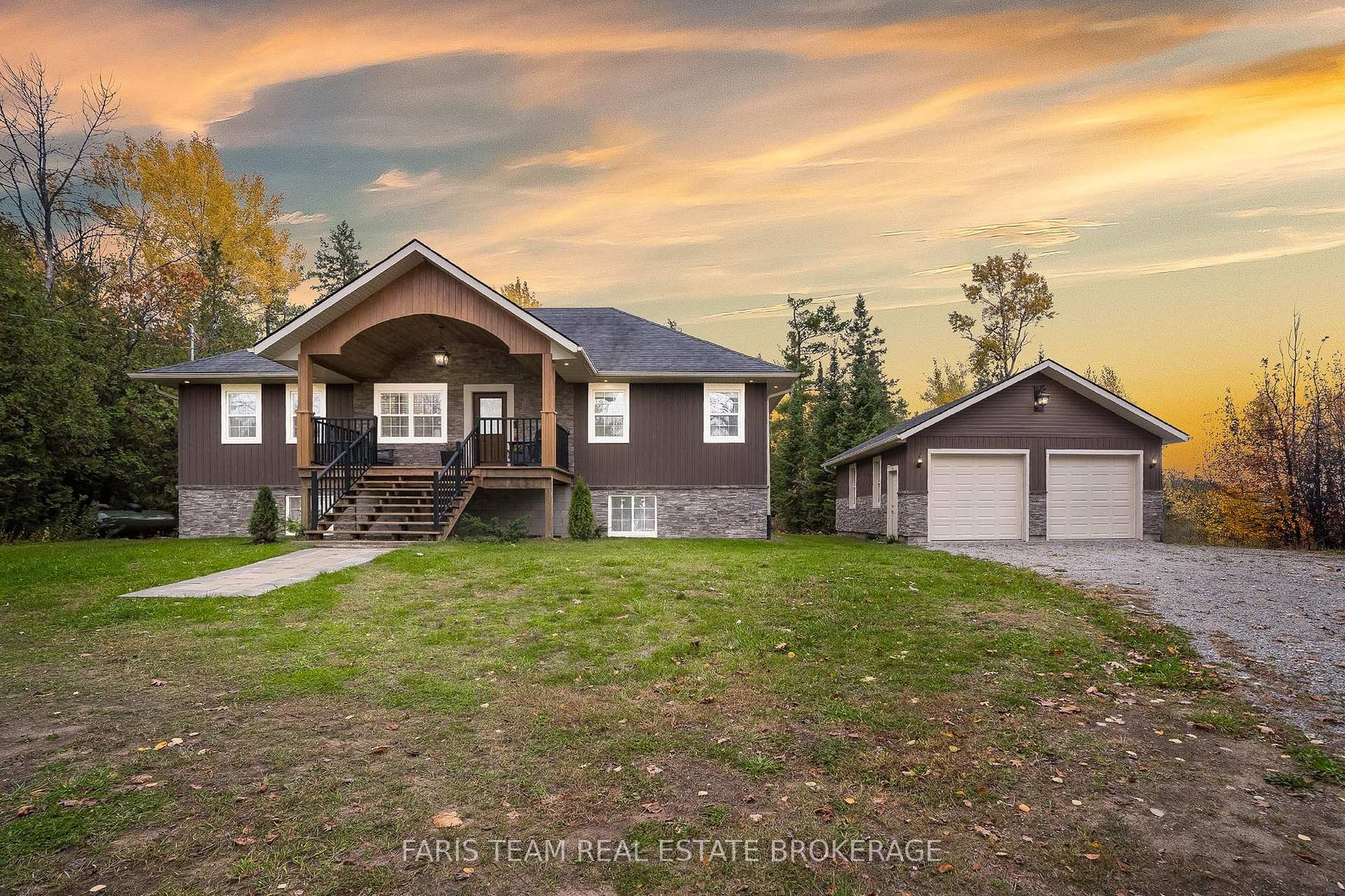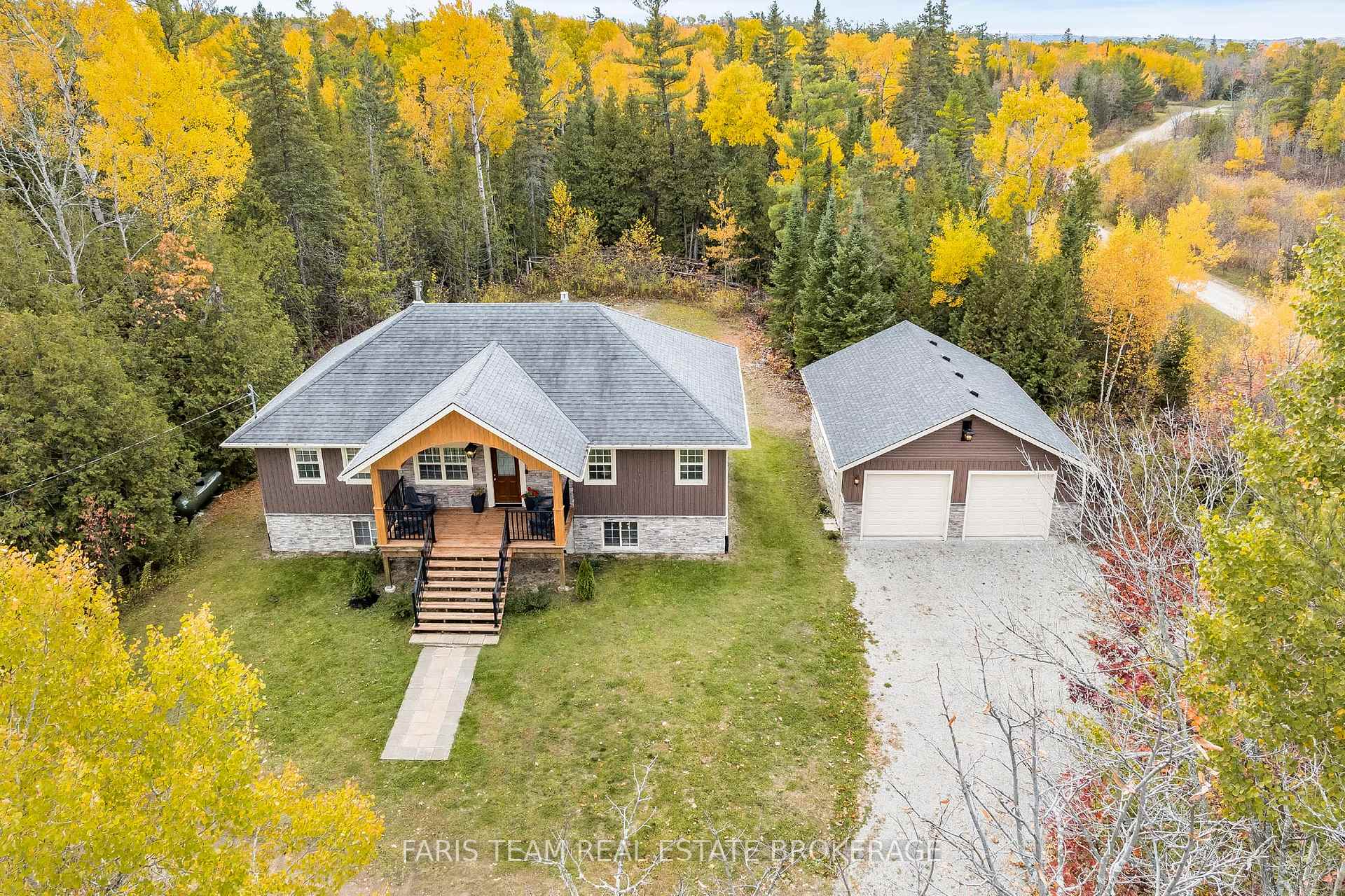 Top 5 Reasons You Will Love This Home: 1) Built in 2018, this 1,370 square foot raised bungalow features a bright and inviting open-concept layout with soaring 10' ceilings, perfect for entertaining and everyday living, while the main level flaunts a warm ambiance with a propane fireplace and central air for year-round comfort 2) Established on over 2-acres of mixed forest, this property offers peace, privacy, and room to roam while being just minutes from Highway 400, Midland, and Barrie, making it the ideal mix of rural tranquility and convenient access to amenities, while being just 1.5 hours from Toronto 3) Indulge in the oversized 24'x28' detached double garage delivering 9' wide doors, 9.5' walls, and plenty of space for vehicles, tools, and recreational equipment, excellent for hobbyists, storage, or anyone who values extra room to work 4) The high and dry basement offers 8'4'" ceilings, large windows, and roughed-in plumbing for a third bathroom, making it an ideal blank canvas for a future family room, extra bedrooms, or an in-law suite 5) Appreciate a spacious 12'x26' rear deck overlooking the natural surroundings, a WETT-certified airtight wood stove rated for 2,200 square feet, a lot survey already included, and an original cottage serving as extra storage, adding even more flexibility to this well-maintained property. 1,370 Above grade sq.ft. plus a unfinished basement.