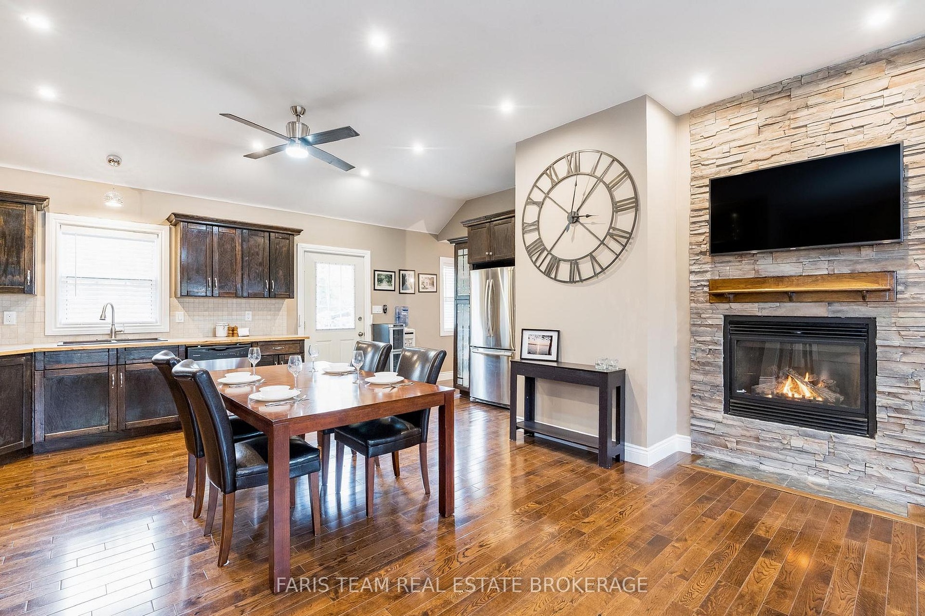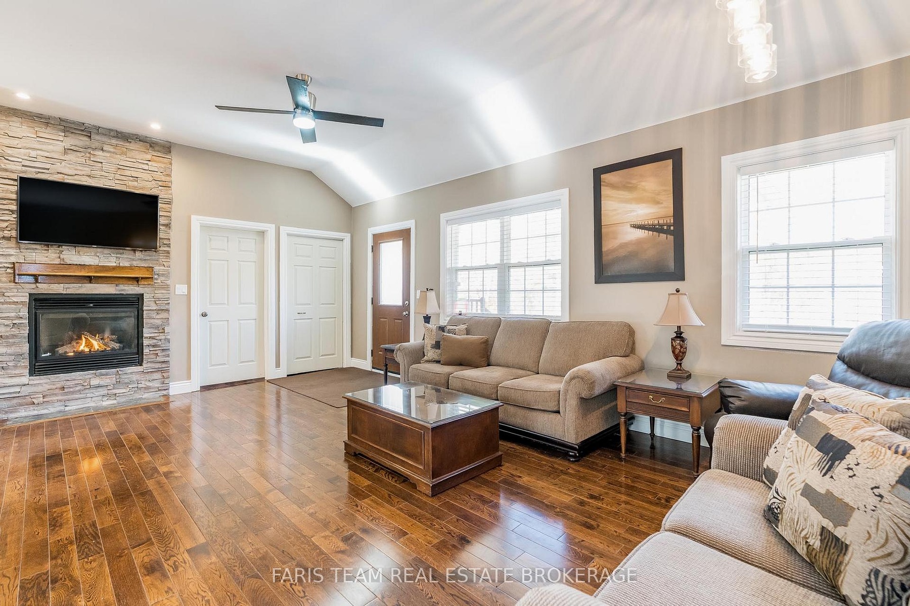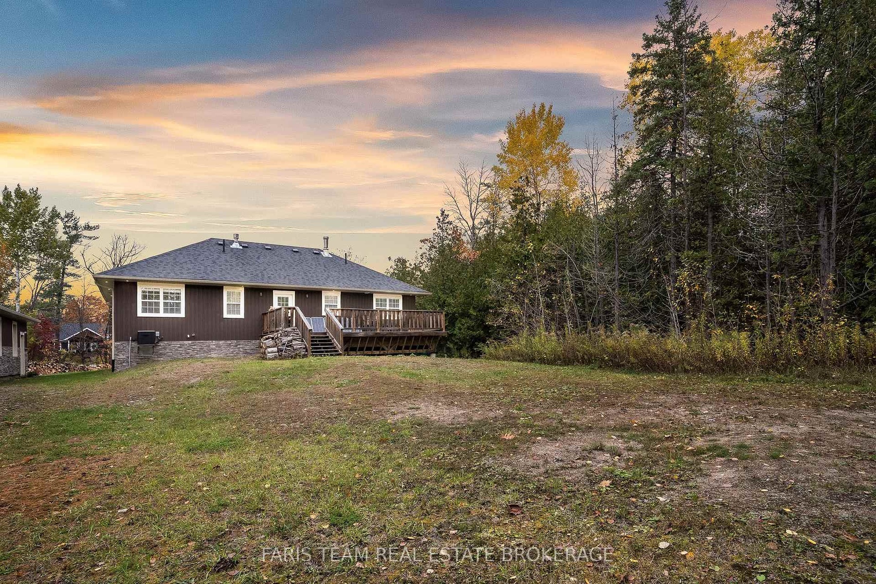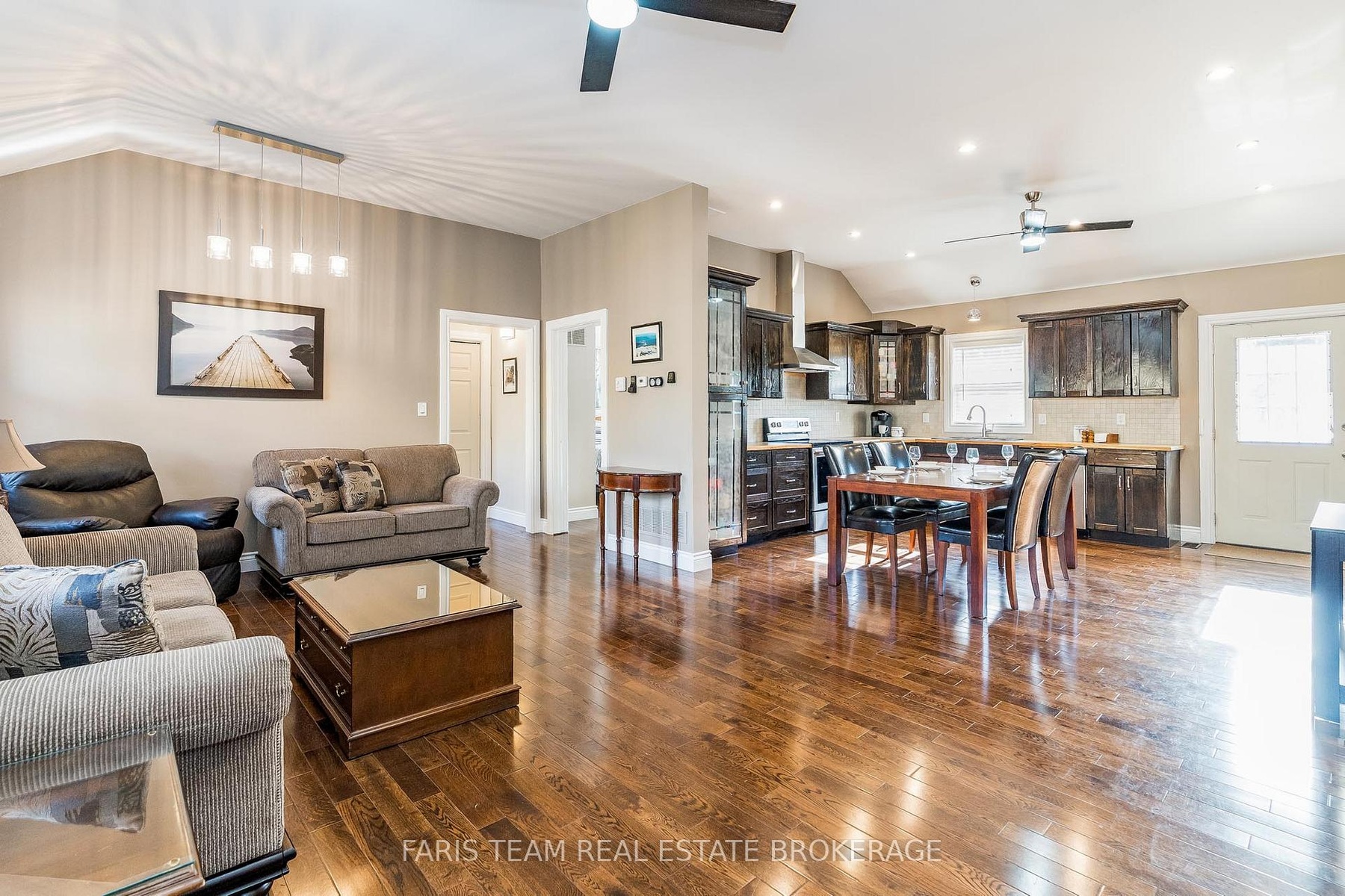 Top 5 Reasons You Will Love This Home: 1) Built in 2018, this 1,370 square foot raised bungalow features a bright and inviting open-concept layout with soaring 10' ceilings, perfect for entertaining and everyday living, while the main level flaunts a warm ambiance with a propane fireplace and central air for year-round comfort 2) Established on over 2-acres of mixed forest, this property offers peace, privacy, and room to roam while being just minutes from Highway 400, Midland, and Barrie, making it the ideal mix of rural tranquility and convenient access to amenities, while being just 1.5 hours from Toronto 3) Indulge in the oversized 24'x28' detached double garage delivering 9' wide doors, 9.5' walls, and plenty of space for vehicles, tools, and recreational equipment, excellent for hobbyists, storage, or anyone who values extra room to work 4) The high and dry basement offers 8'4'" ceilings, large windows, and roughed-in plumbing for a third bathroom, making it an ideal blank canvas for a future family room, extra bedrooms, or an in-law suite 5) Appreciate a spacious 12'x26' rear deck overlooking the natural surroundings, a WETT-certified airtight wood stove rated for 2,200 square feet, a lot survey already included, and an original cottage serving as extra storage, adding even more flexibility to this well-maintained property. 1,370 Above grade sq.ft. plus a unfinished basement.