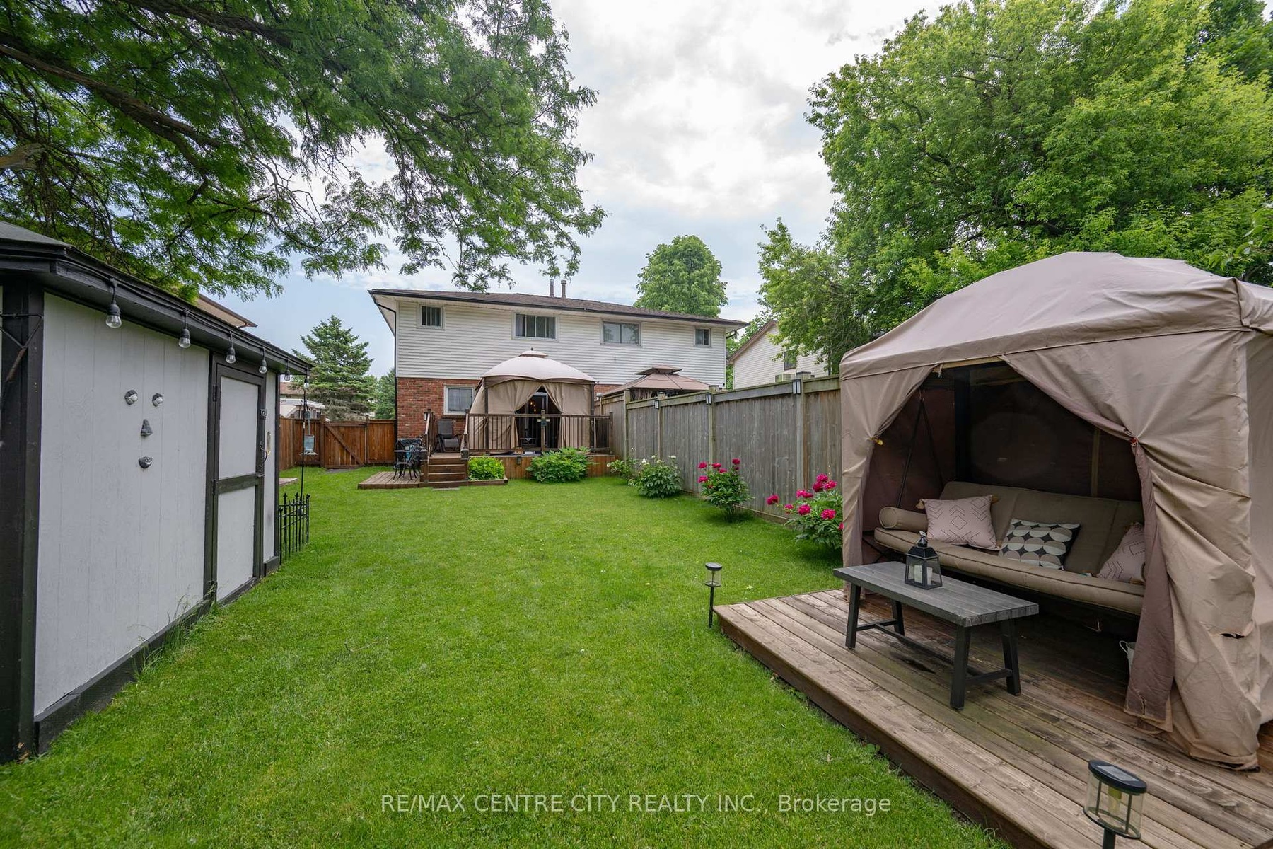 Charming & Updated 3-Bedroom Semi-Detached in Prime Location! Discover this beautifully maintained 3-bedroom semi-detached home, perfect for first-time buyers, downsizers, or anyone seeking a low-maintenance lifestyle with excellent value. Move-in ready and full of thoughtful upgrades, this home offers comfort, style, and flexibility. Step inside to find: Recently paint throughout for a modern, clean feel. A partially finished basement featuring a cozy home theatre/rec room ideal for relaxing or entertaining. Upgraded furnace & A/C (2022) for year-round comfort. Water filtration system and updated light fixtures for added convenience. Outdoor highlights include a gazebo (2020), storage and workshop sheds, shaded swing, and a beautifully constructed deck, fence, and gate (2022)The second-floor bathroom has been tastefully enhanced for a fresh, updated look. Located in a quiet, family-friendly neighborhood just minutes from Fanshawe College, parks, schools, shopping, and with easy access to Highway 401, this home checks all the boxes for location and lifestyle. Why settle for a condo? This property offers the same low-maintenance benefits with more space, privacy, and no condo fees.