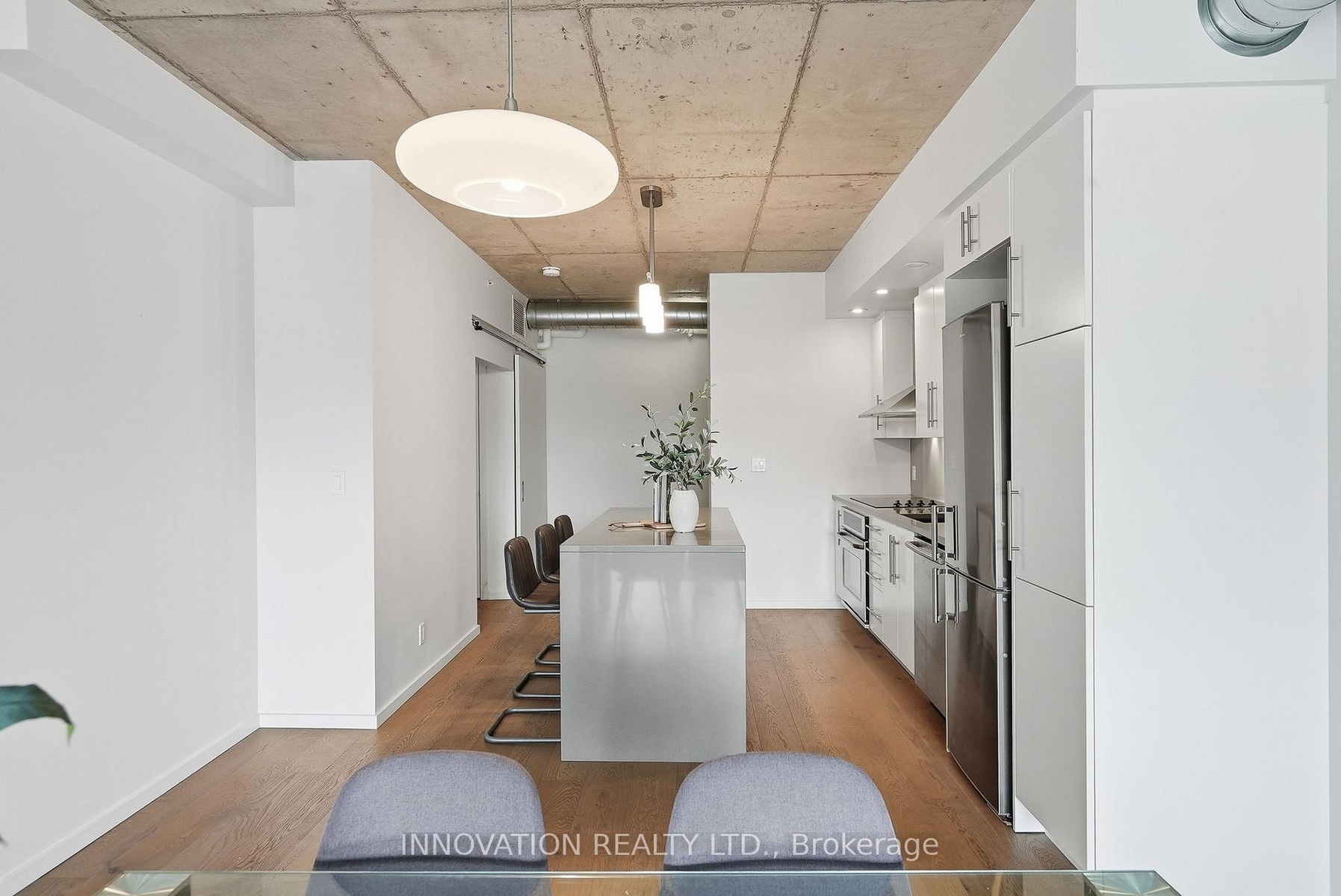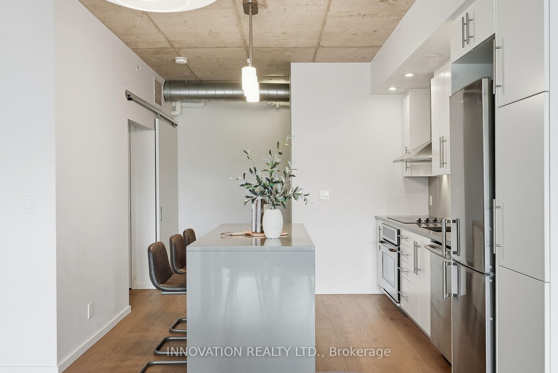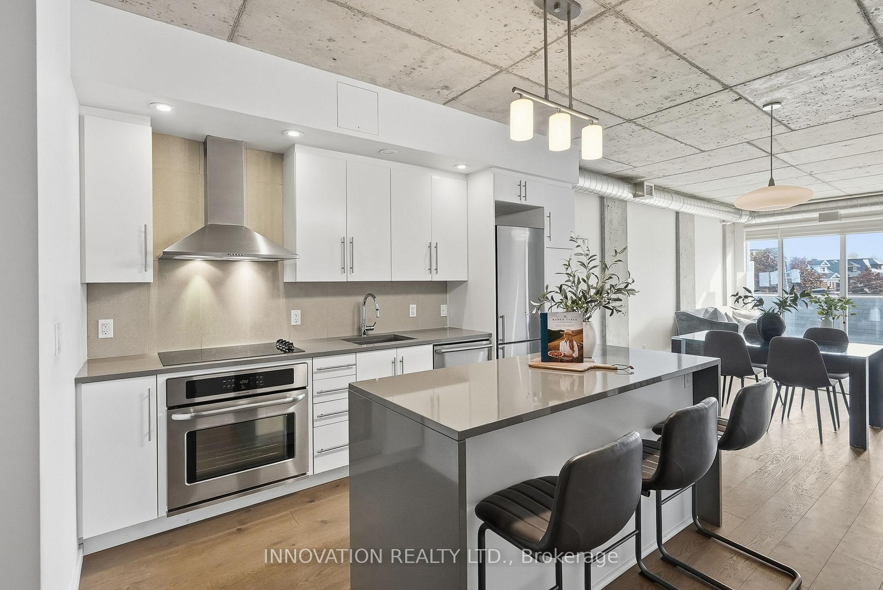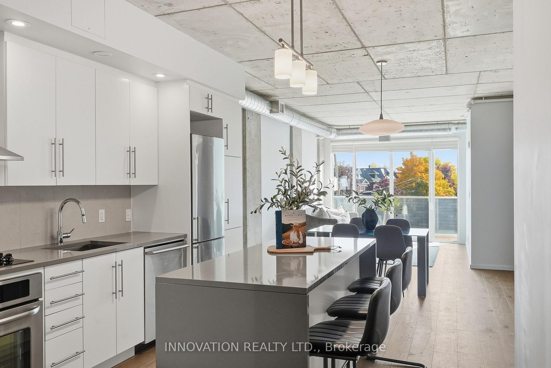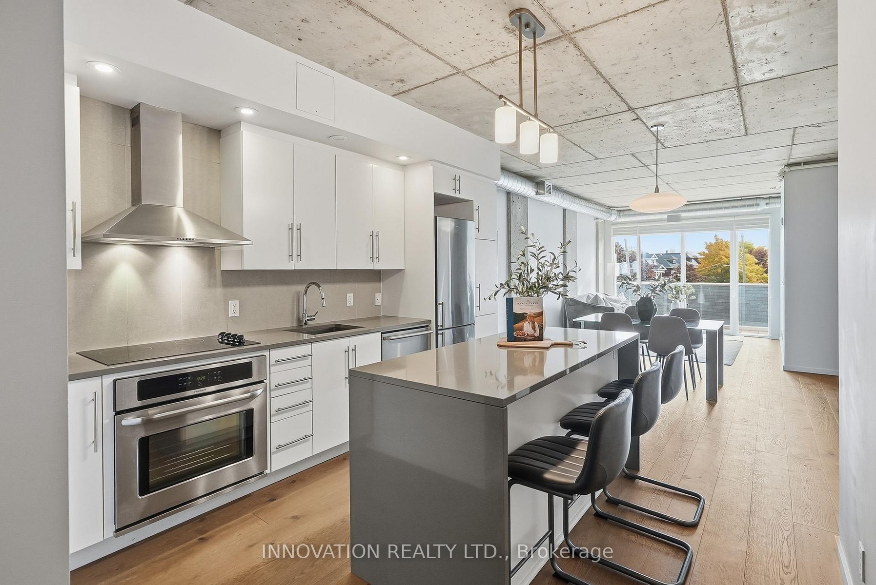 Welcome to this bright and stylish 2-bedroom + den condo offering 1,079 sq. ft. of thoughtfully designed living space in one of Ottawa's most sustainable buildings. The Eddy is LEED-Platinum certified, blending modern comfort with environmentally conscious design in the heart of Hintonburg. This south-facing unit enjoys peaceful treetop and residential views, filling the open-concept layout with natural light. Inside, the exposed concrete accents create a sleek, contemporary feel. The den is ideal for a home office or guest area, while both bedrooms are spacious and have southern facing windows. Enjoy worry-free living with condo fees that include heating, cooling, and water. Parking is also included. Step outside to discover a vibrant neighbourhood - walk to cafés, restaurants, boutiques, and transit just moments from your door.