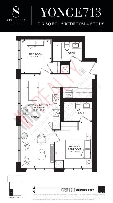 Welcome home to the Residences at Yonge Street at 8 Wellesley! Enjoy a Brand New and Bright two bed + two full bath unit that has stunning views on the 26th Floor. With floor-to-ceiling windows throughout, this stunning suite offers a split floor plan for privacy. It includes a large primary bedroom with ensuite bath and large closet and a second bedroom with a large closet and accompanying 4-piece bath. Open concept Living Room, Dining Room & Kitchen includes bright natural light and sweeping city views. Well laid out Kitchen with integrated appliances, quartz countertop and a modern backsplash. Hardwood laminate floors throughout and high 9ft smooth ceilings. Amazing sunsets! Approximately 713 Sqft. Residences at 8 Wellesley offer excellent amenities including a Fitness Centre, Outdoor Lounge, Media & Party Room, Guest-Suites and 24-Hour Concierge. Steps to Wellesley Subway, Shopping, Restaurants & more. Includes one (EV) parking spot and one locker!