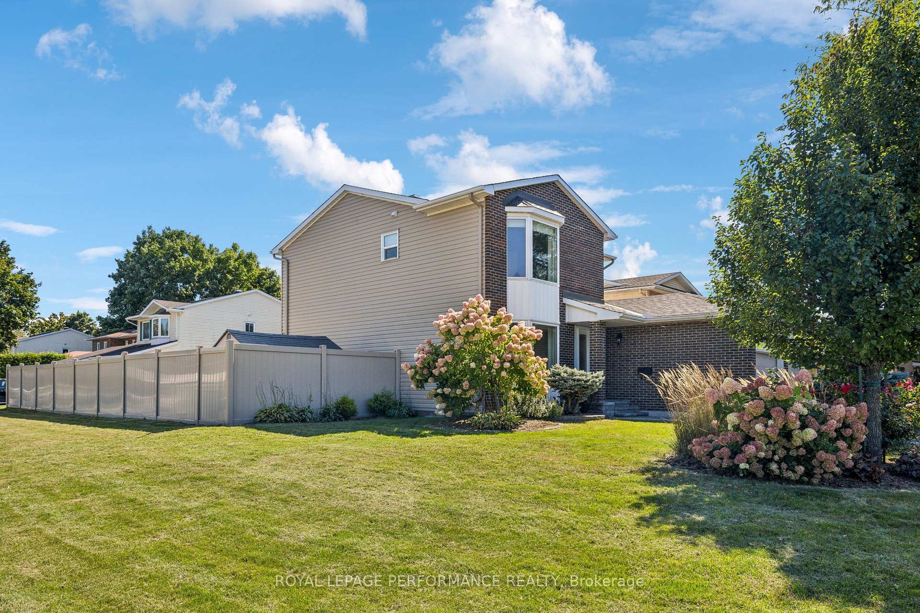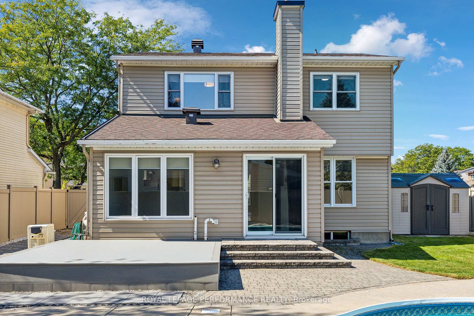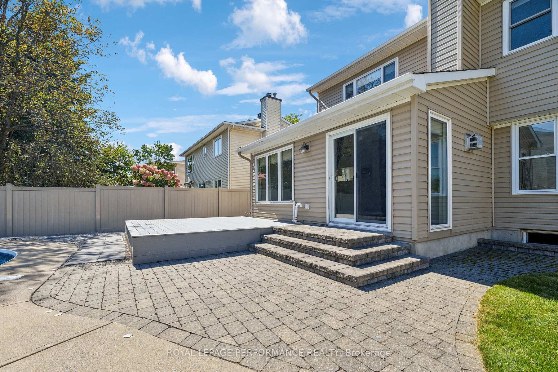 This beautifully maintained corner-lot home in Chapel Hill offers incredible curb appeal, modern upgrades, & a private backyard oasis with an in-ground pool. The bright foyer leads to a spacious living & dining area with resurfaced hardwood floors & oversized windows. The fully renovated kitchen features granite countertops, stainless steel appliances, & a tumbled marble backsplash. A sunken family room boasts vaulted ceilings, a gas fireplace, & stunning backyard views. The primary suite offers ample closet space & an updated ensuite, while two additional bedrooms include new hardwood floors & a stylish 4-piece bath. The finished basement features a large rec room with an electric fireplace, a fourth bedroom, & a powder room. Outside, enjoy a composite deck, a professionally landscaped backyard with white river stone surrounding the pool, & a new stone pathway. Recent upgrades since 2022 include attic insulation, a full kitchen renovation, new hardwood in two bedrooms, a modern staircase, & an insulated garage. The backyard was redesigned with white river stone to reduce grass near the pool. Additional renovations since 2009 include interlock landscaping, a repaved driveway, PVC fencing, & pool updates such as a new pump (2024), liner (2011), filter, & safety cover. The roof was replaced in 2018, along with new siding, front & side doors. Main, ensuite, & powder room bathrooms were updated, & bay, family room, & basement windows were replaced. The furnace, air conditioner, gas fireplace, & electric fireplace were also upgraded. Popcorn ceilings were removed on the main floor, & the basement was recently renovated. Located in the desirable Chapel Hill community, this home is near top-rated schools like Forest Valley Elementary & Chapel Hill Catholic School. Enjoy nearby parks, trails, & Racette Park, with easy access to transit, shopping, & Highway 174. Dont miss this dream home book your showing today!