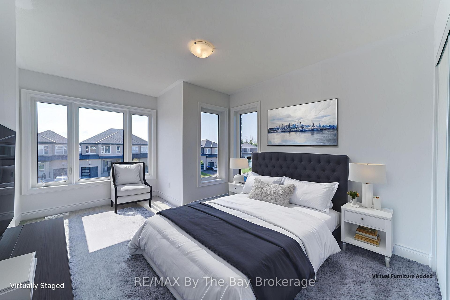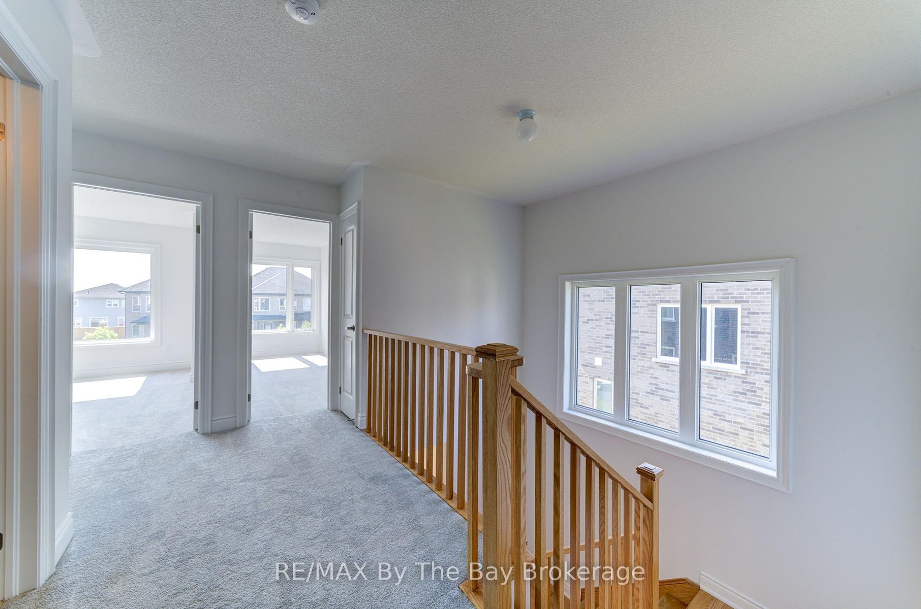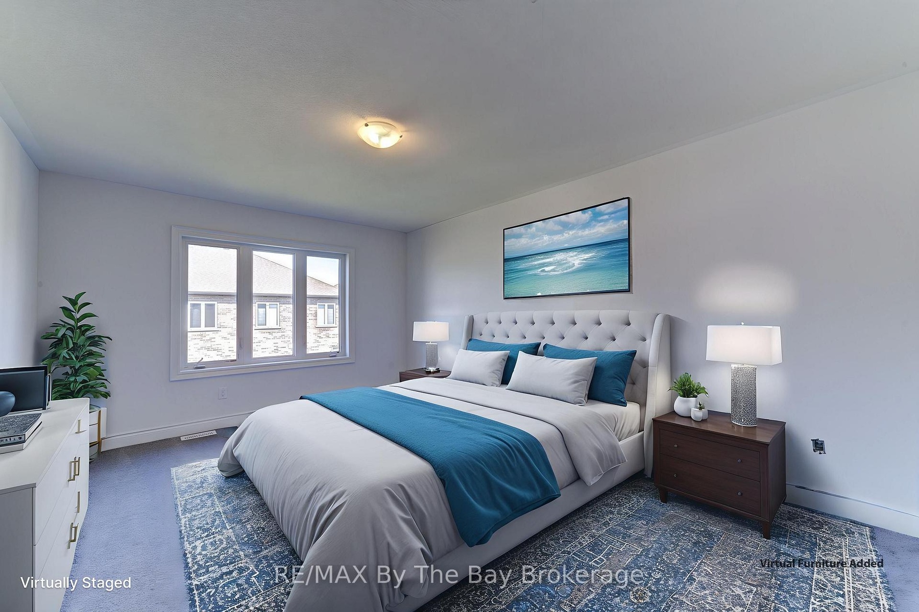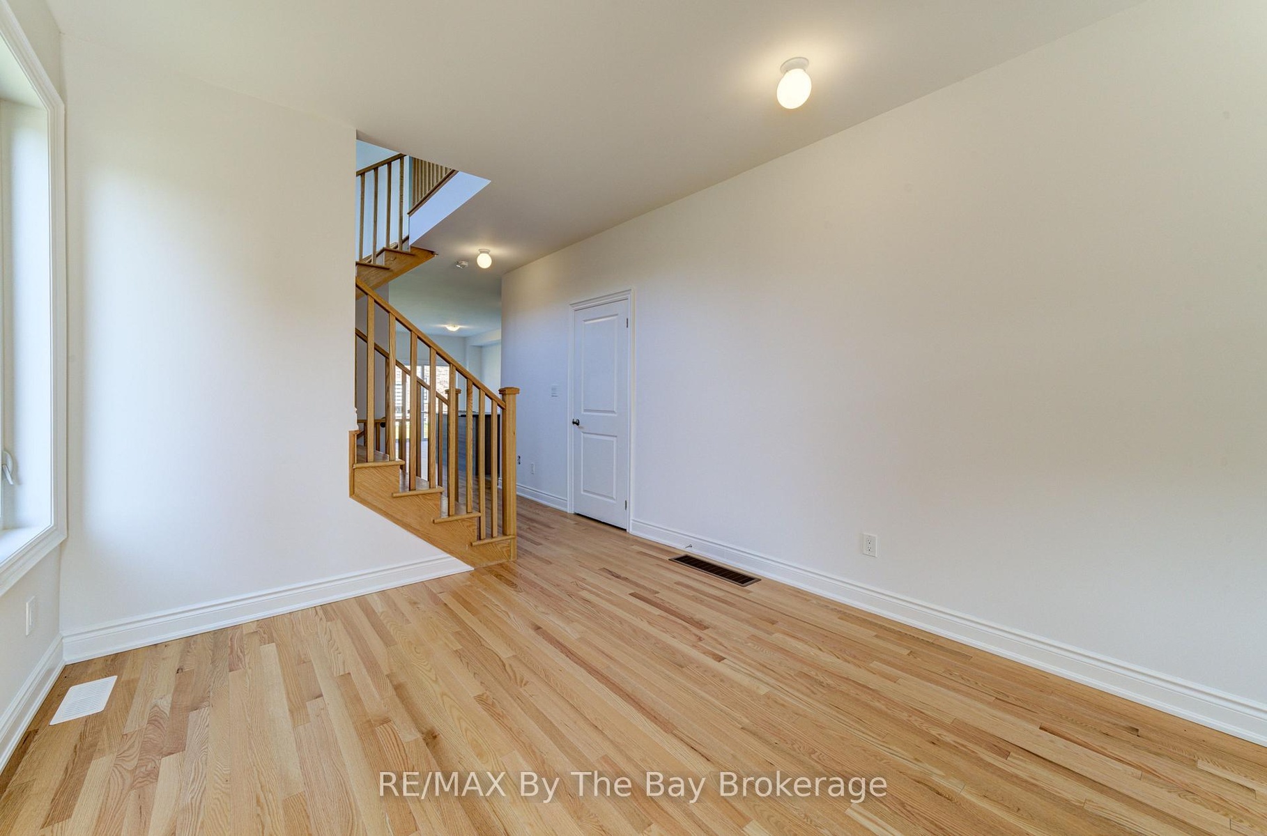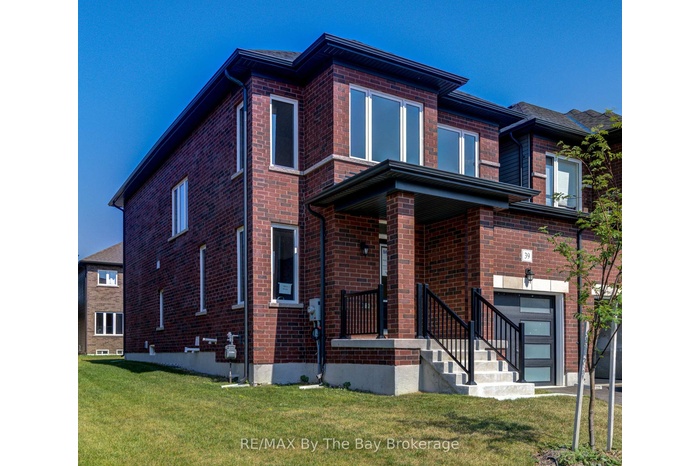 Move-in ready end unit Freehold Townhome by Baycliffe Communities in the Villas of Upper Wasaga. This Coral model offers 1,876 sq ft of thoughtfully designed space with a modern layout ideal for families or investors. The main floor features a formal front room (perfect for dining or a home office), an open concept great room with hardwood flooring, and a kitchen with extended cabinetry, island with double sink, sleek black countertops, and a breakfast area. Sliding doors open to a freshly sodded backyard, creating an effortless indoor-outdoor living experience. 9 ceilings throughout the main level add to the sense of space and light. A warm oak staircase leads to the second floor, where you'll find a spacious primary retreat with a large walk-in closet and a 5-piece ensuite featuring a freestanding tub, and double vanity. Two additional bedrooms share a full bath, and a second-floor laundry room adds everyday ease. The unfinished basement includes a bathroom rough-in, HRV system, and on-demand hot water offering excellent future potential. Located just minutes from schools, shopping, trails, and the World's longest freshwater beach, and only 15minutes to Collingwood and 20 minutes to Blue Mountain Resort, Ontario's largest ski destination this is an excellent opportunity for full-time living, a weekend getaway, or a smart investment. Tarion Warranty included!