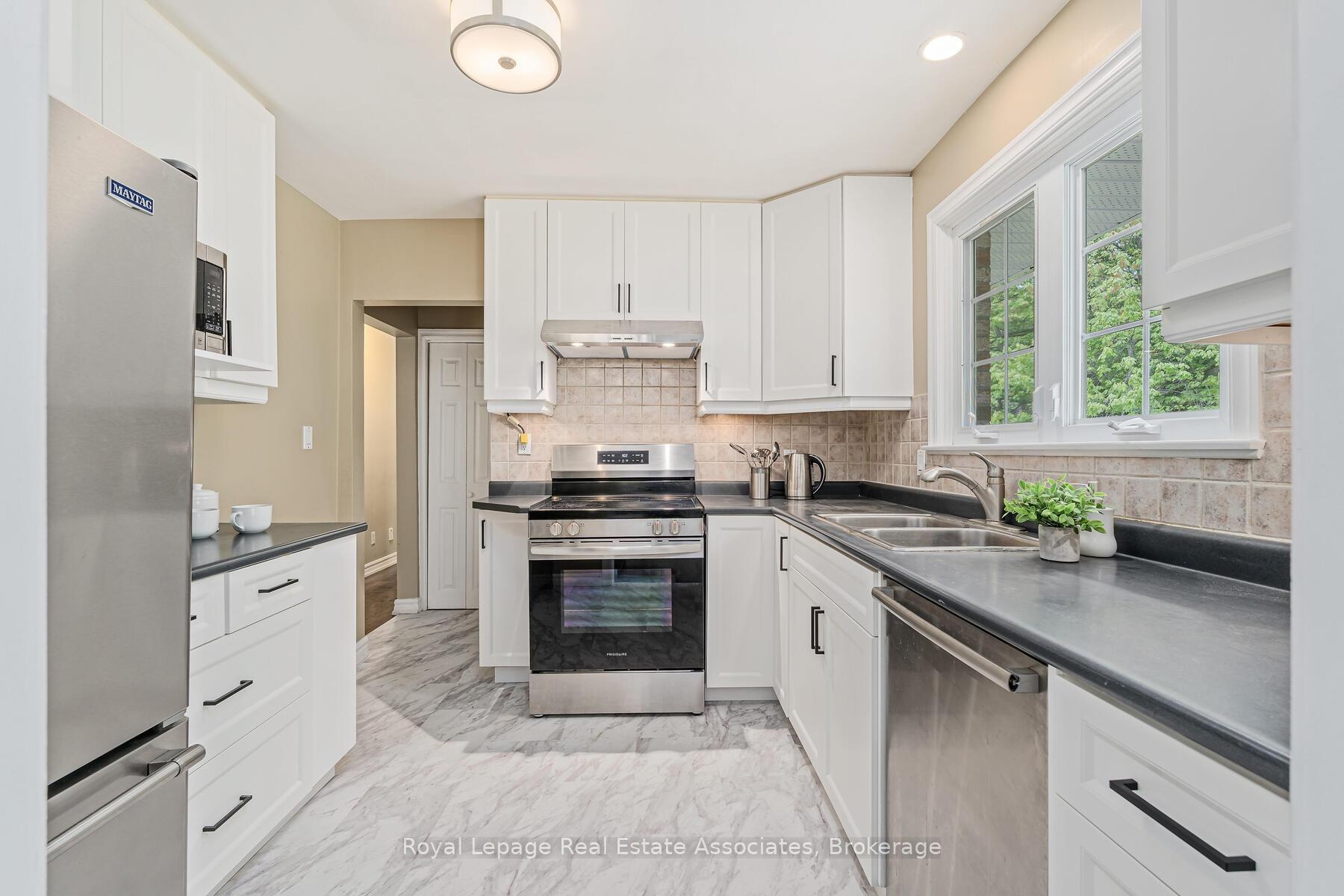 Welcome to 112 Park Street East, a place that just feels like home. Tucked away on a quiet cul-de-sac & sitting on just over half an acre, this detached bungalow offers space, comfort, & the kind of charm you've been looking for. The current owners have had their journey here, & now it's your turn to start yours in this beautiful home. Step inside to a carpet-free main floor with an open-concept layout that features a bright living room with a large front window, crown moulding, & a cozy fireplace. The space flows into the dining area with a walkout to the private deck,where you can take in expansive views of the secluded backyard that is fully fenced with mature trees. It's a peaceful setting for morning coffee,evening unwinding, or weekend BBQs. Just off the dining area is the freshly updated kitchen, complete with a double sink, custom backsplash,new cabinet doors, s/s appliances, and new flooring, offering plenty of room to cook and connect. On the main floor, you'll find three bedrooms,each with its own closet & filled with natural light. The newly finished lower level offers even more space to grow, gather, or simply enjoy luxury vinyl flooring, pot lights, & a second fireplace, creating an inviting atmosphere, while the layout includes space for a rec room, home gym, office,& a guest suite, whatever suits your lifestyle. A modern 3-piece bathroom, a finished laundry room, & a separate walk-up entrance to the backyard add both convenience & flexibility, making it a great option for extended family or in-law living with privacy & independence. A double-car garage & six driveway spots mean there's always room for family &friends, & the location puts you minutes from everything in the highly sought after community of Glen Williams has to offer, including local shops, scenic trails, the Georgetown Golf Club, parks, the Georgetown GO Station, & schools. This is more than just a house. It's a place to put down roots, make memories, & truly feel at home.
